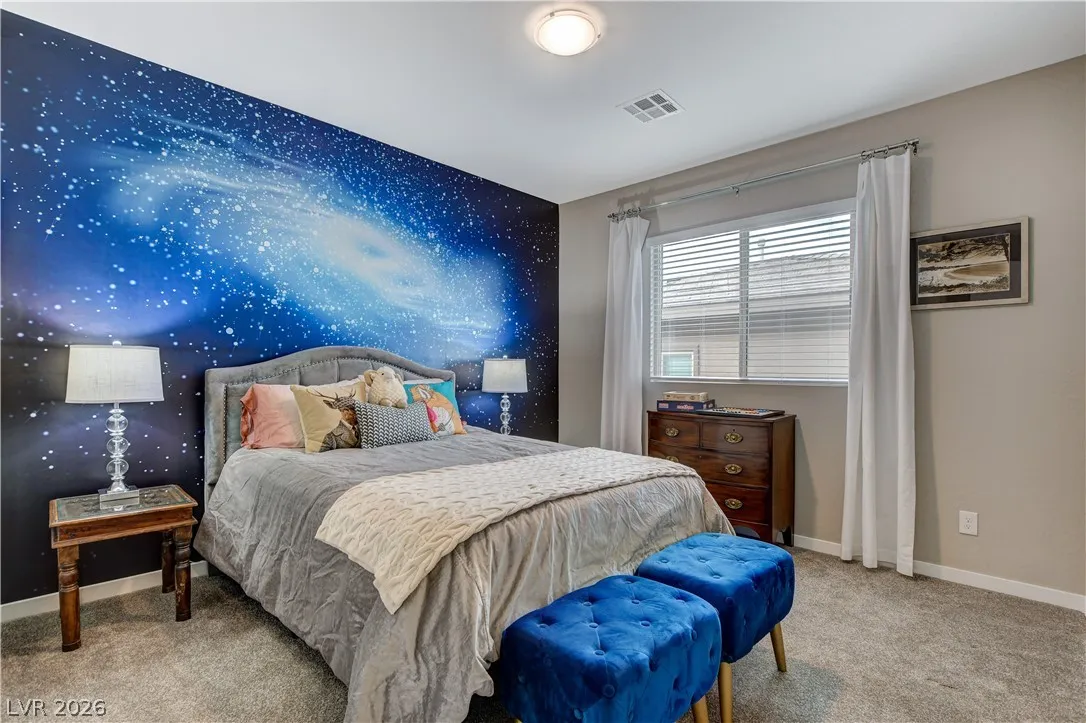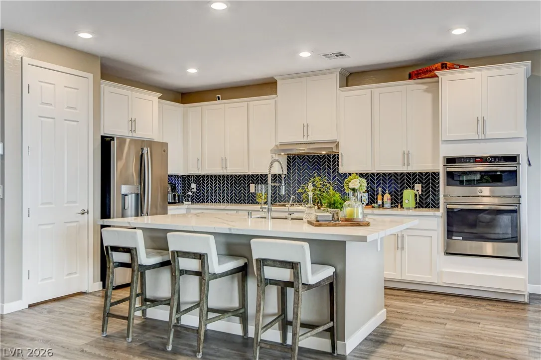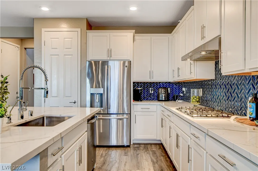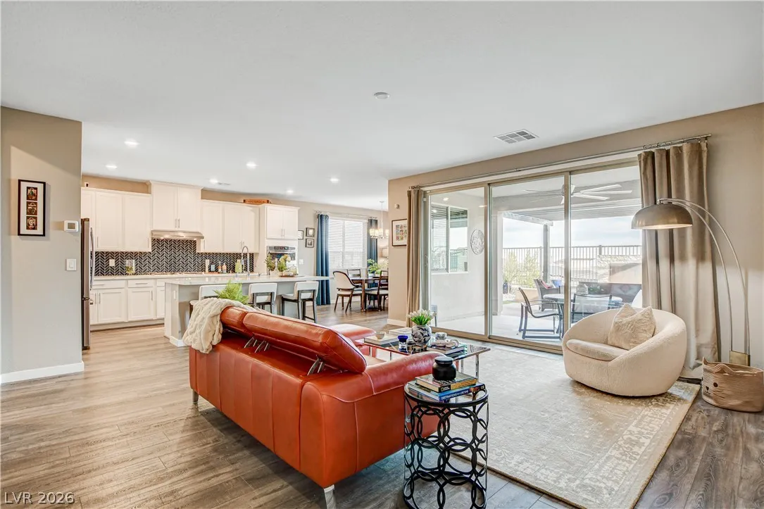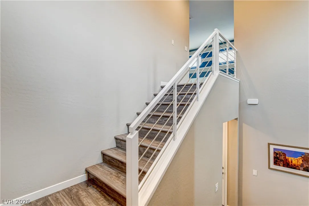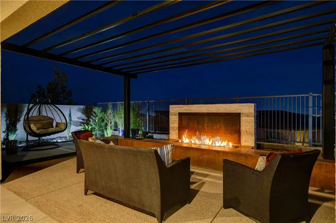 Summerlin West / Stonebridge • Strip, city & mountain views • 0.3 mi to Stonebridge Park & trails. 4-bed, 3-bath home with nearly 2700 sq ft, downstairs primary suite with its own laundry, 3-car garage and open great room design. Quartz kitchen includes large island, built-in ovens, gas cooktop, stainless appliances, walk-in pantry and roll-out shelving and offset dining room. Downstairs primary suite offers custom closet, separate tub, separate shower and laundry access. Upstairs includes secondary bedrooms, loft/family room and full laundry. Outdoor living features covered patio, sunken spa, pergola, built-in grill, fire feature, synthetic grass and desert landscaping. Finished garage includes epoxy floor and storage. 3D tour and floor plans available. Near Stonebridge Park, Summerlin trails, Downtown Summerlin, Red Rock Canyon, Red Rock Casino Resort & Spa and 215/W Charleston access.