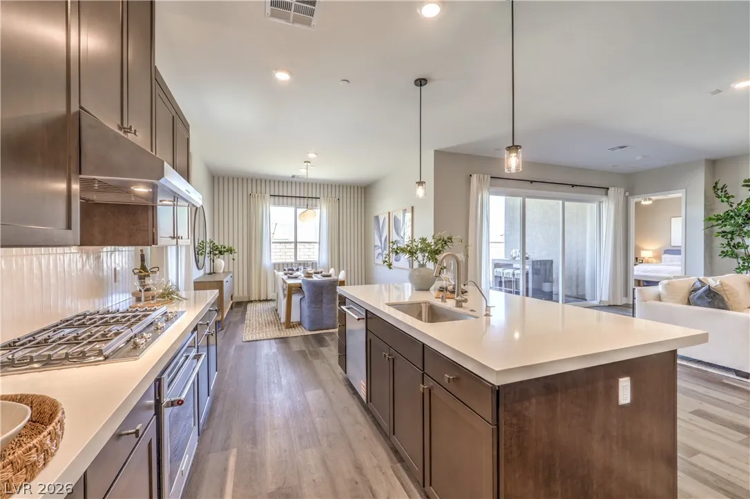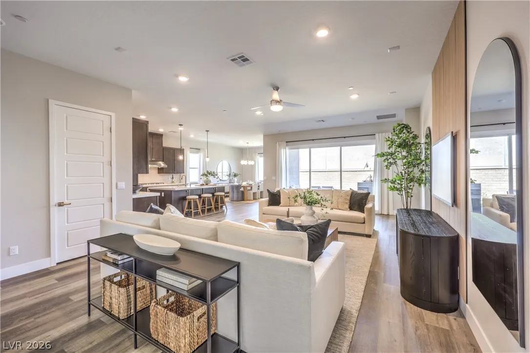 BRAND NEW 3 CAR GARAGE SINGLE STORY, backed by Fortune 500 company. Chefs Kitchen with KitchenAid Stainless Steel Appliances: 42″ Refrigerator, 36″ 5 Burner Cooktop w/Hood Over 30″ Single Built-in Oven, Built-in Microwave Vent to Outside Air Over 30″ Built in Oven & Dishwasher, LVP flooring, Granite/Quartz Kitchen/Bath countertops, Smart Home Features, Tankless Water Heater, Included Patio cover! Gated community located in The Villages at Tule Springs Masterplan. The Heartland Manor IV Sales Office is located at 1004 Ryan River Pl, North Las Vegas, NV 89084. Office hours are 10am-5pm daily. Can vary due to events and holidays. Photos are of the 2538 PLAN MODEL HOME – ARTISTIC RENDERING * material/features/colors can vary and are subject to change.* Exterior features and colors will vary. Elevation is representational only; subject to change.