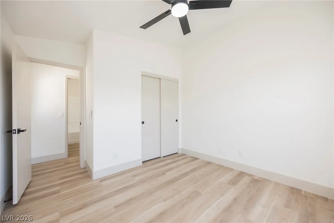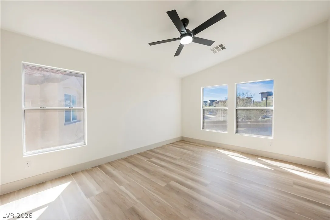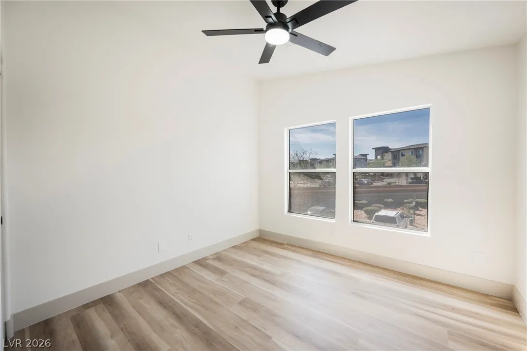 flooring complements a soothing modern paint palette. In the corner owner’s suite, a modern tile & plate