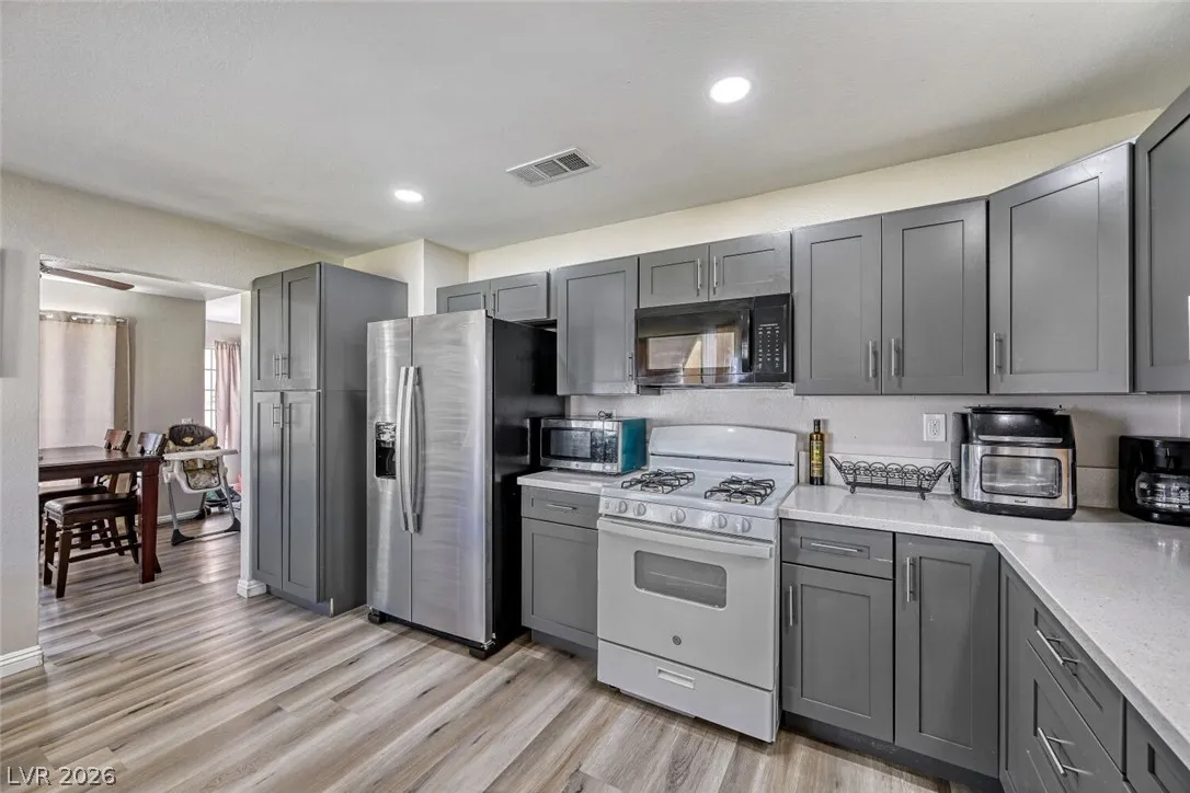 No Hoa and No neighbors behind you! Fully Renovated Single Story Home with 3 bedrooms 2 bath and 2 Car Garage! New paint, new waterproof Laminate flooring, white countertops, newer appliances that stay. HVAC unit like new(only 2 years old) Newer roof on covered patio, newer ceiling fans and lights inside home. Backyard with covered patio and turf for your private enjoyment.