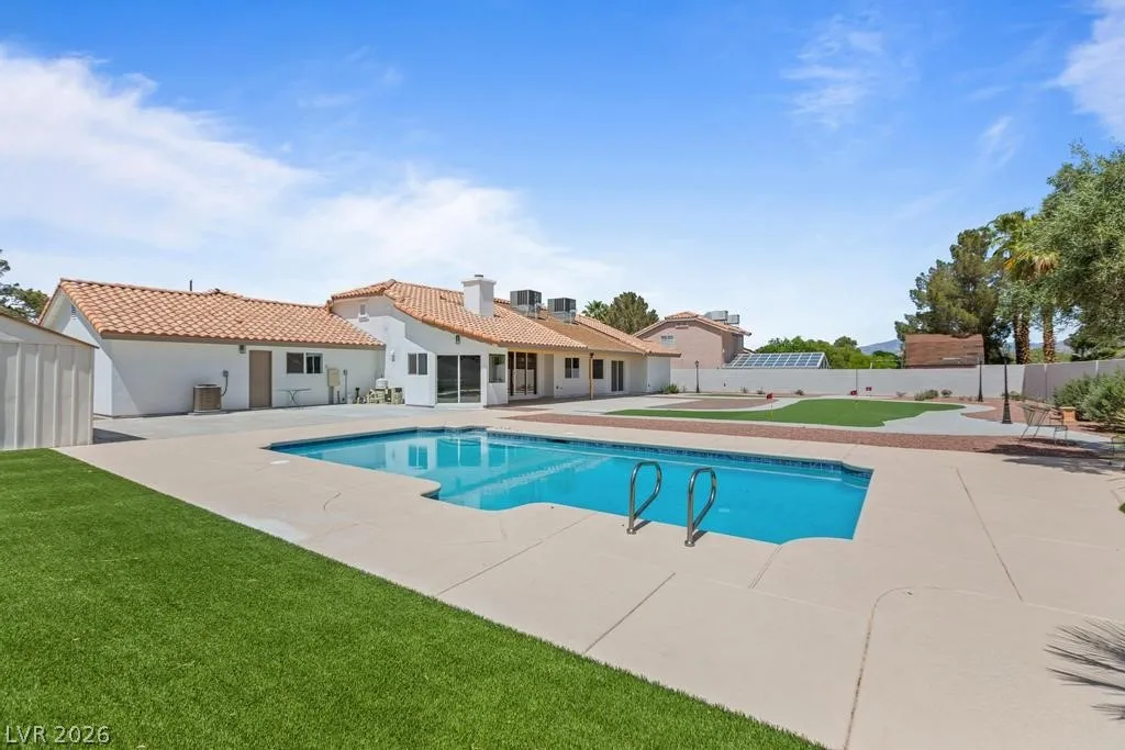 Step into your gorgeous 3 bedroom, 3 bath Hacienda with 3 car garage on a huge oversized lot in the North West. From the lovely modern fireplace to stunning flooring, you will be delighted by the attention to detail in this home. This spacious abode delivers ample sitting & relaxing rooms to do as you please, custom designed showers, beautiful lighting & more! Family room boast vaulted ceilings & fireplace. Gourmet kitchen comes complete with oversized Island, designer stove hood, SS appliances. Generous Primary bedroom has large walk in closet, attached primary bathroom with double sinks, huge custom shower. 2 more ample size bed & bathrooms round up the this beauty. Embrace your own private retreat after a long day in the expansive backyard oasis. Revel, soak up the sun in the sparkling pool or sit back & relax under the covered patio. Solar panels for a low electric bill. NO HOA! Don’t miss the chance to make this remarkable property your dream home.