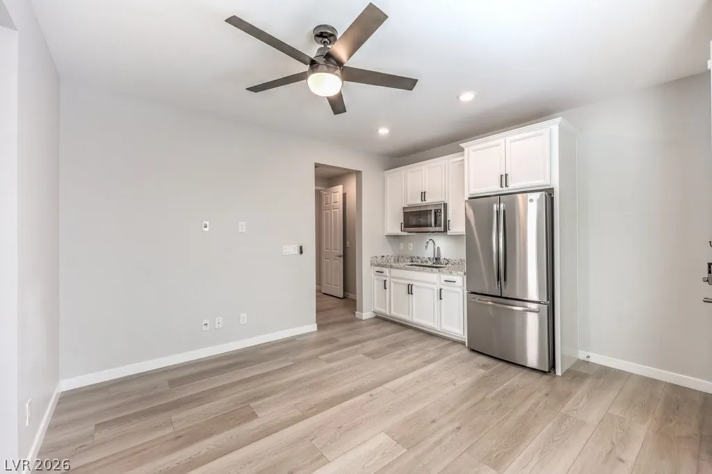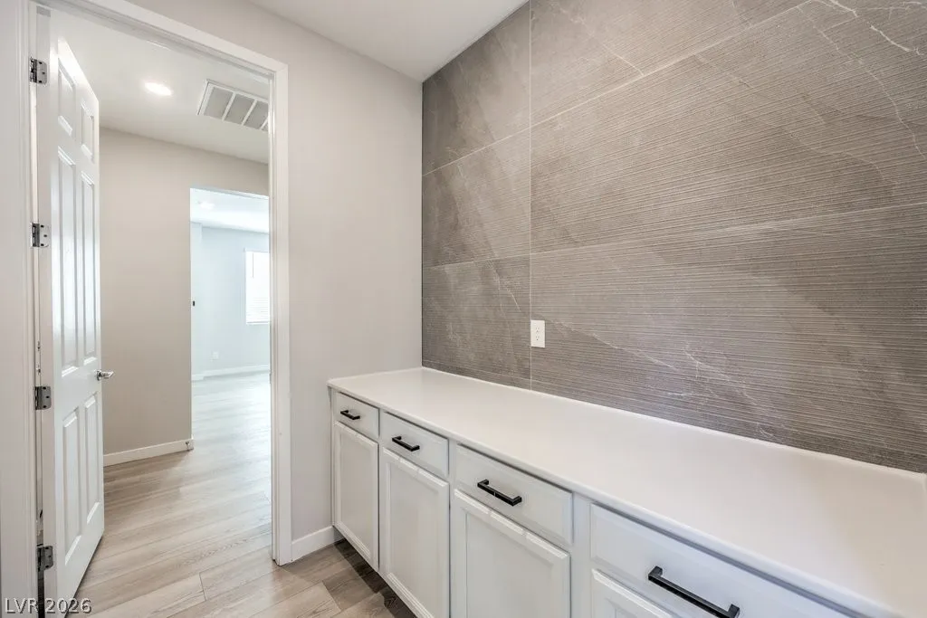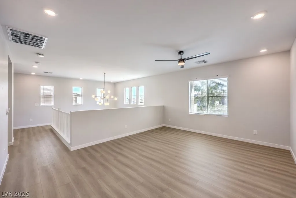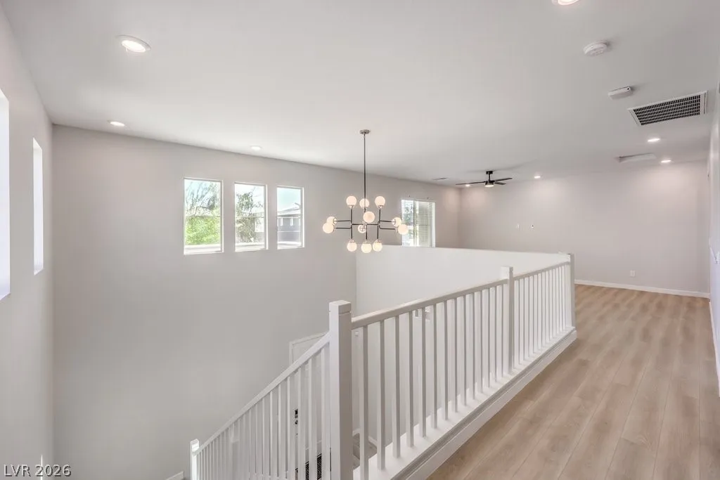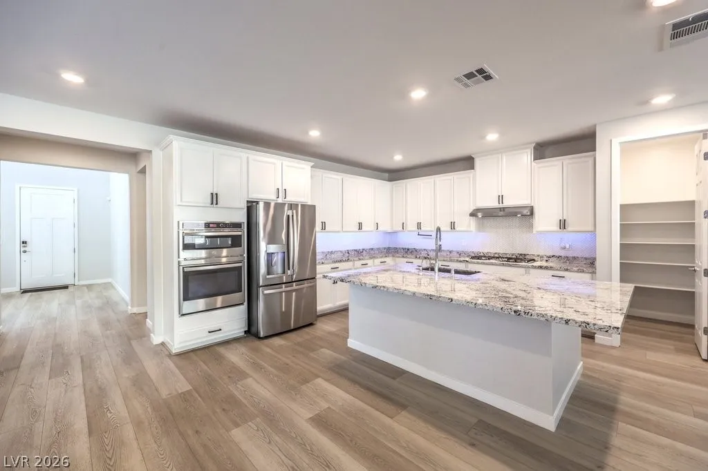 Stunning Summerlin 4 bedroom with a 3-car garage and an attached NextGen unit with its own private entry, living space, full bath, washer and dryer, and kitchenette! The home features beautiful stone accent wall in the foyer, wood-look flooring, soaring vaulted ceilings, and living room perfect for hosting. The kitchen is equipped with upgraded cabinetry, stainless steel appliances, wall ovens, granite counters, a walk-in pantry, and an oversized center island. Upstairs features a large loft perfect for relaxing or as a media room. The sizable main bedroom has a private balcony, large ensuite with dual sinks, shower, and soaking tub. All bedrooms upstairs each have walk-in closets. The backyard with NO REAR NEIGHBORS features a covered patio and ample space for gatherings. Other modern perks include an EV charger and smart devices such as light switches, thermostat, fans, locks, ring doorbell, motorized blinds, and garage doors. Solar panels installed! An amazing opportunity!