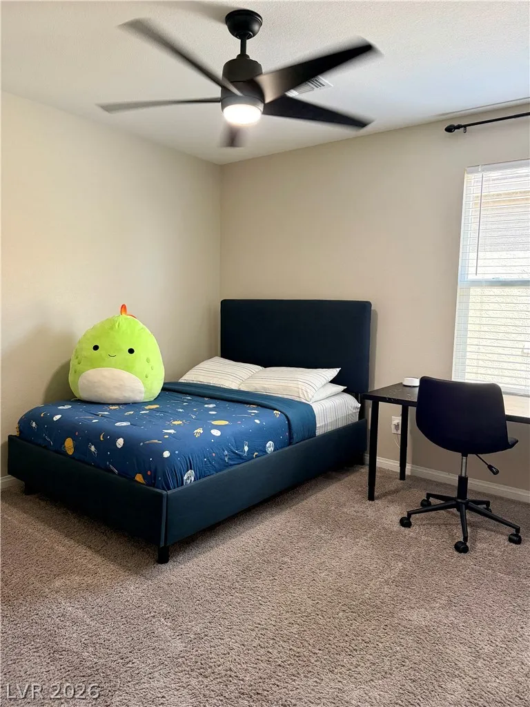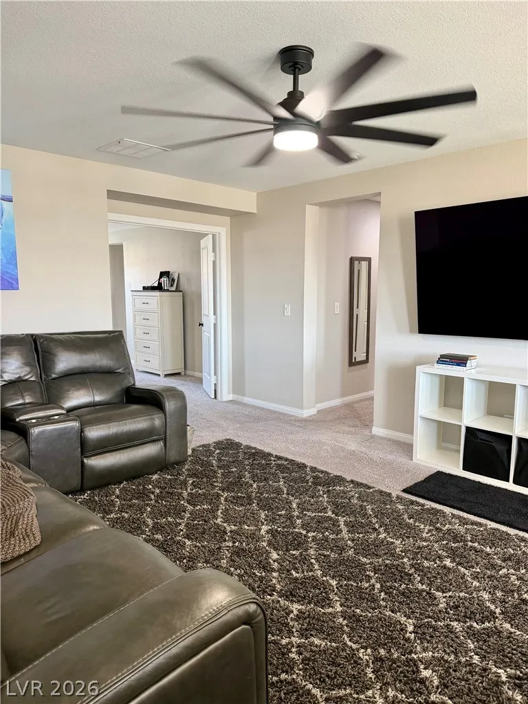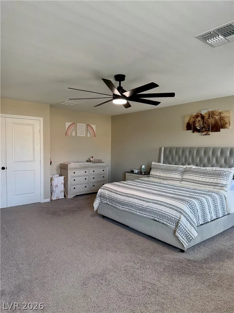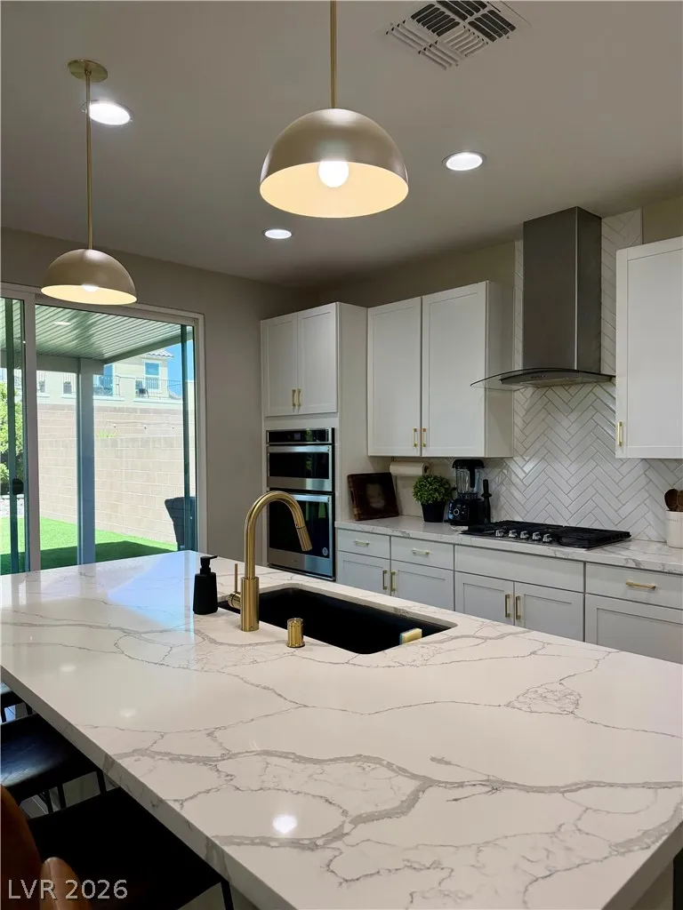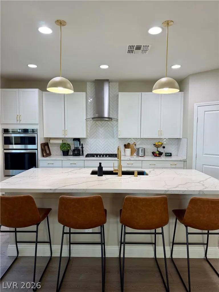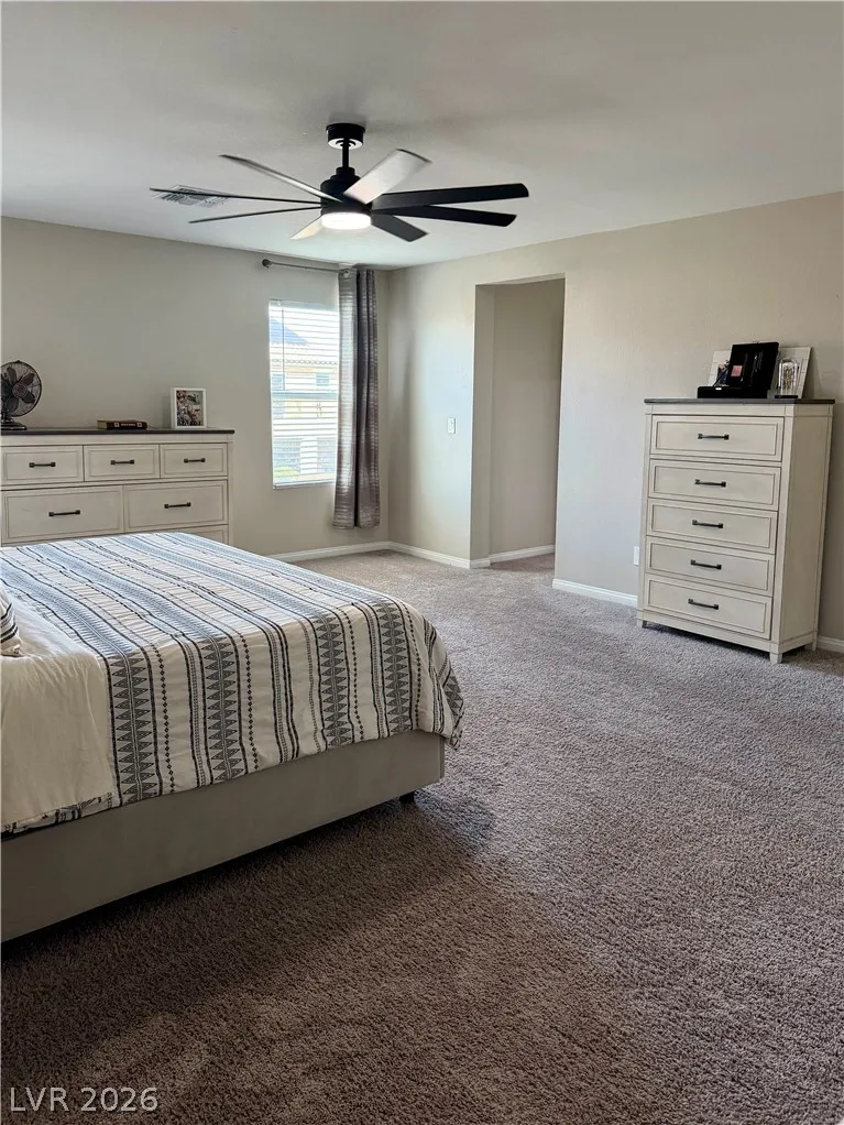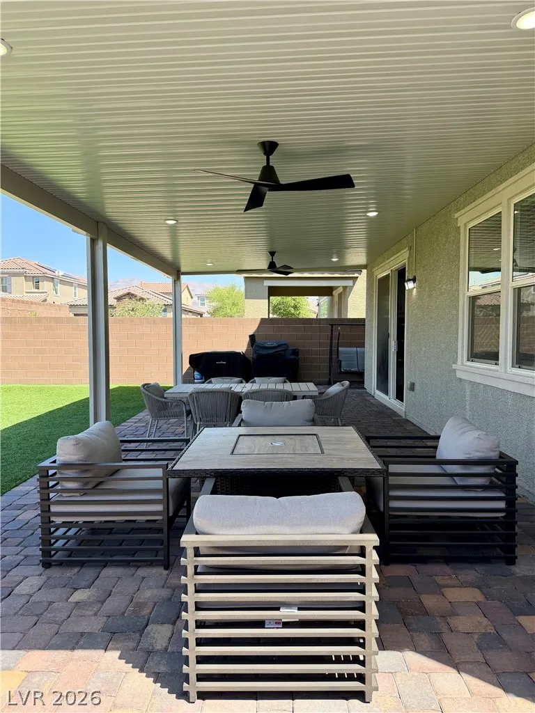 Beautifully maintained 5-bedroom, 3-bath home offering over 3,000 sq ft of modern living in a gated community. Built in 2021, this home features a bright open-concept layout with soaring ceilings, abundant natural light, and wood-look flooring. The upgraded kitchen includes quartz countertops, white cabinetry, stainless steel appliances, and a large island with bar seating. Spacious bedrooms offer flexibility for guests, office, or multi-gen living. The primary suite features dual sinks and a clean, modern design. Enjoy a private backyard with low-maintenance turf—perfect for relaxing or entertaining. Additional highlights include a 2-car garage with EV charger and great curb appeal. Move-in ready and exceptionally well cared for.