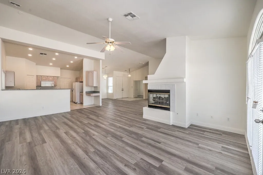 Contemporary home sitting on a premium cul-de-sac home site in the desirable gated community of Tuscan Trails. Over a third of an acre lot offers flexibility suiting many needs including covered patio, stamped concrete, relaxing spa, and no rear neighbor for an added sense of privacy. Open concept living at its finest, you will love the vaulted ceilings and perfectly placed windows allowing natural light to pour in. Primary suite promotes a restful feeling enhanced by the remodeled bathroom with modern flair of quartz surfaces, freestanding tub, and a seamless glass shower. Kitchen features granite counters, prep island, breakfast bar, walk-in pantry, and a convenient desk. Comfortable family room highlighted by a French patio door, three-way fireplace, ceiling fan, and plenty of space. Beautiful home upgraded with new paint, new luxury plank flooring, stone pattern tile, new blinds, LED recessed lighting, and sleek baseboards.