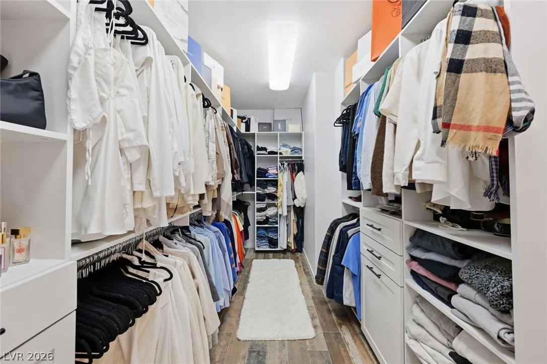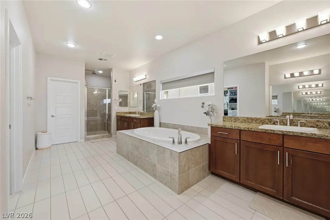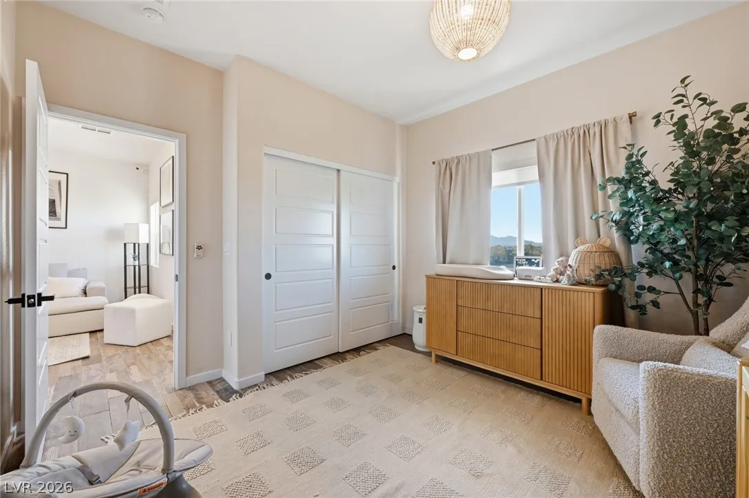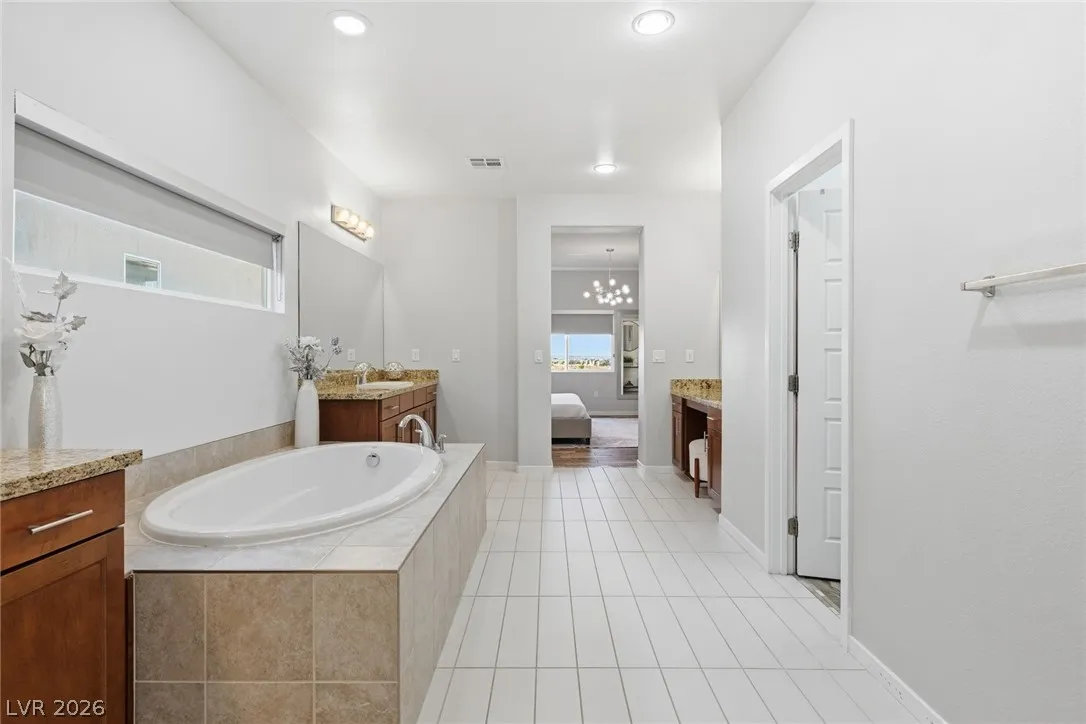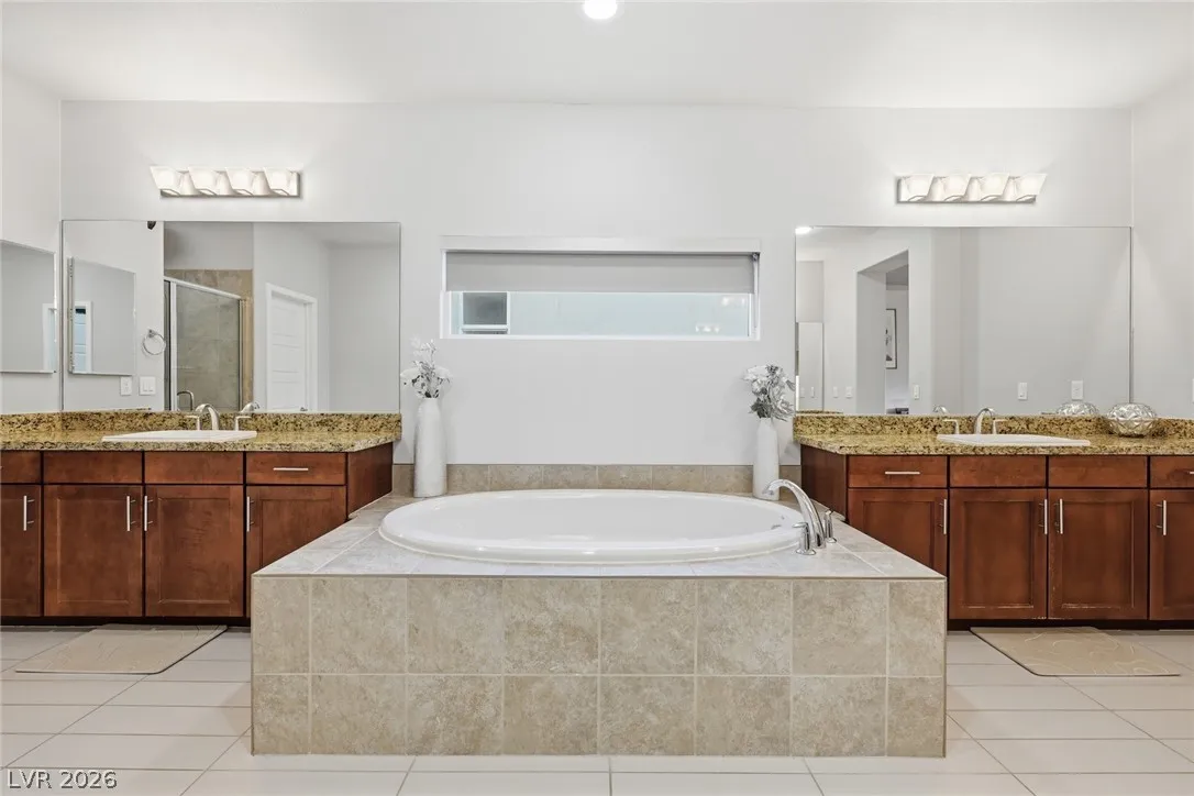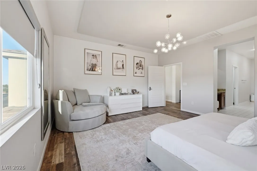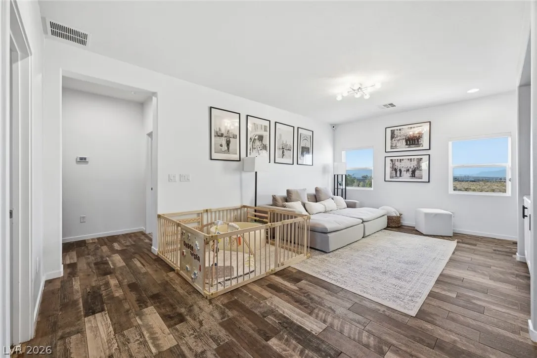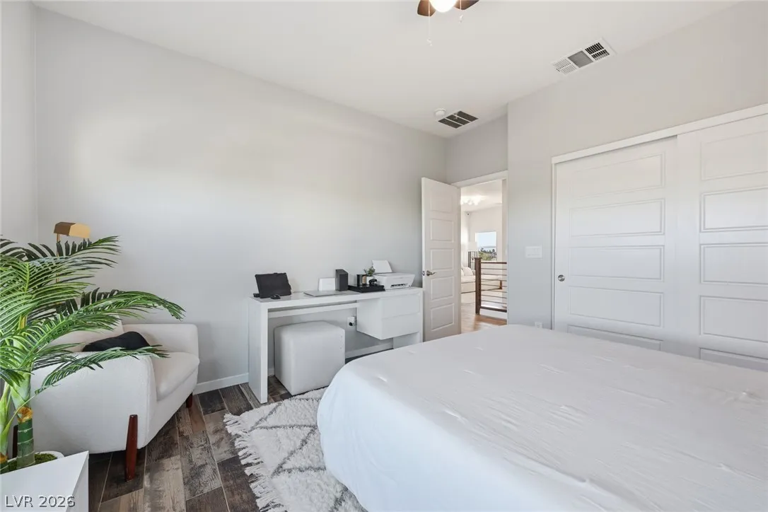 Thoughtfully upgraded modern home in a gated Southwest Las Vegas community offering 4 bedrooms, 3 baths, loft & split 3-car garage. Open-concept floor plan features 10-ft ceilings, wide plank flooring, designer lighting & stunning great room w/ custom floor-to-ceiling stone fireplace wall, linear electric fireplace and built-in surround sound. Gourmet kitchen includes waterfall-edge quartz island, shaker cabinetry, black hardware, double ovens, farmhouse sink and large walk-in pantry. Flexible layout includes full bedroom and bath downstairs for possible generational living plus spacious loft with custom built-ins. Primary suite offers soaking tub, oversized walk-in shower and custom closet system. Backyard retreat features covered patio with rolling shutter, spa, fountain, synthetic turf, dog run and paver hardscape. Epoxy garage floors, premium whole-home water filtration, tankless water heater and ideal proximity to 215, Durango Resort, shopping, dining and more. Contact us to view.