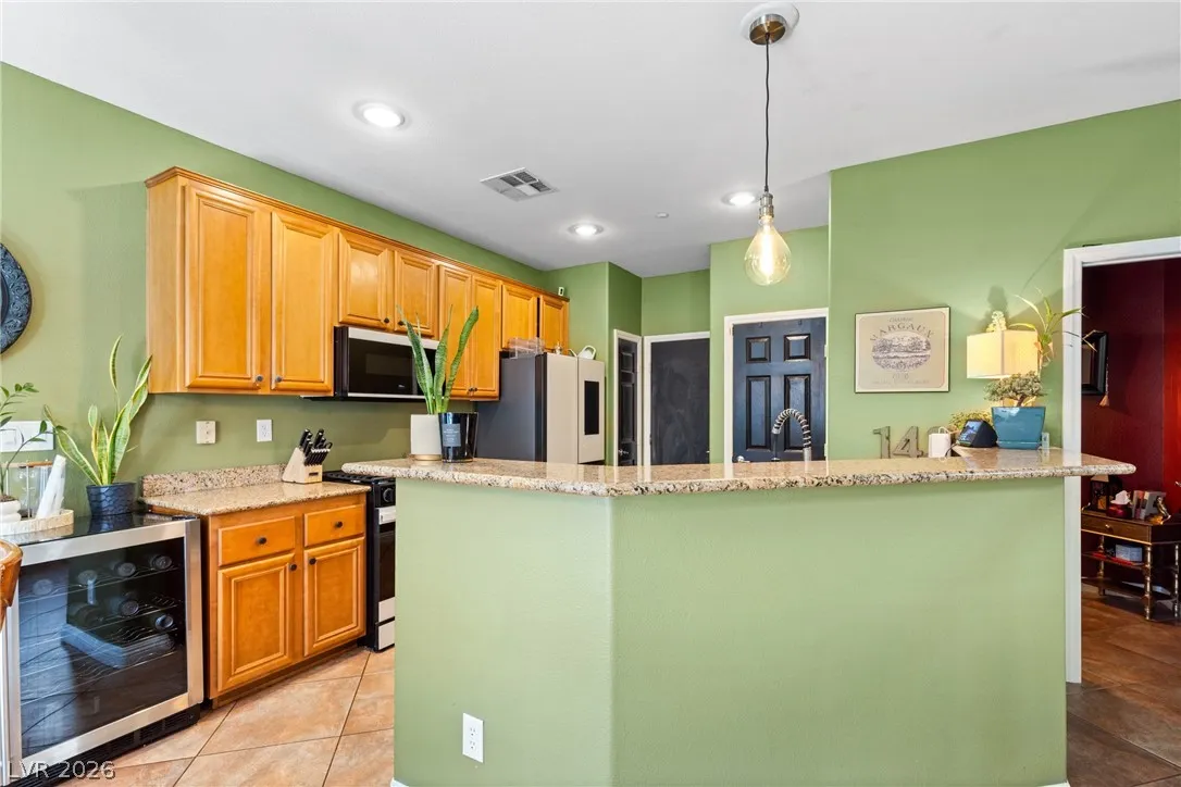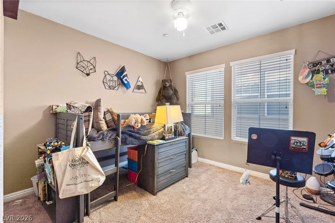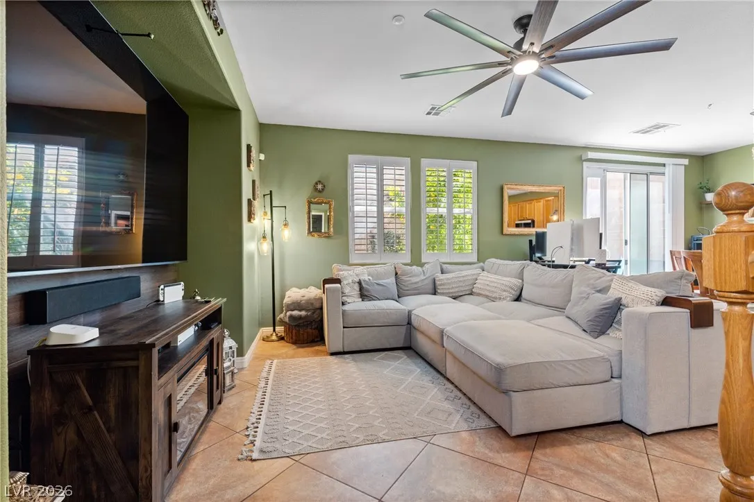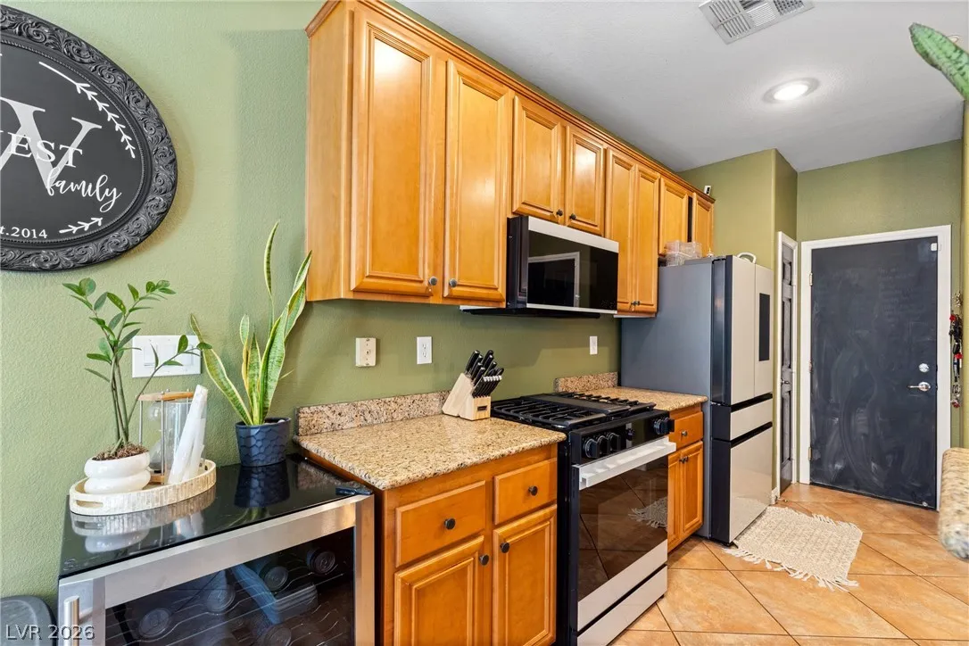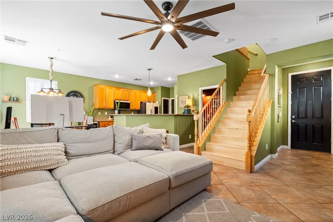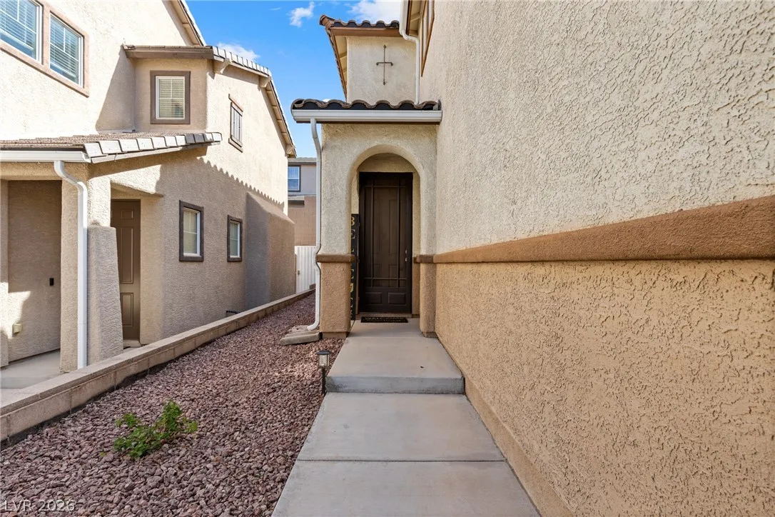 This is a great home in a gated neighborhood in Henderson! The home is laid out well with all of the living area downstairs and 3 bedrooms, 2 baths and laundry upstairs. The kitchen has all new, state of the art, appliances that stay with the home. There is an ample back yard accessible through he sliding glass doors from the kitchen. The community also has a pool and two park areas.