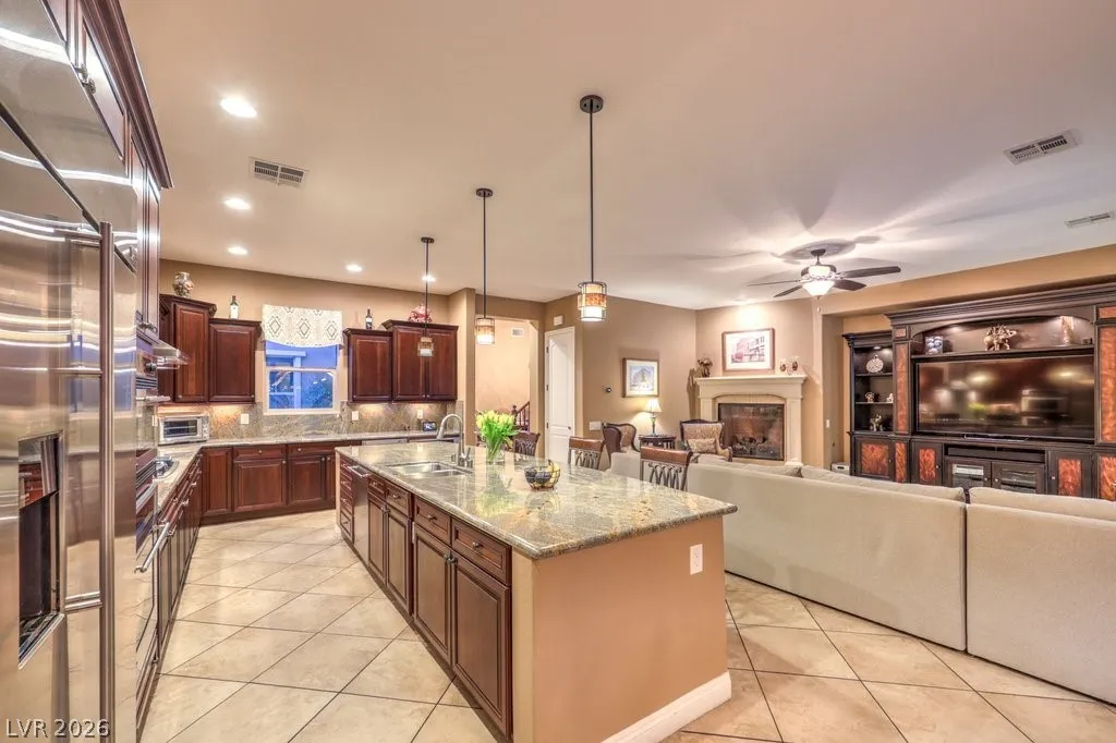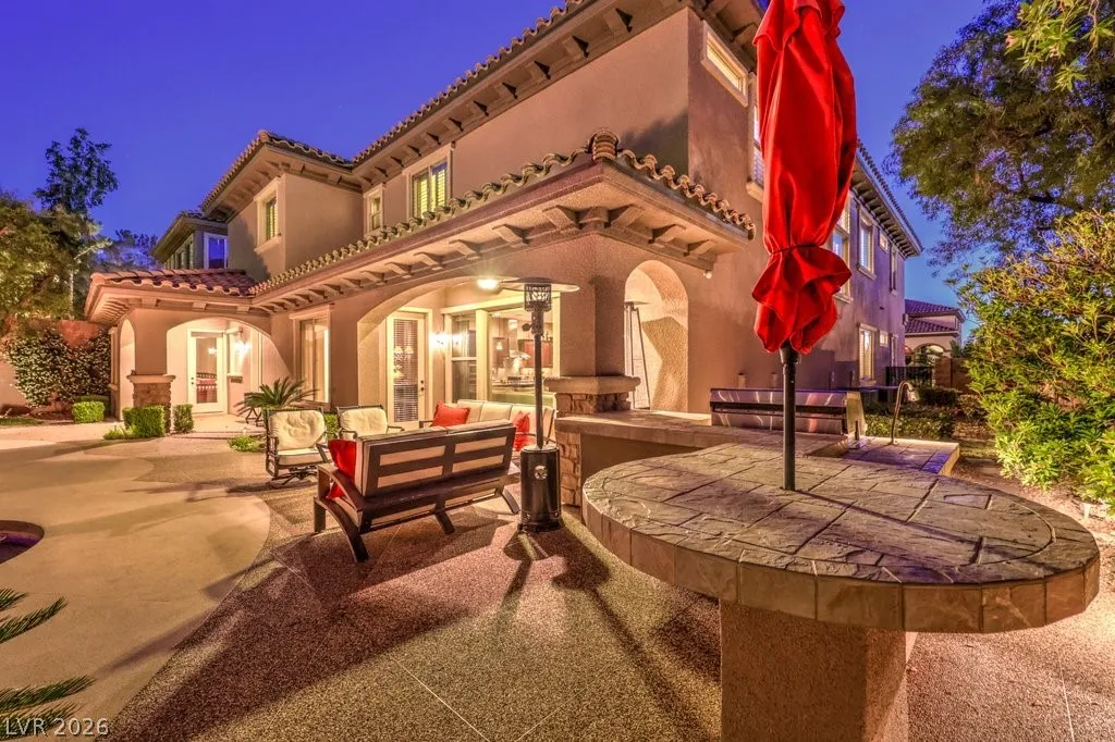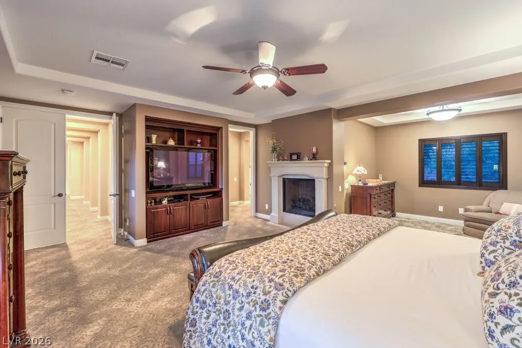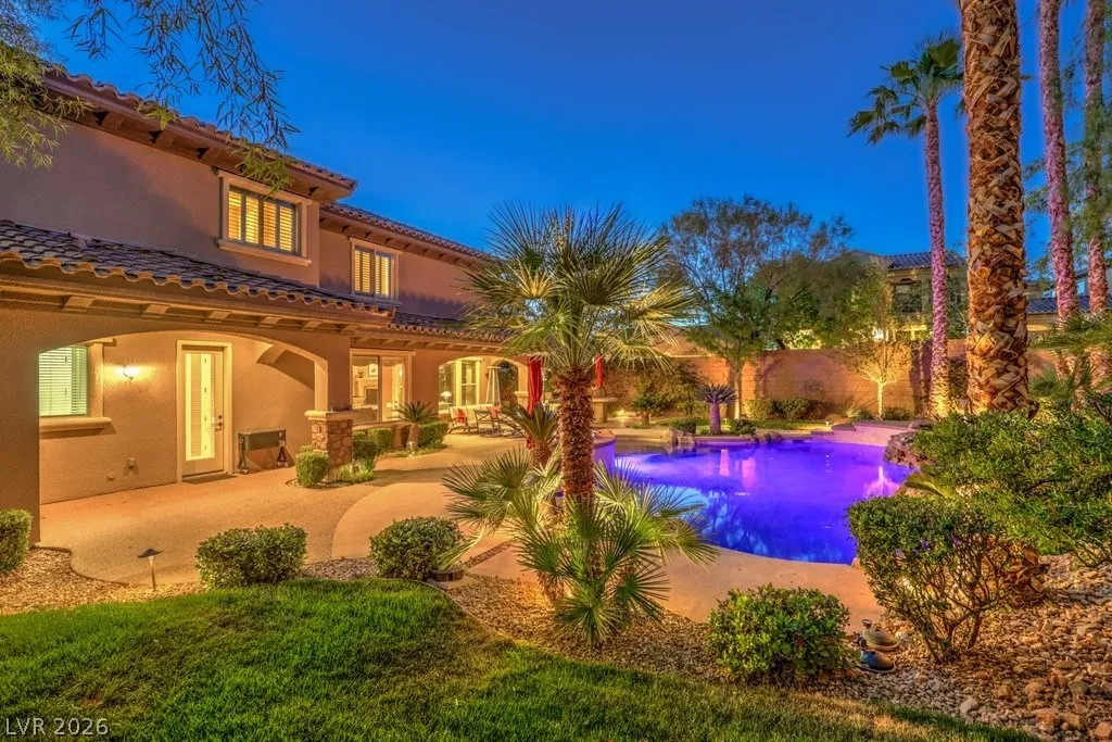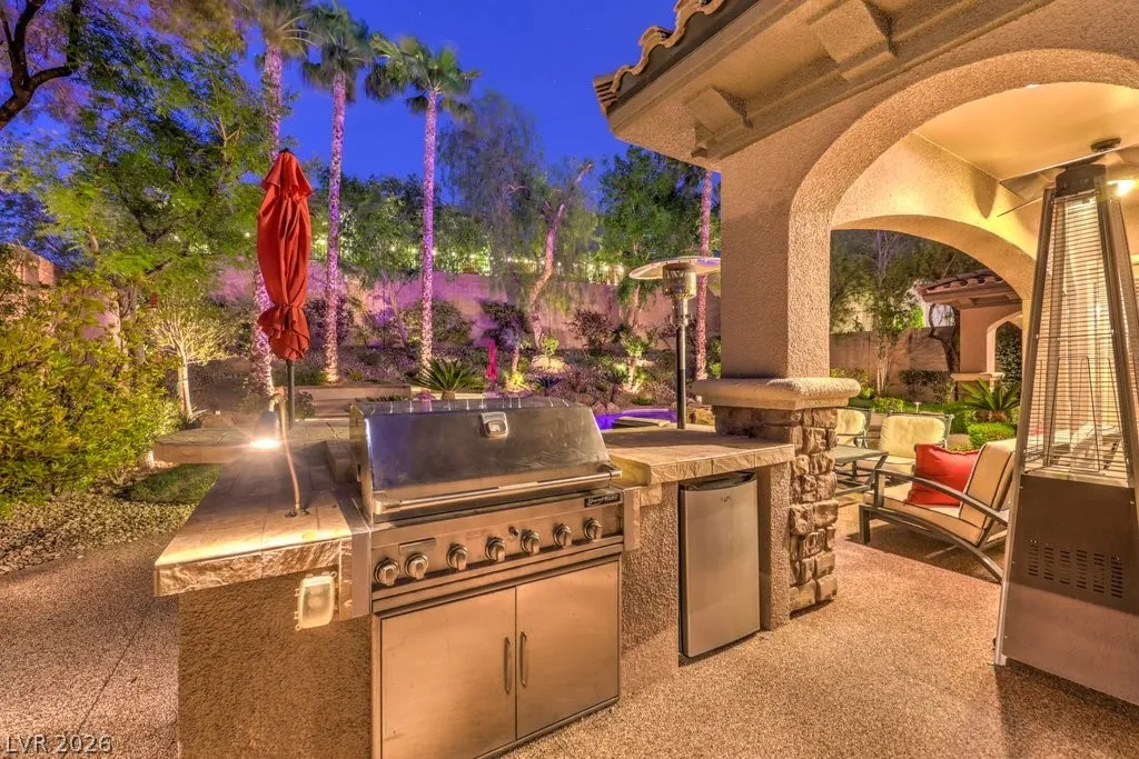 Luxury estate on nearly 1/3-acre corner lot. Gourmet kitchen features stainless steel appliances, including 2-convection ovens, 5-burner cooktop, built-in refrigerator, granite counters and backsplash, and large island with breakfast bar. Spacious great room has large, picturesque windows to the backyard, fireplace and media niche. Formal living and separate formal dining room. Office has double glass doors with built-in cabinets. A loft/game room has its own balcony. Grand master retreat with a sitting room, fireplace, built-in media niche, 2 walk-in closets, jetted tub and shower. Large secondary bedrooms all have access to full bathrooms including a casita with its own entrance. Upgraded touches like plantation shutters, laundry room with sink and cabinets, port-coche with stamped concrete driveway, separate storage unit, and more. Backyard paradise with lush landscaping, pebble tech pool, spa with waterfall, built-in BBQ with refrigerator, 3-burner firepit and covered patios.