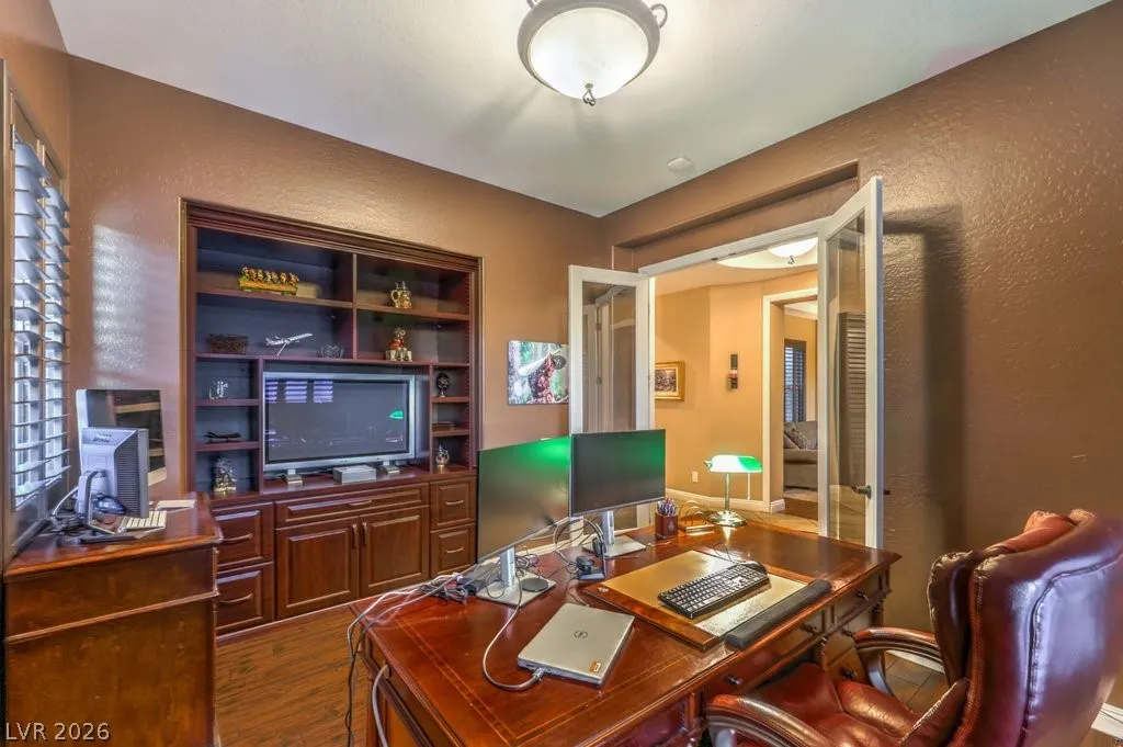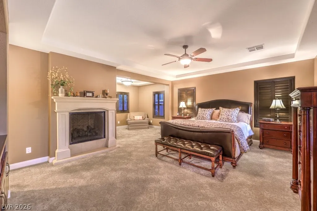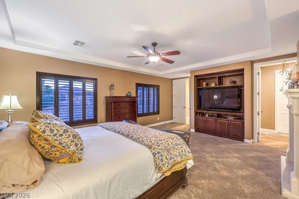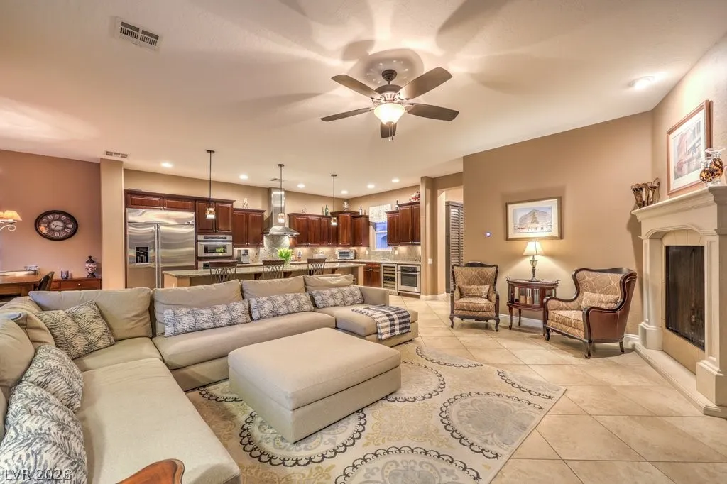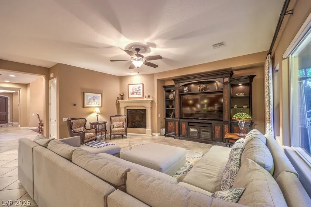 Luxury estate on nearly 1/3-acre corner lot. Gourmet kitchen features stainless steel appliances, including 2-convection ovens, 5-burner cooktop, built-in refrigerator, granite counters and backsplash, and large island with breakfast bar. Spacious great room has large, picturesque windows to the backyard, fireplace and media niche. Formal living and separate formal dining room. Office has double glass doors with built-in cabinets. A loft/game room has its own balcony. Grand master retreat with a sitting room, fireplace, built-in media niche, 2 walk-in closets, jetted tub and shower. Large secondary bedrooms all have access to full bathrooms including a casita with its own entrance. Upgraded touches like plantation shutters, laundry room with sink and cabinets, port-coche with stamped concrete driveway, separate storage unit, and more. Backyard paradise with lush landscaping, pebble tech pool, spa with waterfall, built-in BBQ with refrigerator, 3-burner firepit and covered patios.