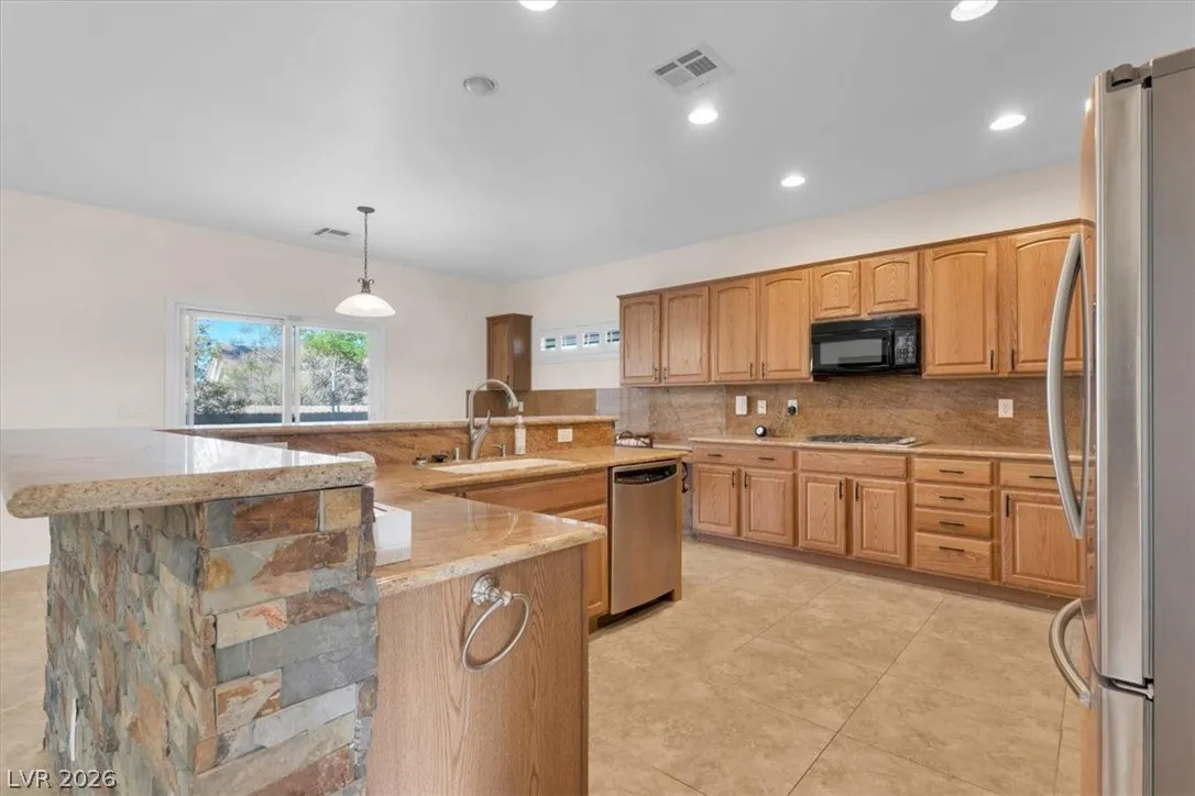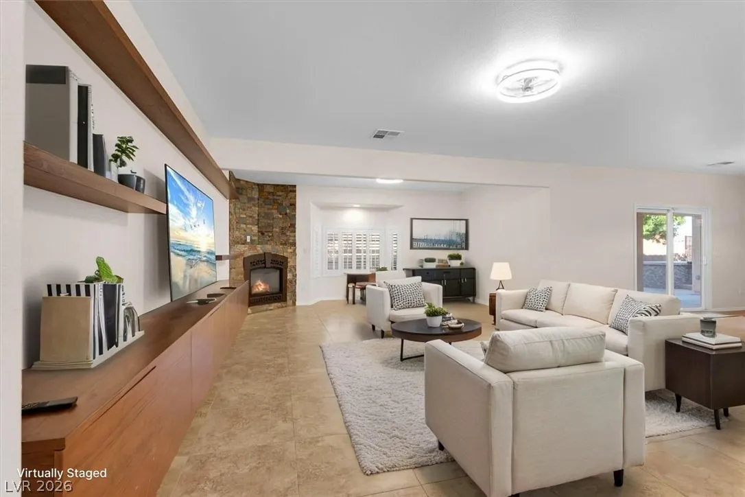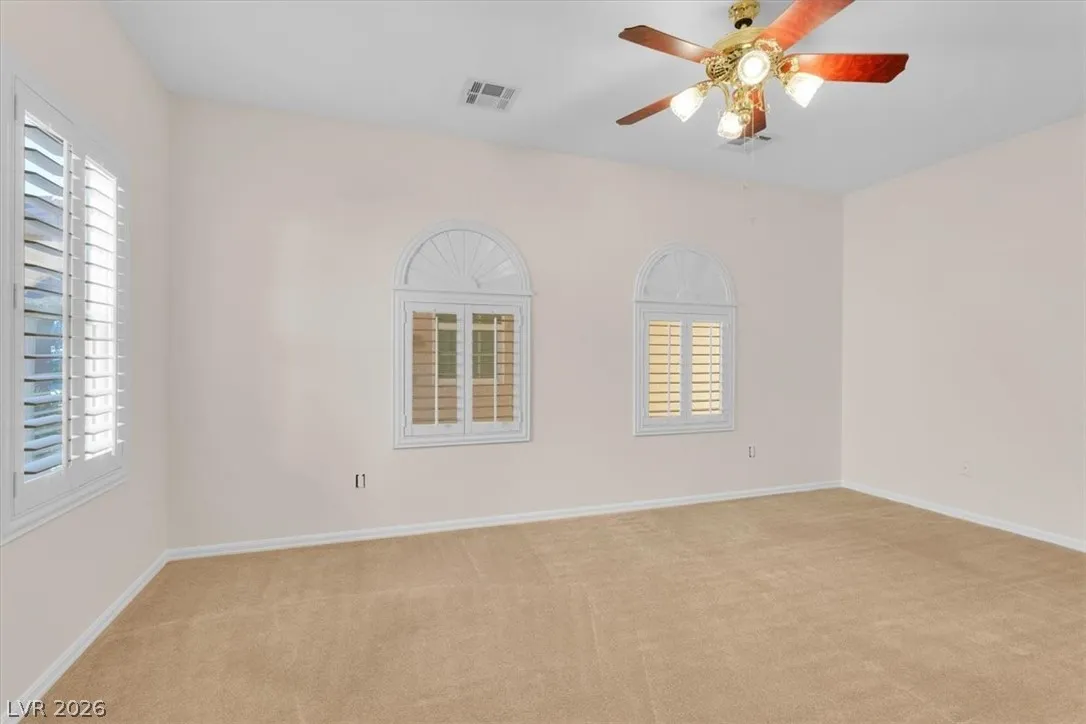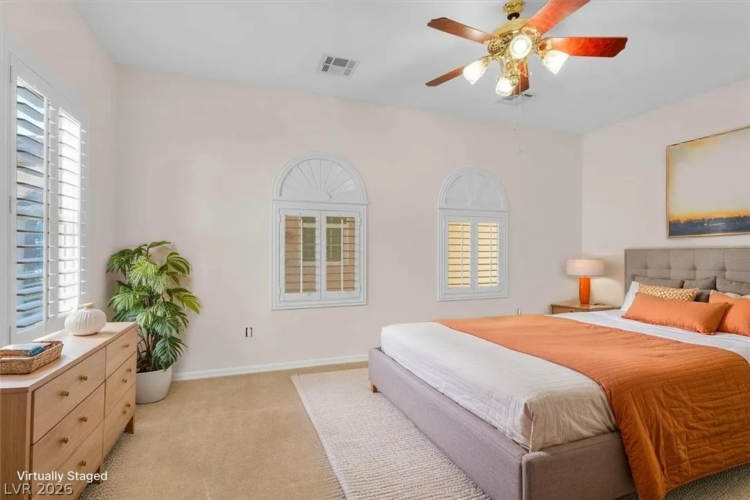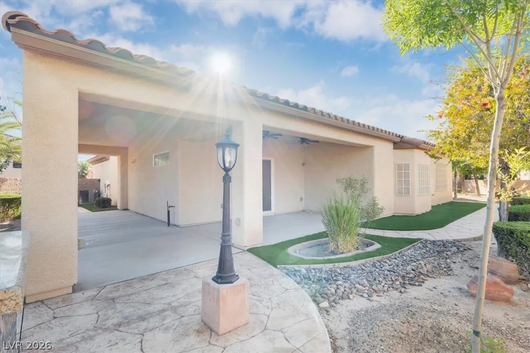 Stunning Jackson model on 10,000 sqft lot w/ custom 800 sqft casita & detached oversized golf cart garage w/ epoxy floor! Casita is its own spacious retreat w/ private entrance, courtyard, separate door to backyard, deluxe ensuite bath w/ jacuzzi tub, separate shower & full walk-in closet w/ built-ins. Freshly painted interior, gorgeous mahogany entertainment center, shelving & flat screen TV included! Open layout w/ gas fireplace, stacked stone accent walls, & plantation shutters. Chef’s kitchen w/ double ovens, granite counters w/ backsplash & extended cabinetry, stainless steel appliances, built-in office in kitchen & the laundry room +front loader washer & dryer included! Beautifully landscaped backyard w/ built-in BBQ & granite counter, expansive covered patio, lush trees, synthetic grass & stamped concrete walkways. Enjoy Sun City Anthem amenities: restaurant, tennis courts, resort style pool w/ strip views, 100+ club activities & social calendar – included in your HOA Fees!