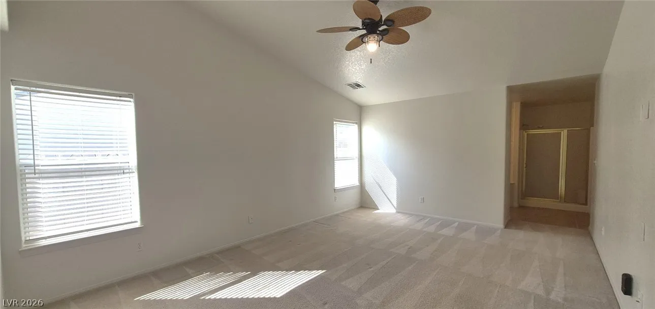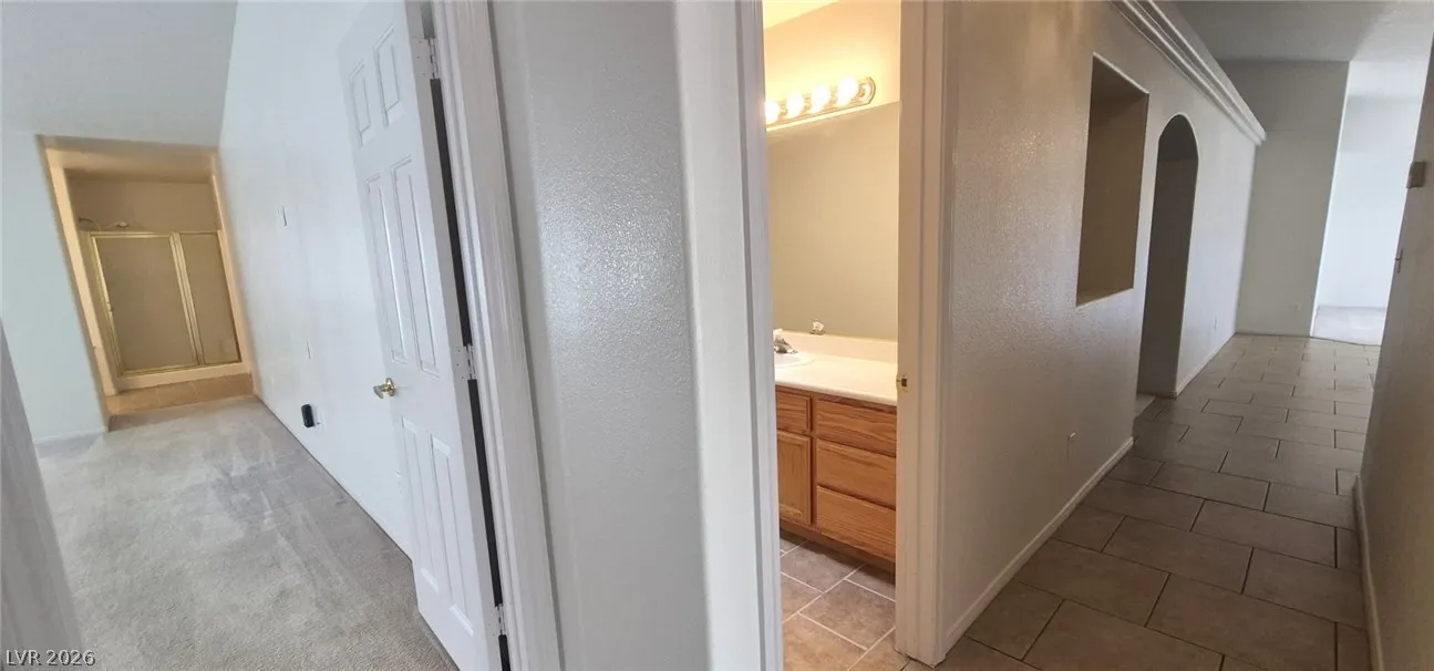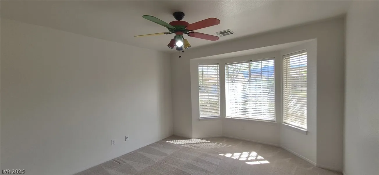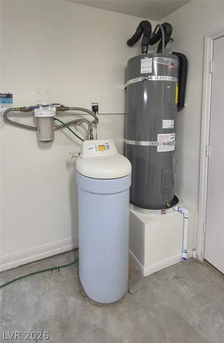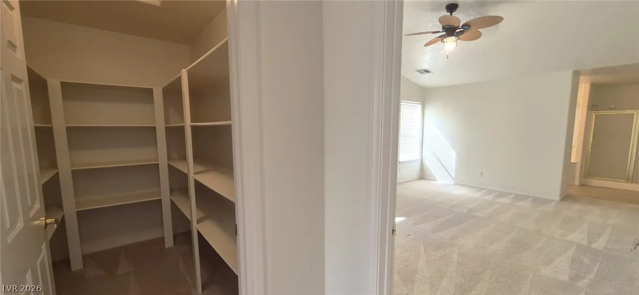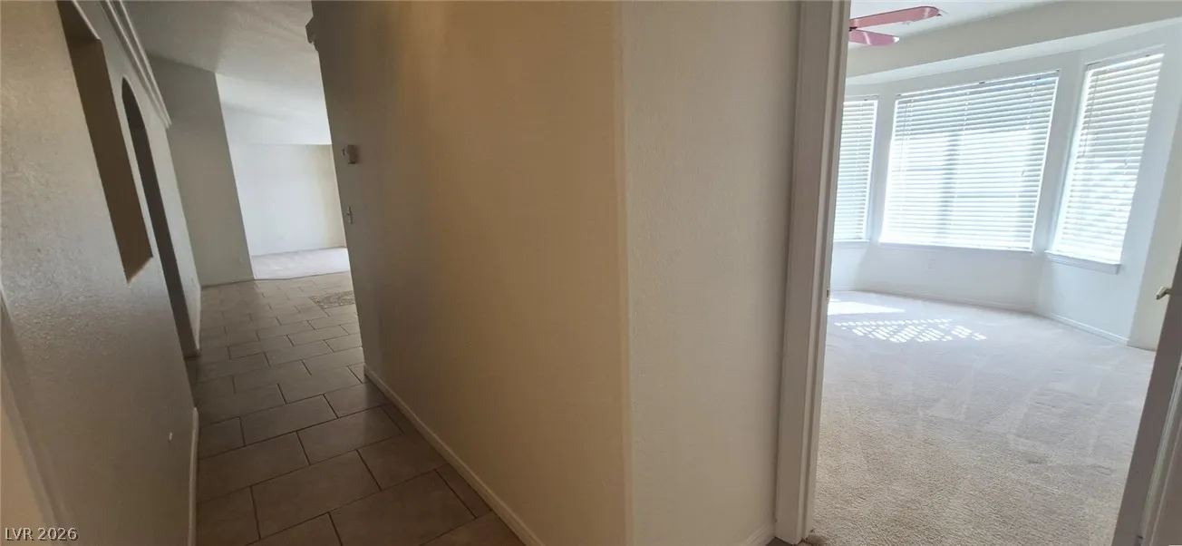 Ranch style floorplan with large, spacious rooms. Formal front entry with custom porcelain tile insert, rear facing living room with wood burning fireplace and open floorplan to the kitchen and breakfast nook. Front part of laundry room contains a built-in desk and exit to garage, which is off of the kitchen. Front facing guest bedrooms both contain bay windows, ceiling fans and lights. Very spacious rear facing primary bedroom can hold large furnishings. Primary bathroom has dual sinks, make-up area, separate tub and shower, walk-in closet, and a doorway to the covered patio. Backyard contains desert style landscaping and a frame/stucco shed built on a slab. The side yard has RV parking with water, electric and sewer connections. The house is pre-wired for alarm system, surround sound, and water filtration system. The covered patio had the roofing replaced approx 1 year ago with TPO roofing membrane.