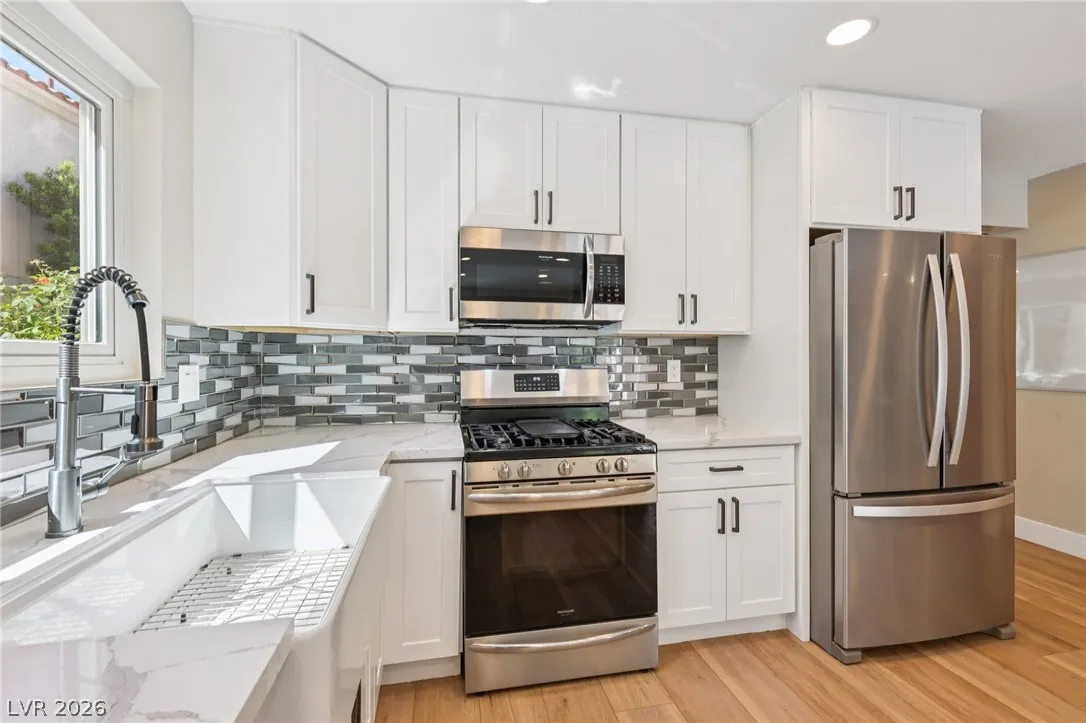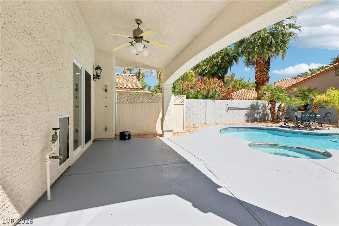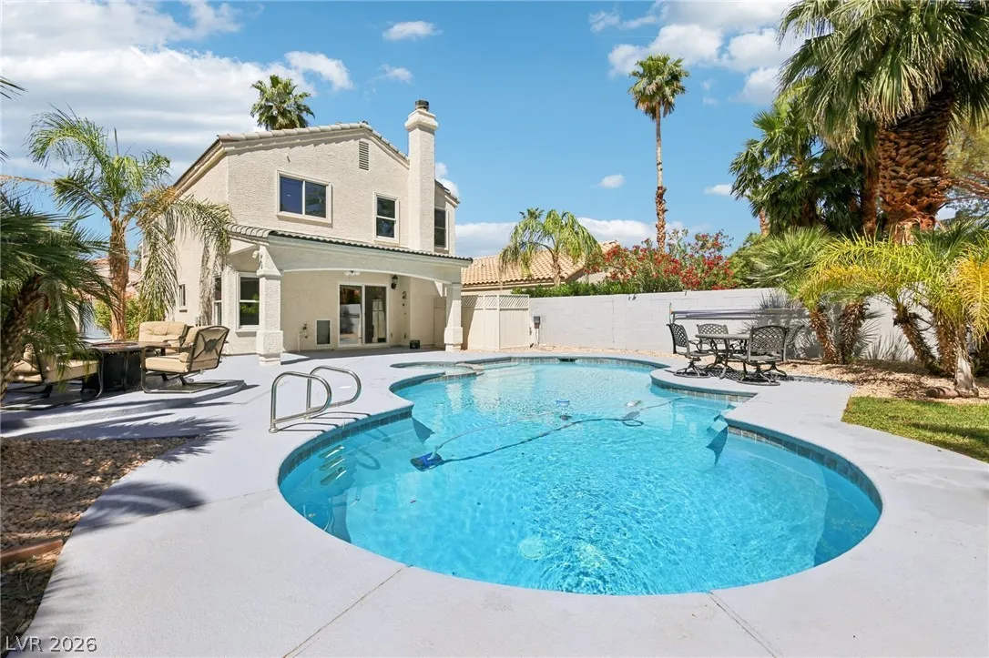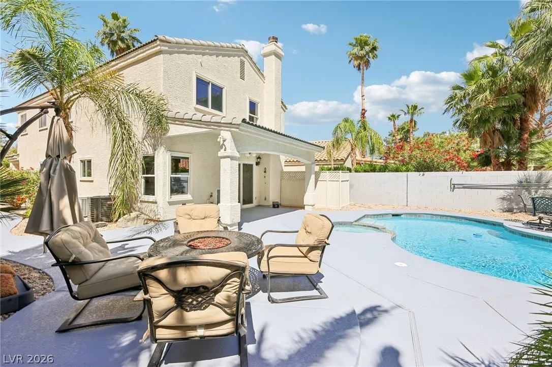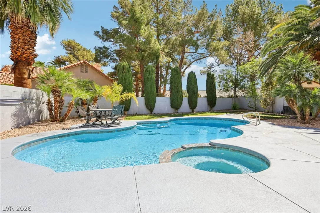 Stunning single-family home in the heart of highly desirable Green Valley! Situated on a unique oversized lot, this beautifully upgraded residence offers the perfect blend of comfort, style, & outdoor living. Enjoy year-round relaxation in your private backyard oasis featuring a heated pool & spa, covered patio, multiple seating areas, & serene, lush landscaping that provides exceptional privacy. It boasts a freshly painted exterior & a spacious interior of over 2,000 sq ft w/4 bedrooms & 3 bathrooms. Inside, you’ll find upgraded luxury vinyl plank flooring, updated windows, & modern LED lighting that enhances every space.Completely renovated kitchen is a showstopper, featuring new cabinetry, extended quartz countertops, & stainless steel appliances.A flexible layout offers a versatile space ideal for a family room or formal dining area.LOW HOA community-$38/mo, conveniently close to golf courses, shopping, dining, & more.This exceptional property truly has it all & is move in ready!