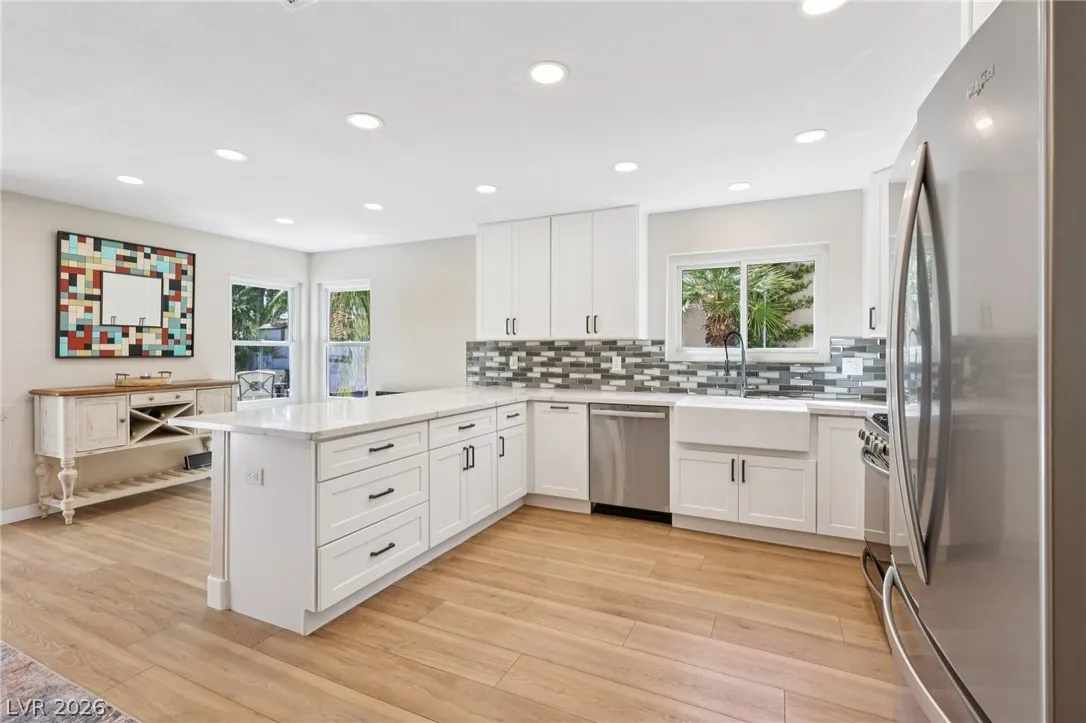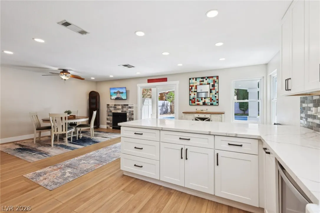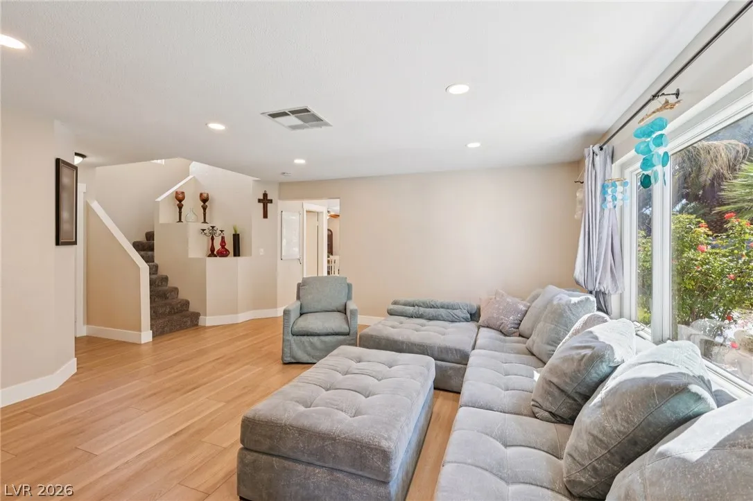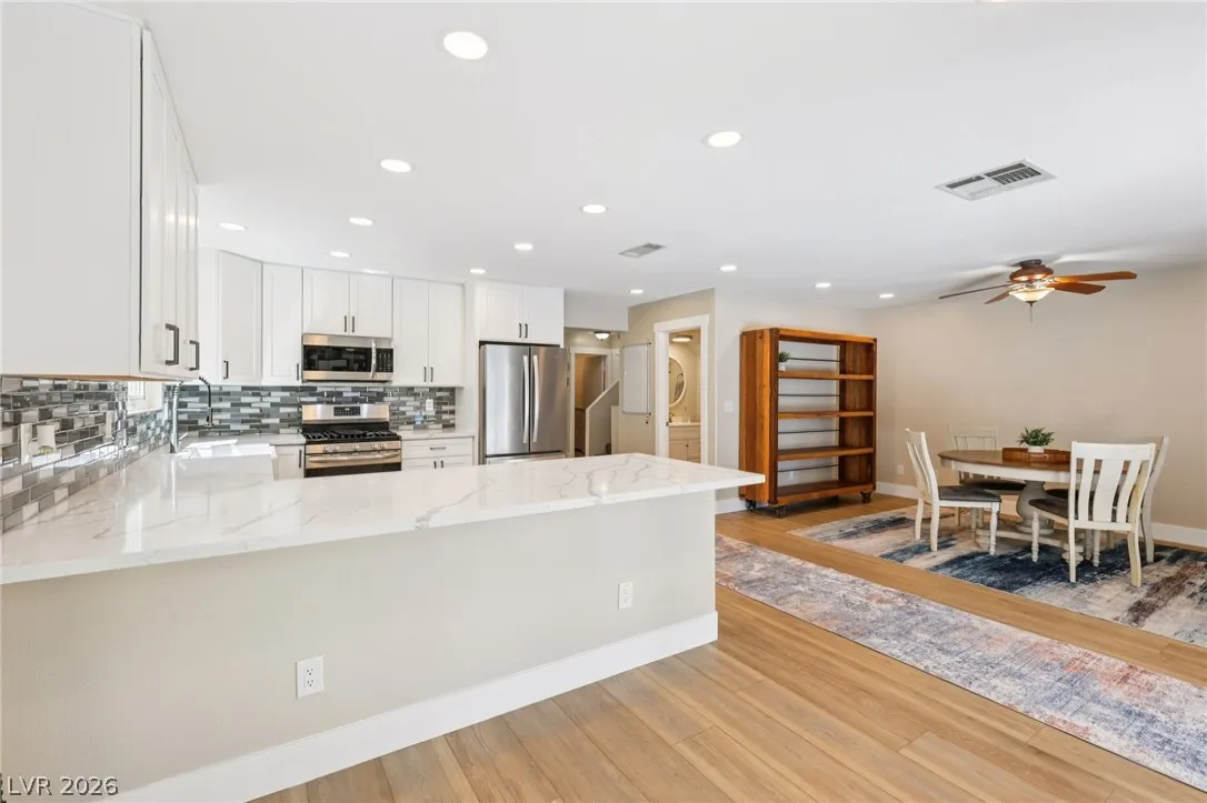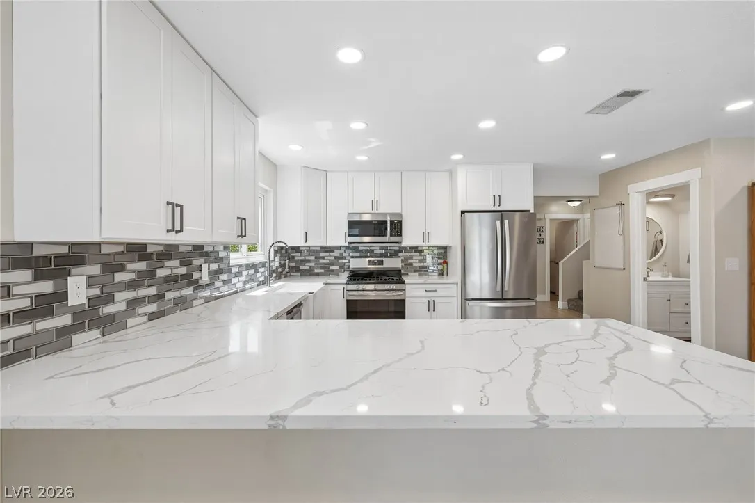 Stunning single-family home in the heart of highly desirable Green Valley! Situated on a unique oversized lot, this beautifully upgraded residence offers the perfect blend of comfort, style, & outdoor living. Enjoy year-round relaxation in your private backyard oasis featuring a heated pool & spa, covered patio, multiple seating areas, & serene, lush landscaping that provides exceptional privacy. It boasts a freshly painted exterior & a spacious interior of over 2,000 sq ft w/4 bedrooms & 3 bathrooms. Inside, you’ll find upgraded luxury vinyl plank flooring, updated windows, & modern LED lighting that enhances every space.Completely renovated kitchen is a showstopper, featuring new cabinetry, extended quartz countertops, & stainless steel appliances.A flexible layout offers a versatile space ideal for a family room or formal dining area.LOW HOA community-$38/mo, conveniently close to golf courses, shopping, dining, & more.This exceptional property truly has it all & is move in ready!