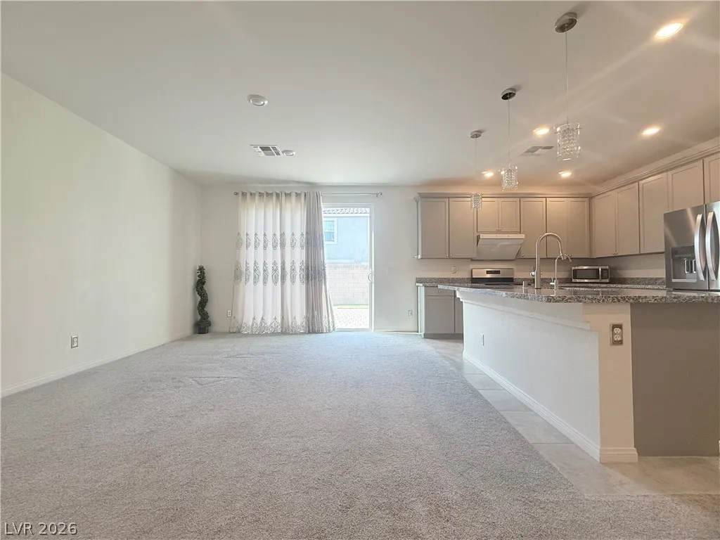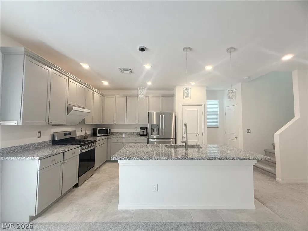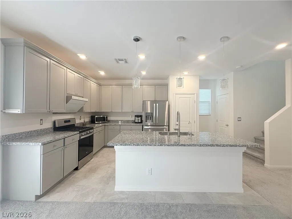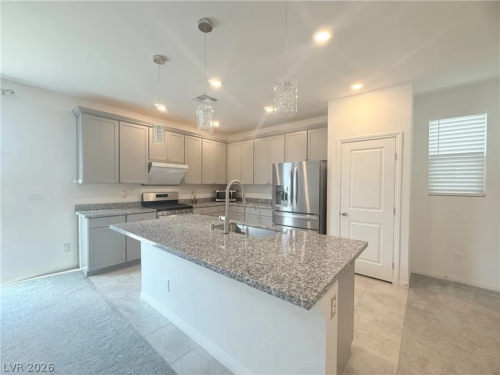 home office. The kitchen features upgraded gray cabinetry, thickened countertops, and an upgraded range hood. Step outside to backyard is a easy maintain backyard with a designated flowerbed; and a gas BBQ stub—ideal for relaxing or entertaining. Perfect location 5-10 minutes from Peak Exploration Park, the library, shopping, dining, entertainment and the new Costco! This is the seller’s vacation home.