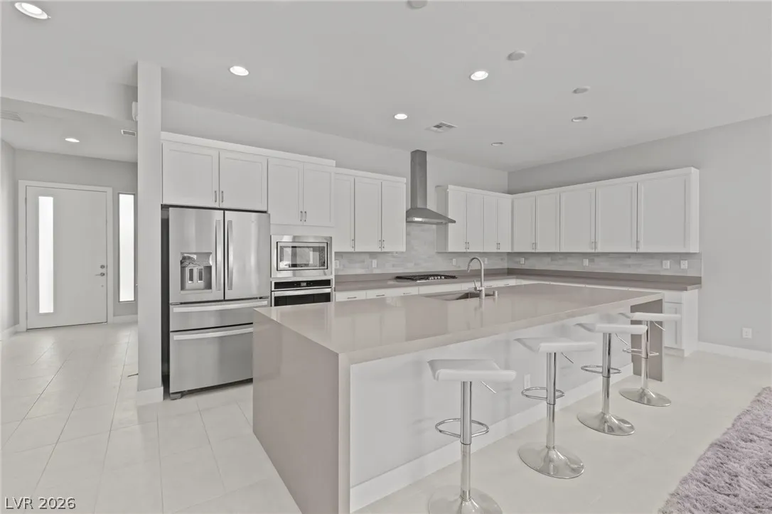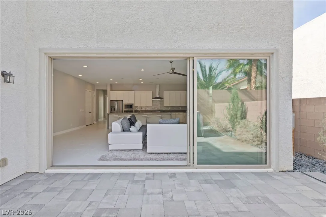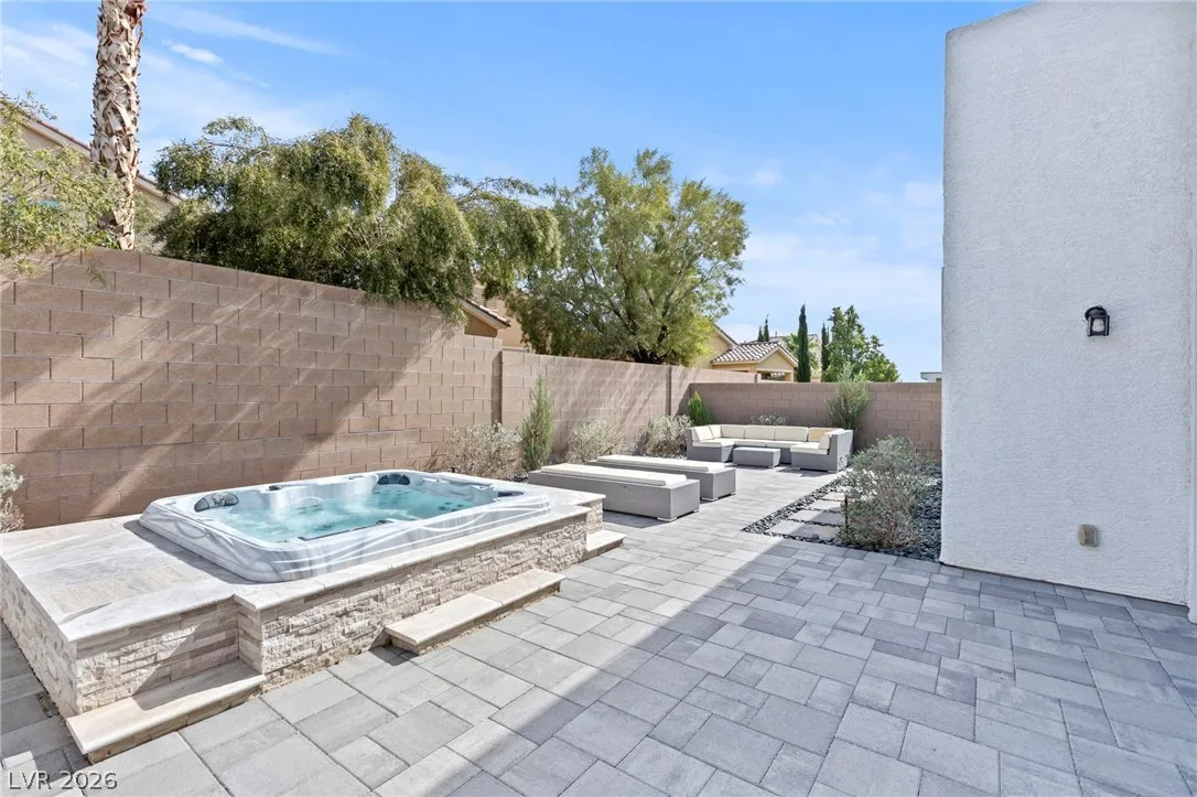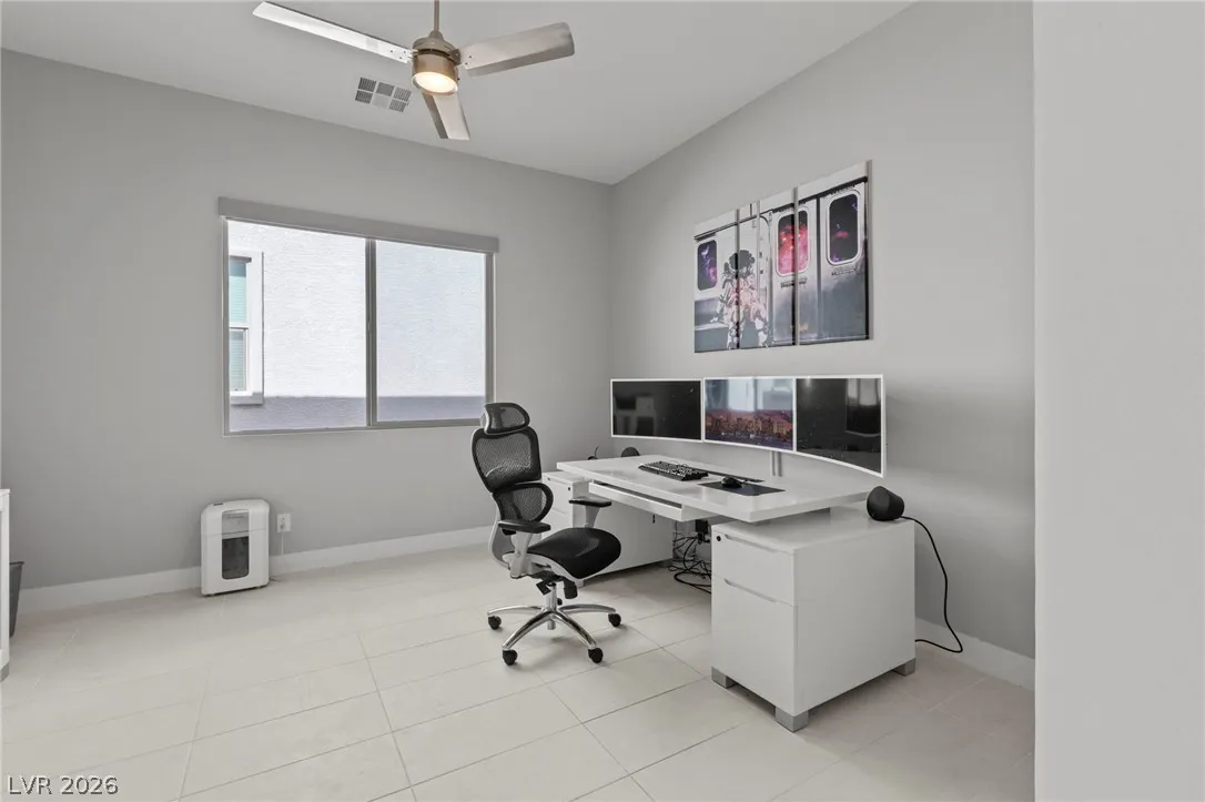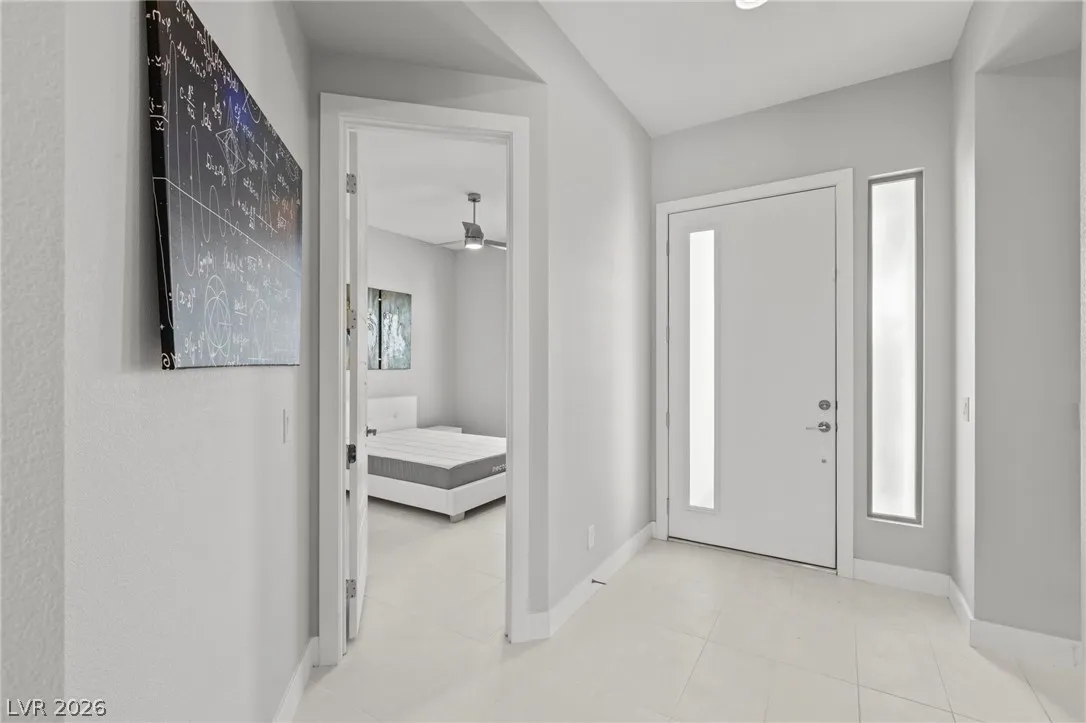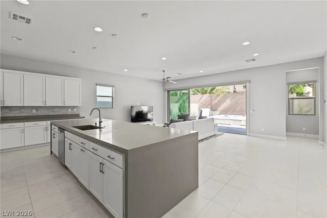 Sleek, modern, and move in ready, this beautifully maintained 6 year old single story home offers the perfect blend of style and functionality! Featuring 2 large bedrooms plus a versatile den, ideal for a home office, media room, or optional 3rd bedroom, this layout adapts effortlessly to your lifestyle. Clean lines, open concept living, and contemporary finishes create a bright and airy atmosphere. 12×24 tile throughout, upgraded doors and trim, enormous kitchen with extended waterfall island, bright white cabinets, and 2 door pantry! Great room has accordion slider door for seamless indoor/outdoor living and electric shades! Gorgeous low maintenance backyard has built in spa and custom stonework, your perfect private outdoor escape! Ceiling fans in all rooms, tinted bedroom windows for privacy, tempered security film on back accordian door, sink in laundry room, epoxy garage floor, water softener, and so much more! Don’t miss this one, schedule your showing today!