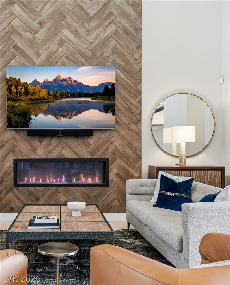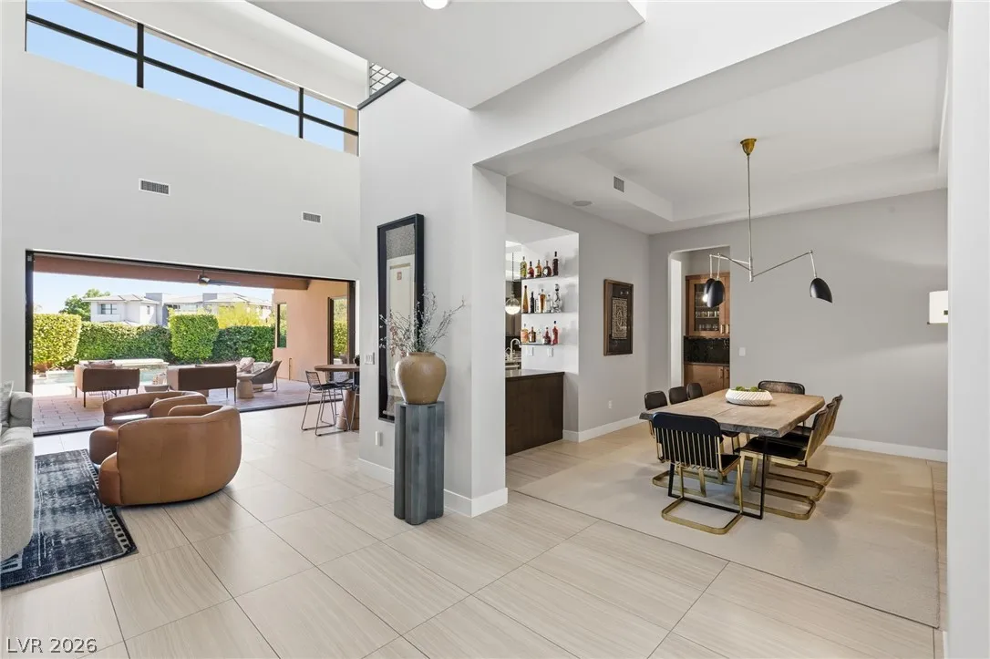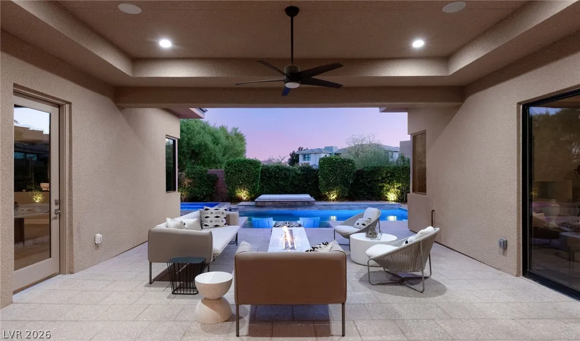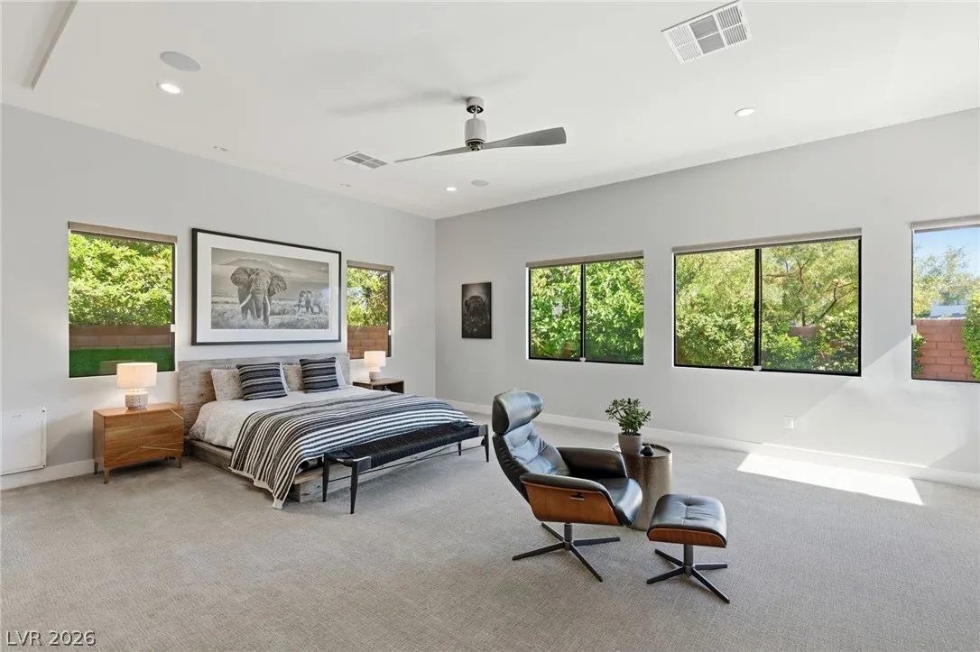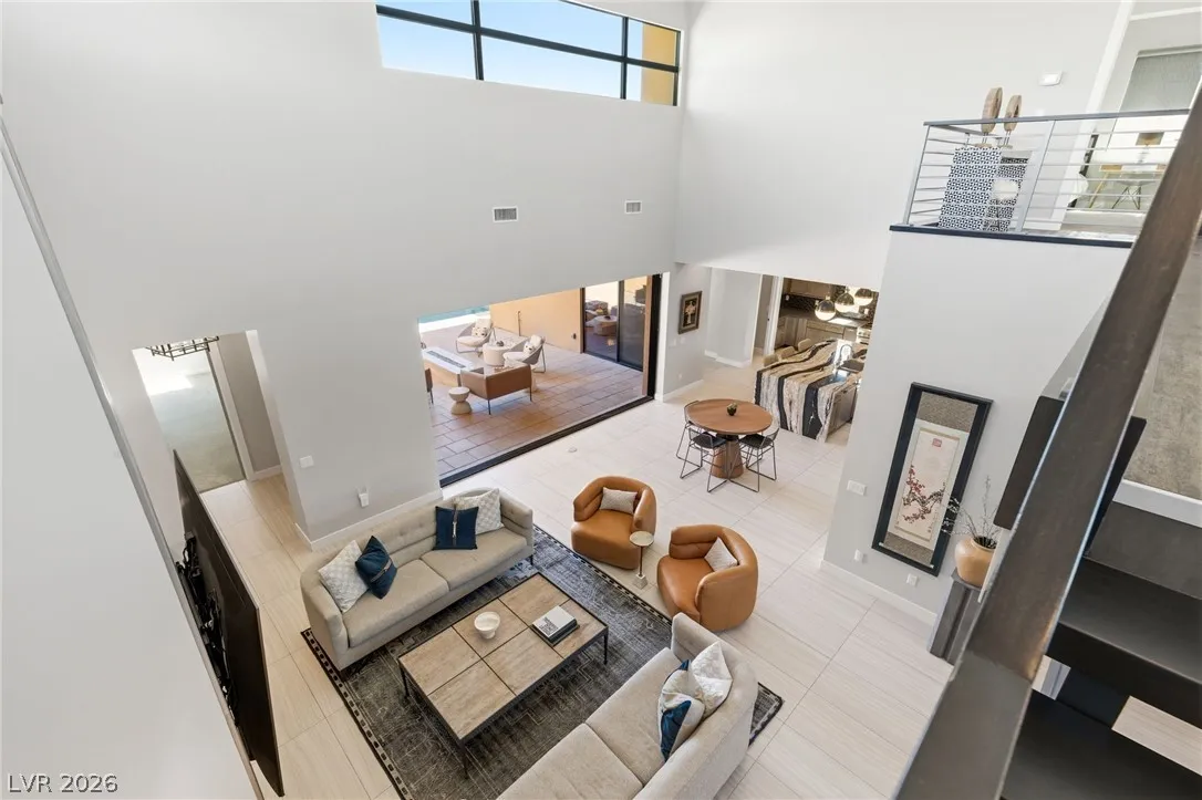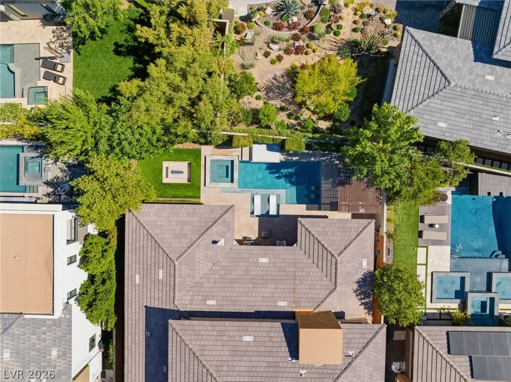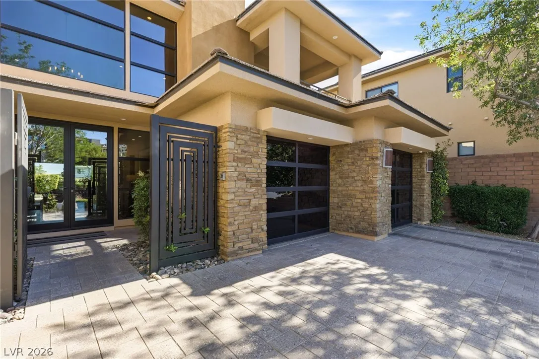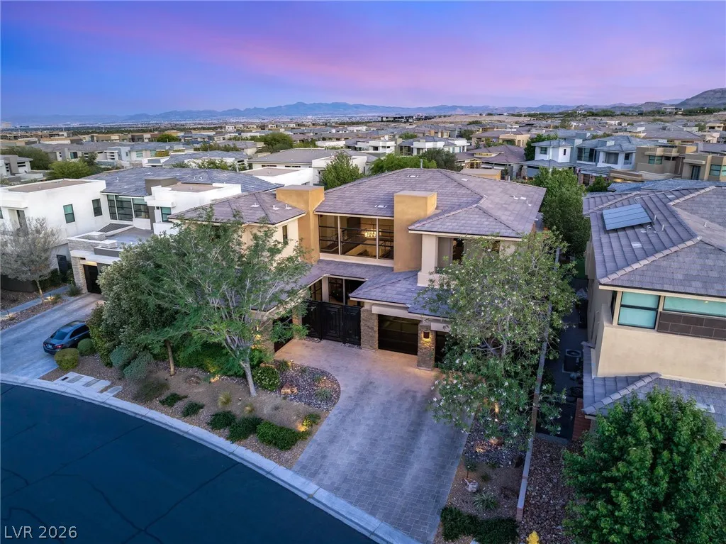 Positioned within the guard-gated The Ridges, this Sterling Ridge home delivers a balance of clean architecture and elevated comfort. A statement pivot entry opens to an airy great room, where dramatic ceiling lines, a contemporary fireplace, and a full wall of pocketing glass create a seamless indoor-outdoor flow. The backyard offers a rare sense of privacy with no homes behind, designed as a true escape with a resort-style pool and spa, fire feature, and outdoor kitchen ideal for entertaining. On the main level, the primary suite is a private retreat with its own lounge area and fireplace, paired with a spa-like bath featuring dual vanities, soaking tub, oversized shower, and custom closet. A separate den provides flexible use. Upstairs, two ensuite bedrooms, a loft with bath and wet bar, and a private balcony complete the home.