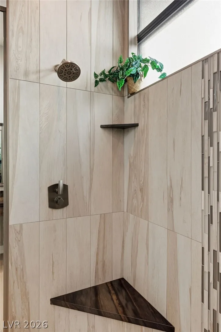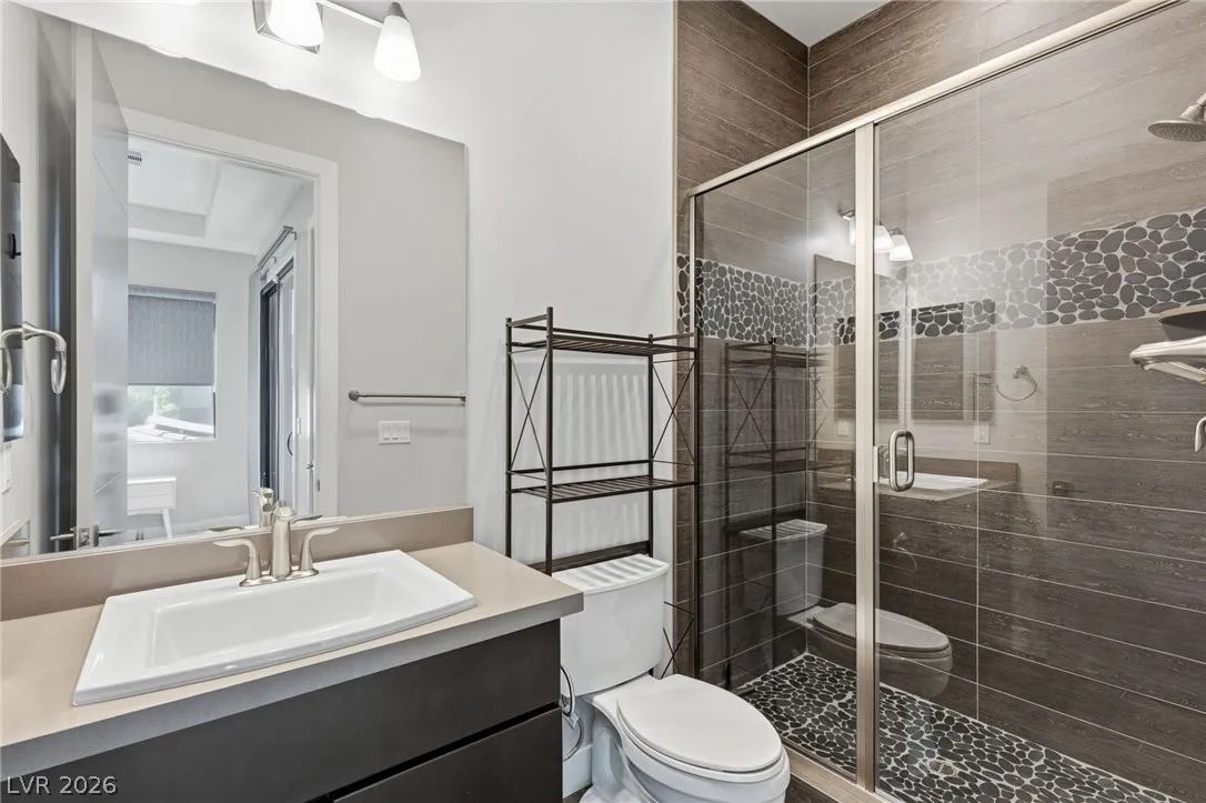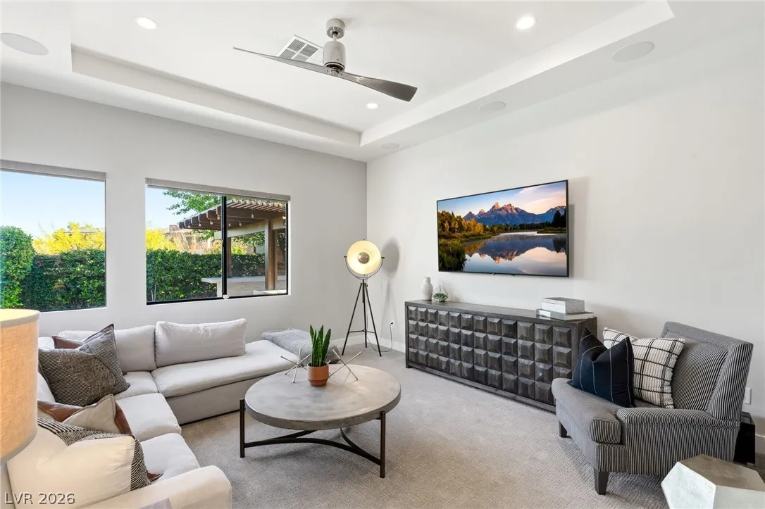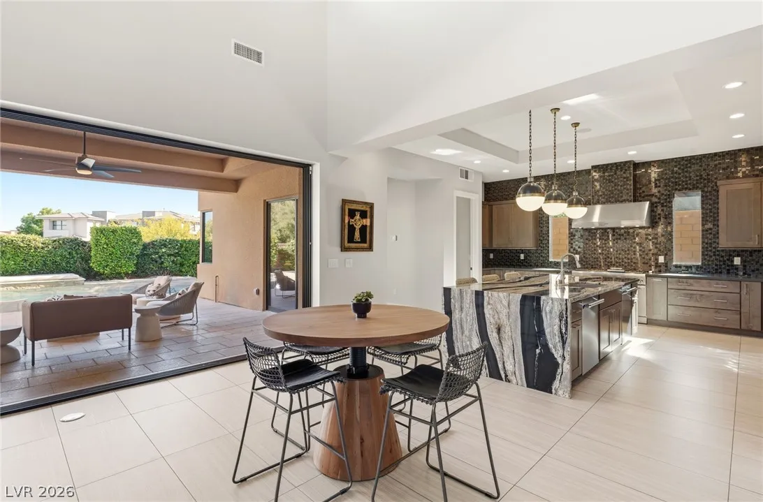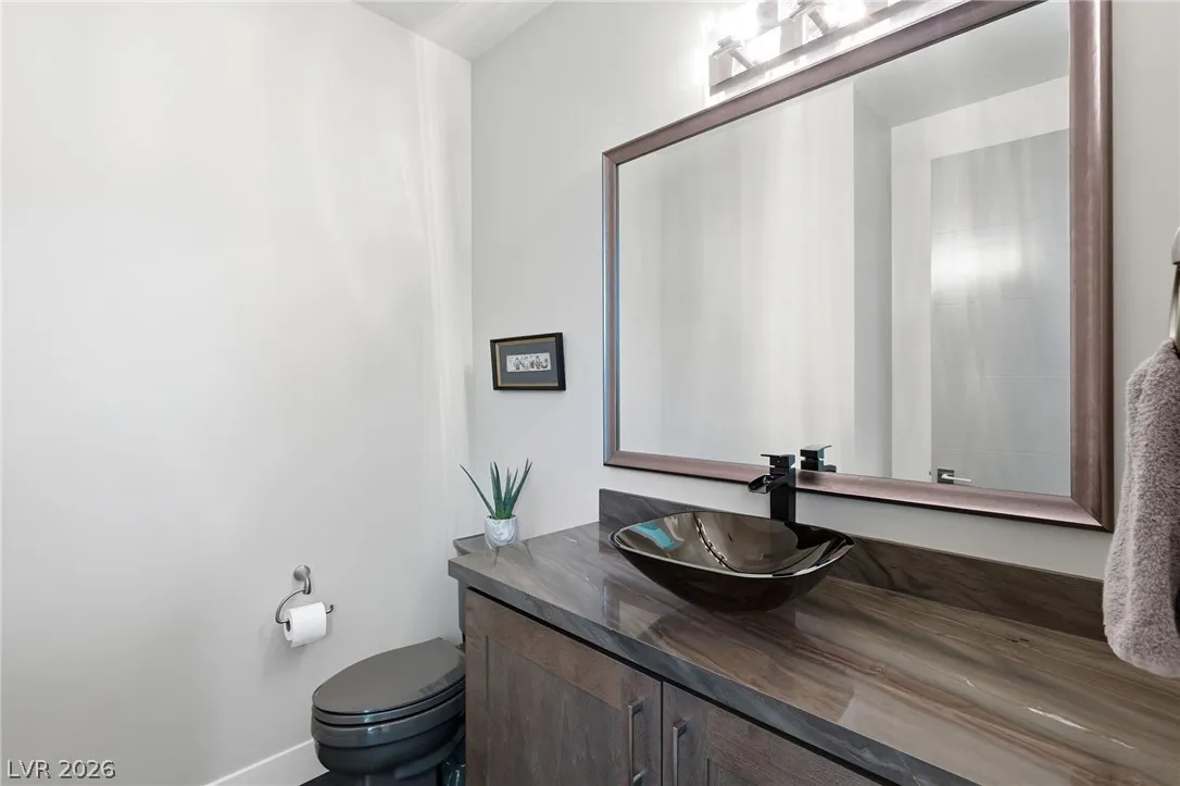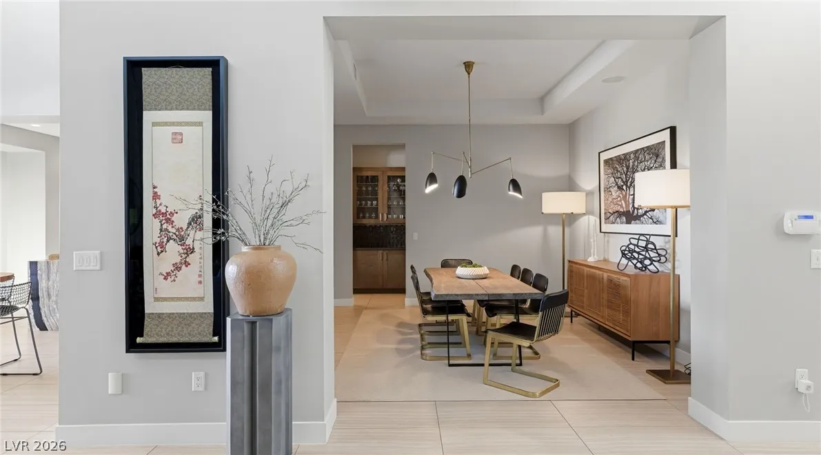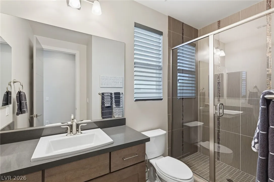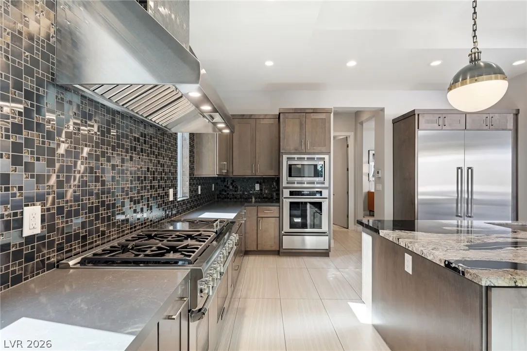 Positioned within the guard-gated The Ridges, this Sterling Ridge home delivers a balance of clean architecture and elevated comfort. A statement pivot entry opens to an airy great room, where dramatic ceiling lines, a contemporary fireplace, and a full wall of pocketing glass create a seamless indoor-outdoor flow. The backyard offers a rare sense of privacy with no homes behind, designed as a true escape with a resort-style pool and spa, fire feature, and outdoor kitchen ideal for entertaining. On the main level, the primary suite is a private retreat with its own lounge area and fireplace, paired with a spa-like bath featuring dual vanities, soaking tub, oversized shower, and custom closet. A separate den provides flexible use. Upstairs, two ensuite bedrooms, a loft with bath and wet bar, and a private balcony complete the home.