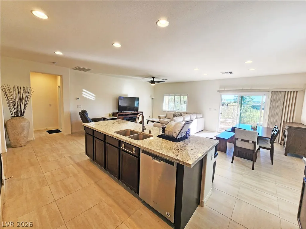 6 month lease! Welcome home to beautiful Mountain Falls. Enjoy resort style living in this fabulous 3 bedroom, 2 bath, 3 car garage home. Spacious kitchen with granite counters, rich dark cabinets, large island newer stainless steel appliances & tile flooring. Large primary bedroom with glass door to patio where you can enjoy gorgeous views of the golf course. Huge walk-in closet, roomy primary bathroom with double sinks, jetted tub and separate shower. Easy to maintain desert landscaping with drip bubble irrigation. Home includes access to two pools, and exercise room. Call for a private tour today!