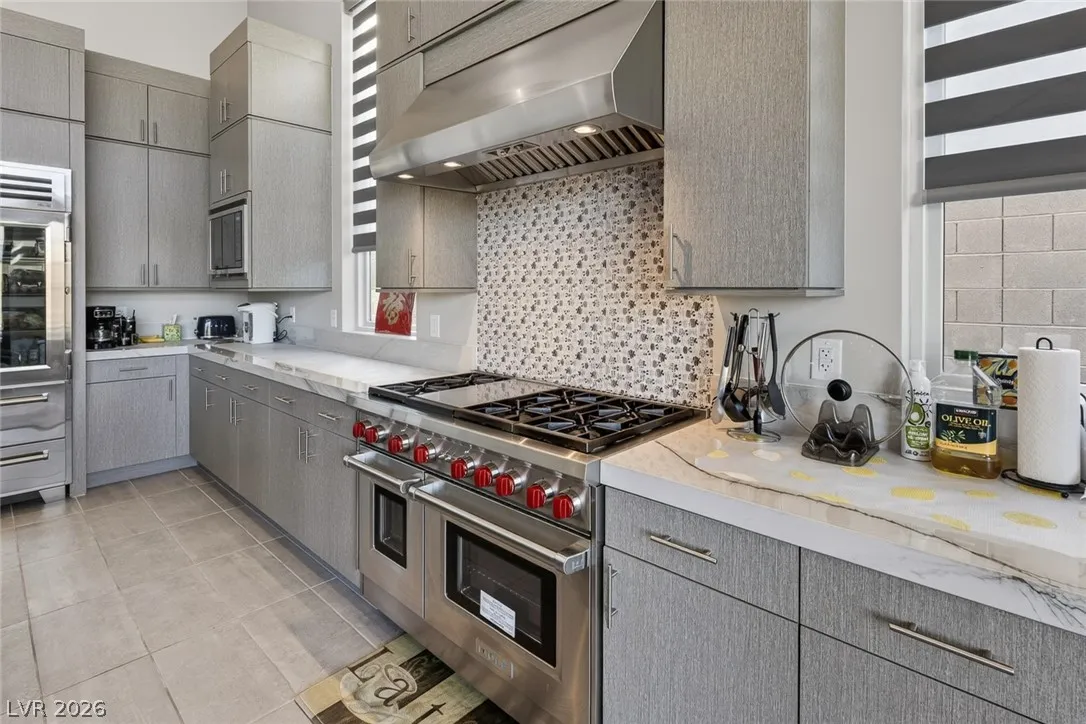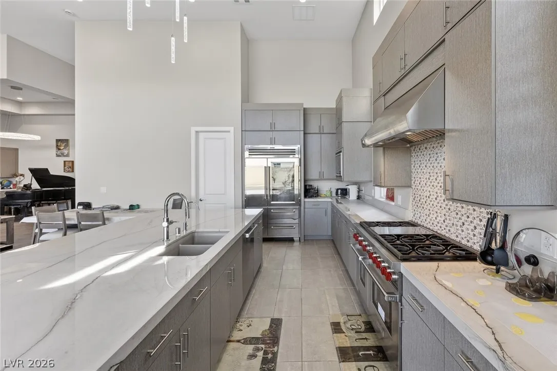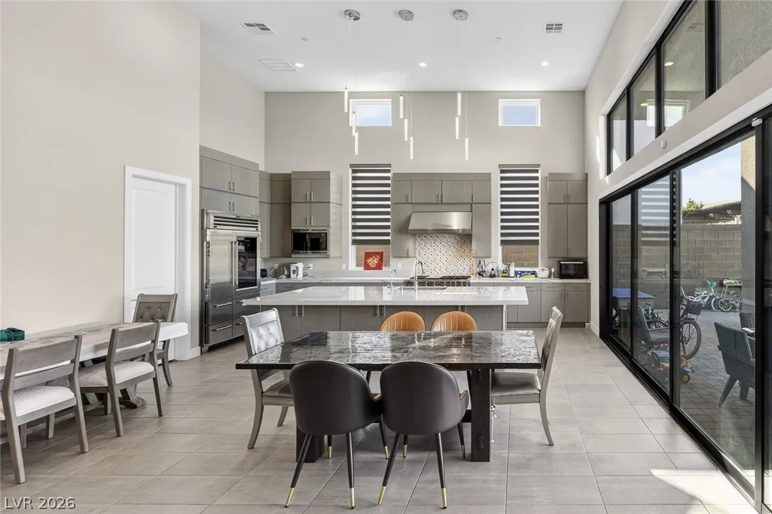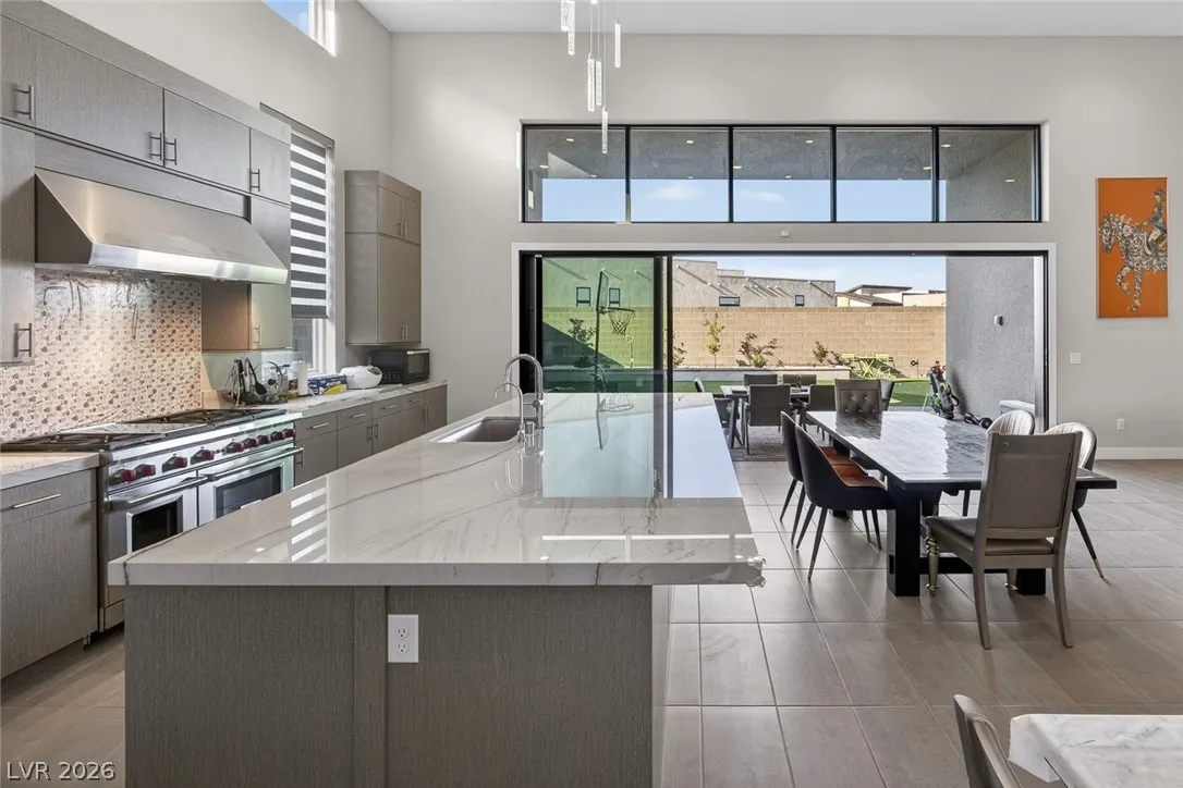 Designed for light and openness, the home features full storefront-style windows, 16’ high ceilings, and a seamless open layout. The chef’s kitchen includes quartzite countertops, oversized island, top of the line, Subzero Fridge and Wolf cook appliances etc…