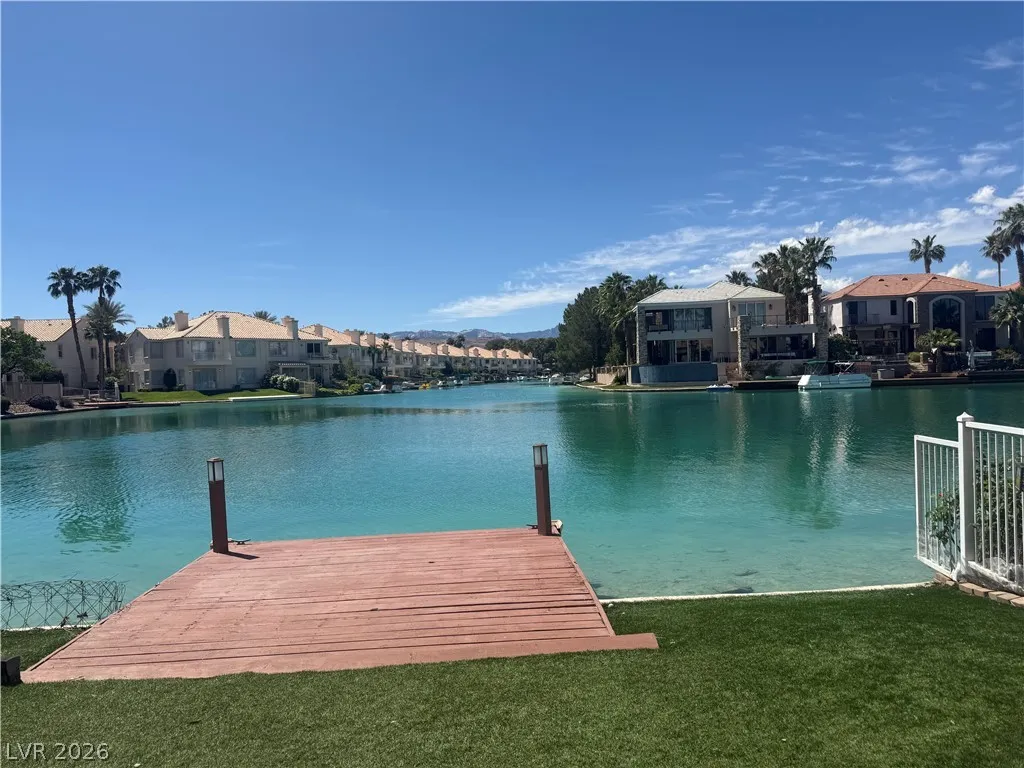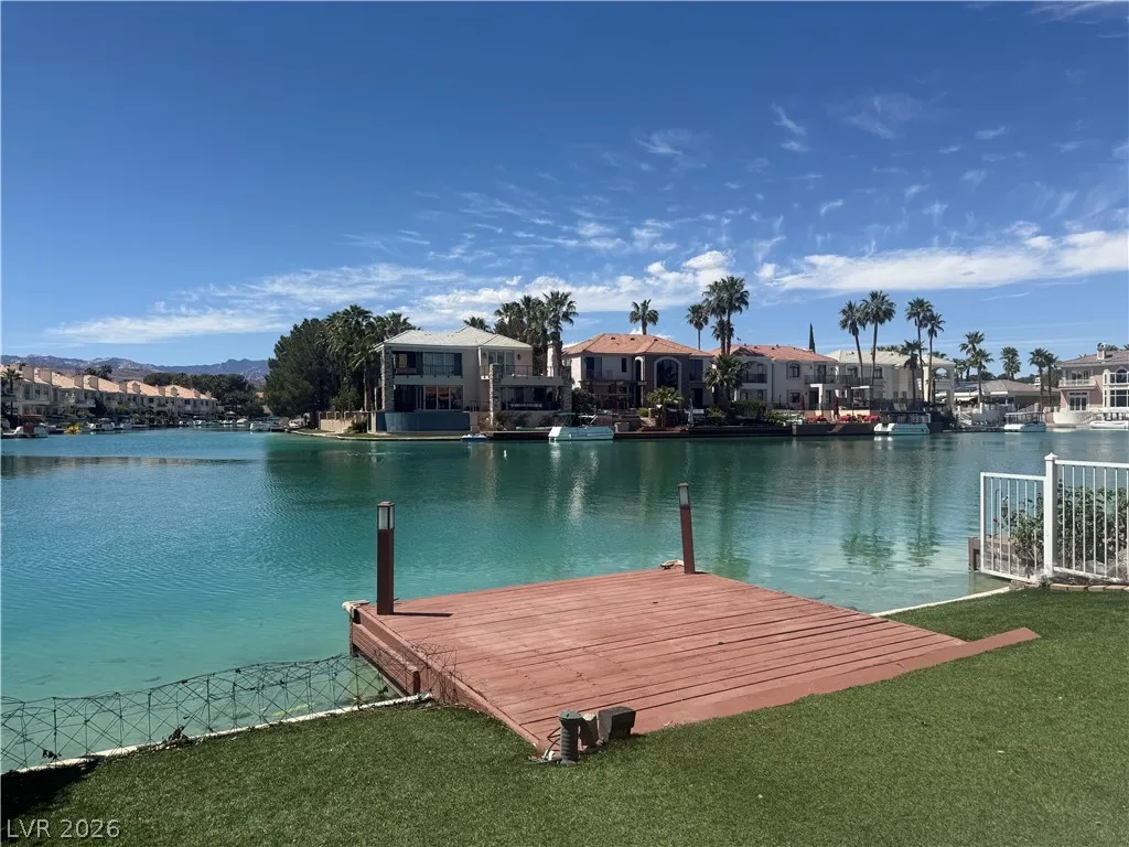 Lakefront Property, Amazing Views, Private Dock and Beautiful Interior. At 2164 sqft this Home is nestled in a small gated South Shores community of 24 homes. Enter into the home to vaulted ceilings full of natural light and Amazing Lake views. Stainless Steel Appliances in the kitchen. Granite Countertops, Tile flooring, and Upgrade Cabinets.. 2nd bedroom is downstairs across from the 2nd bath. No need to share with guests however, there is a half bath as well. Den with shelving can be used as an office, study, or even a third bedroom. The second level is reserved for the primary retreat for maximum privacy. With 2 balcony’s one overlooking the lake and one off the bathroom this can be considered a Primary Suite!! Primary bath has makeup table, double sinks with granite countertops, walk-in closet, balcony, jetted tub, and separate tiled shower. Don’t miss out on this beautiful home..
