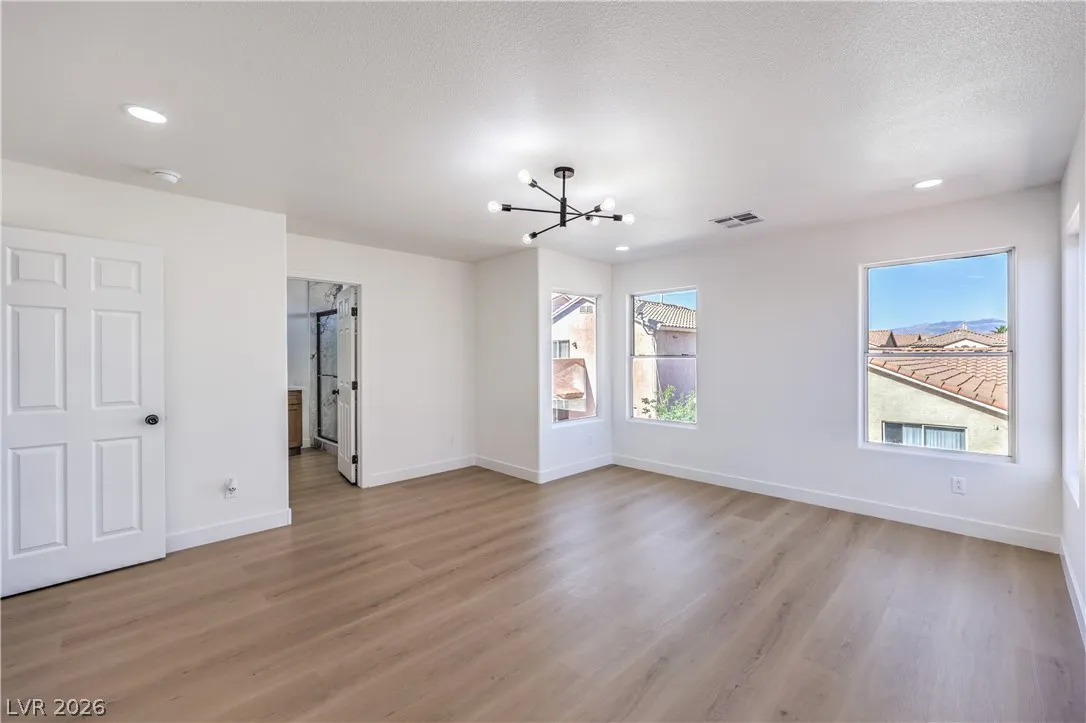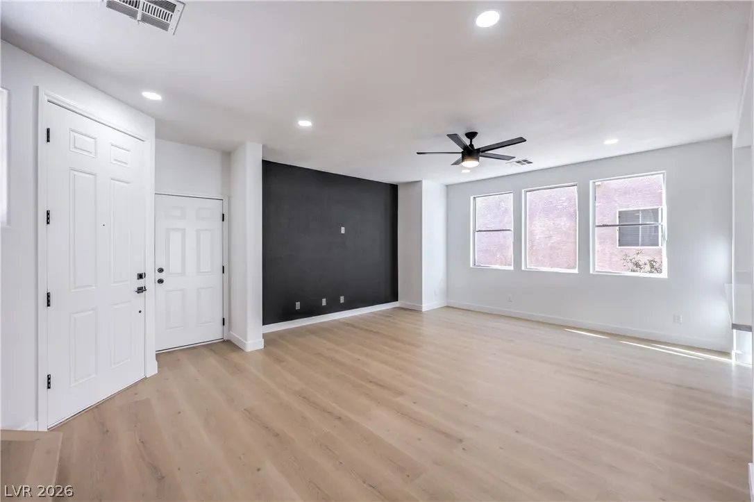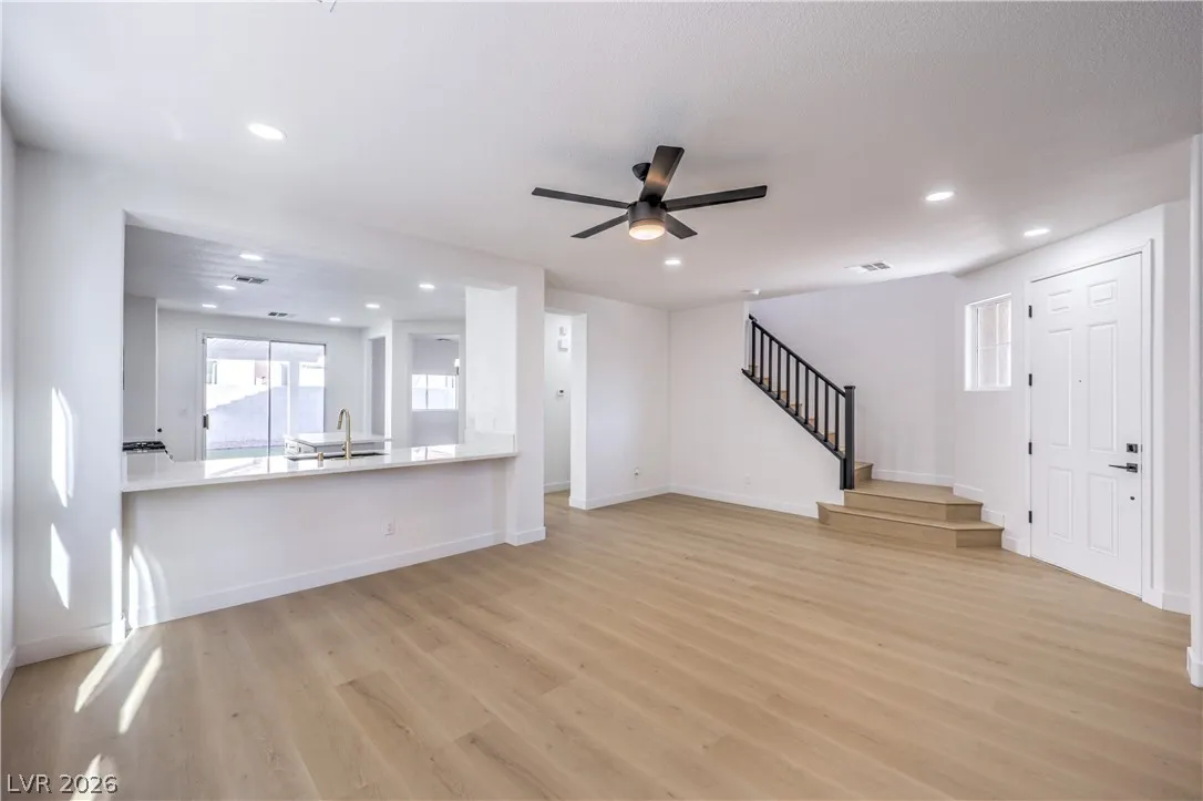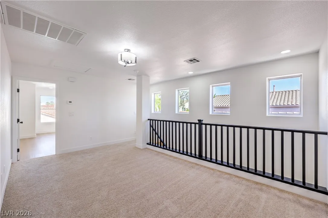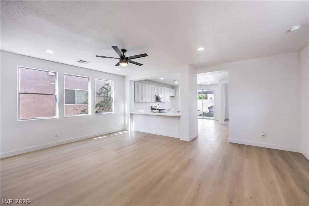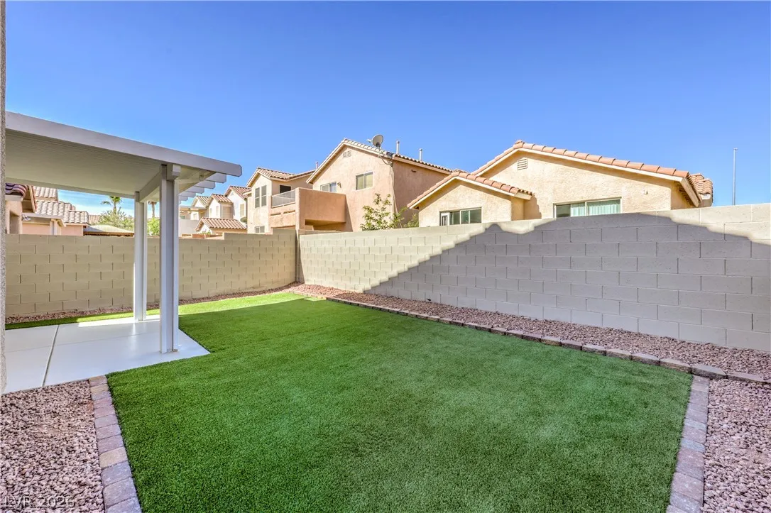 Beautifully remodeled two-story energy-efficient home featuring paid-off solar, a versatile upstairs loft, and a spacious backyard with an attached covered patio, located in the desirable Tierra Linda community. Conveniently situated with quick access to I-15 and Saint Rose Parkway. Inside, the home is filled with natural light and showcases a painted accent wall in the living area, ceiling fans, recessed lighting, custom light fixtures, plush carpet, and laminate wood flooring throughout. The upgraded kitchen offers a breakfast bar, shaker cabinets, custom countertops with gold hardware, a pantry, stainless steel appliances, and a center island with seating. Spa-inspired bathrooms have been fully remodeled and feature dual custom vanities with framed mirrors, modern lighting, beautifully tiled showers with rainfall shower heads, and built-in niches. Move-in ready.