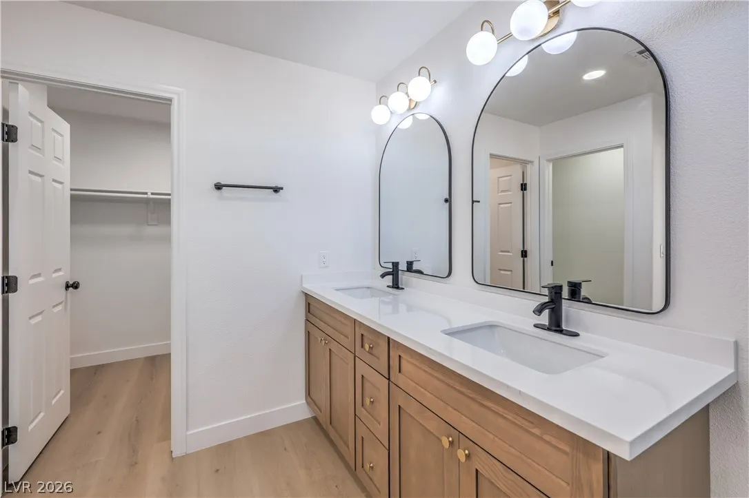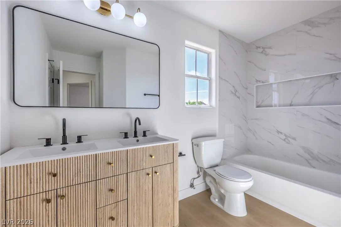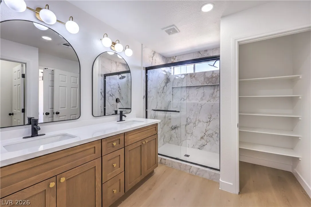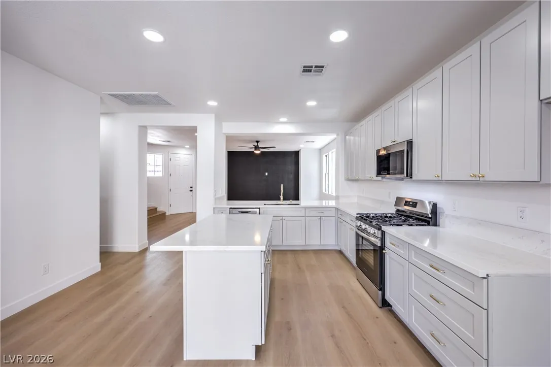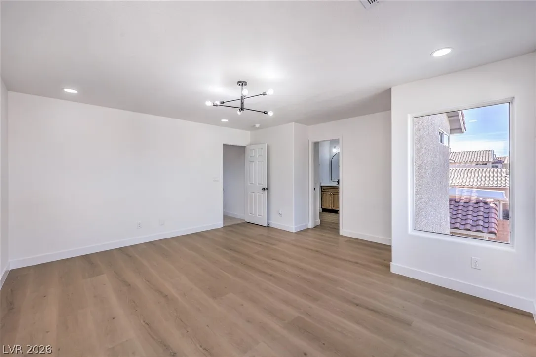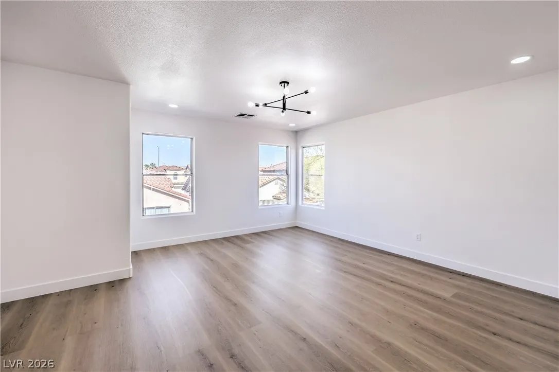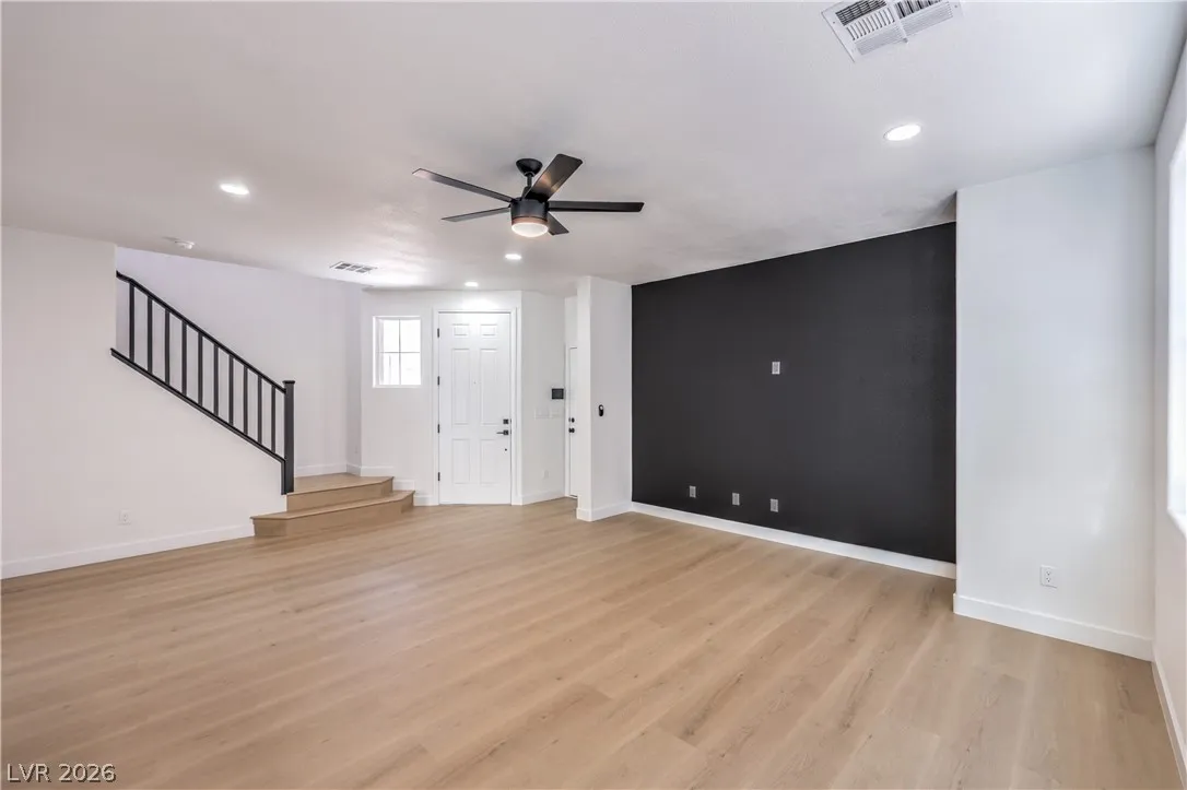 Beautifully remodeled two-story energy-efficient home featuring paid-off solar, a versatile upstairs loft, and a spacious backyard with an attached covered patio, located in the desirable Tierra Linda community. Conveniently situated with quick access to I-15 and Saint Rose Parkway. Inside, the home is filled with natural light and showcases a painted accent wall in the living area, ceiling fans, recessed lighting, custom light fixtures, plush carpet, and laminate wood flooring throughout. The upgraded kitchen offers a breakfast bar, shaker cabinets, custom countertops with gold hardware, a pantry, stainless steel appliances, and a center island with seating. Spa-inspired bathrooms have been fully remodeled and feature dual custom vanities with framed mirrors, modern lighting, beautifully tiled showers with rainfall shower heads, and built-in niches. Move-in ready.