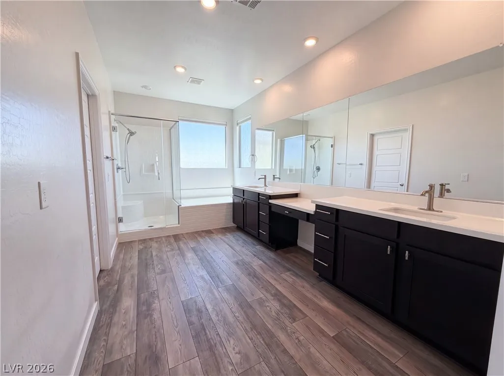 Introducing 5629 Lowell Cliff St, designed for practical, comfortable living. The kitchen features an island, accent backsplash, and stainless steel appliances. The primary bedroom includes a walk-in closet; the primary bathroom has double sinks, a separate tub, and shower. A covered patio extends to a fenced backyard. This residence delivers style and functionality for modern living. This home has been virtually staged to illustrate its potential.