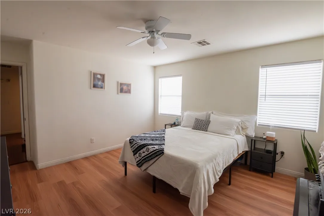 One story home in a corner lot with 3 bedrooms, 2 full bath rooms, 2 car garage and with a very low HOA. Features: brand new front and security doors. New kitchen lights, refurbished kitchen cabinets. Spacious living room, principal bedroom comes with 2 closets and a ceiling fan. Big backyard with covered patio. It’s a must see!!