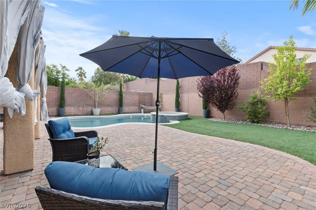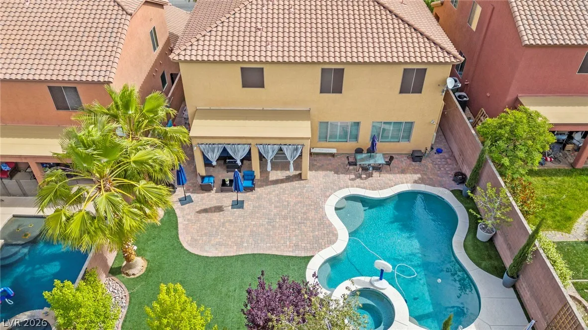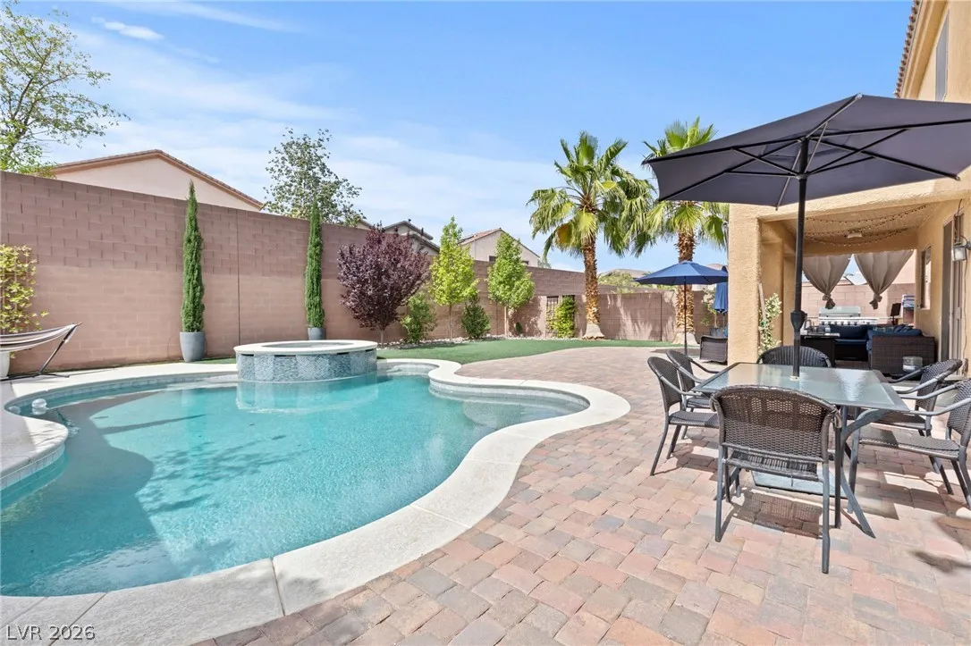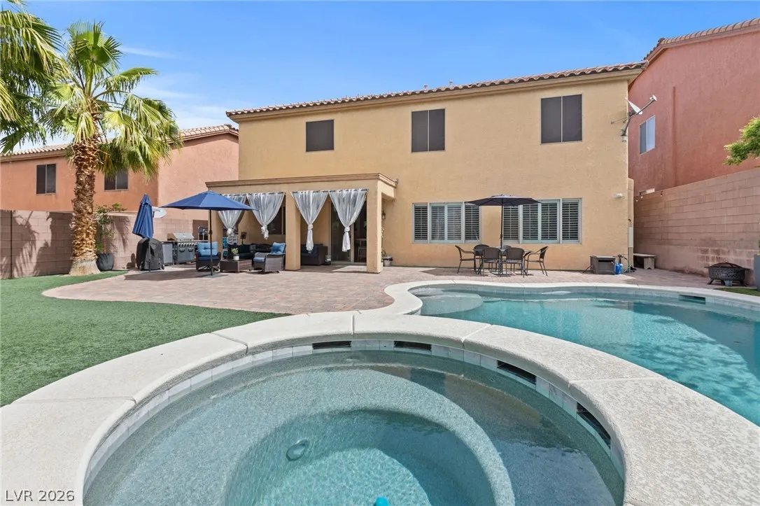 Madeira Canyon beauty!! Pool and spa only 4 years old! Spacious and inviting 5-bed, 3-bath home designed for both comfort and entertaining! This beautifully laid-out residence offers generous living spaces, a versatile floor plan, and plenty of room for everyone. Hardwood floors, soaring ceilings, shutters, a beautifully updated kitchen has granite countertops, stainless built in double ovens, a farm apron sink, and lots of storage! The oversized family room opens to a stunning private backyard oasis featuring a sparkling pool and relaxing spa, covered patio, and tons of space! Perfect for enjoying sunny days and evening gatherings. Whether you’re hosting guests or unwinding after a long day, this home delivers the ideal blend of indoor-outdoor living. 4 huge bedrooms upstairs, all with walk-in closets, plus a huge loft! another bedroom downstairs, great for a home office or guest room. A rare opportunity with space, style, and resort-style amenities all in one! Don’t miss this one!