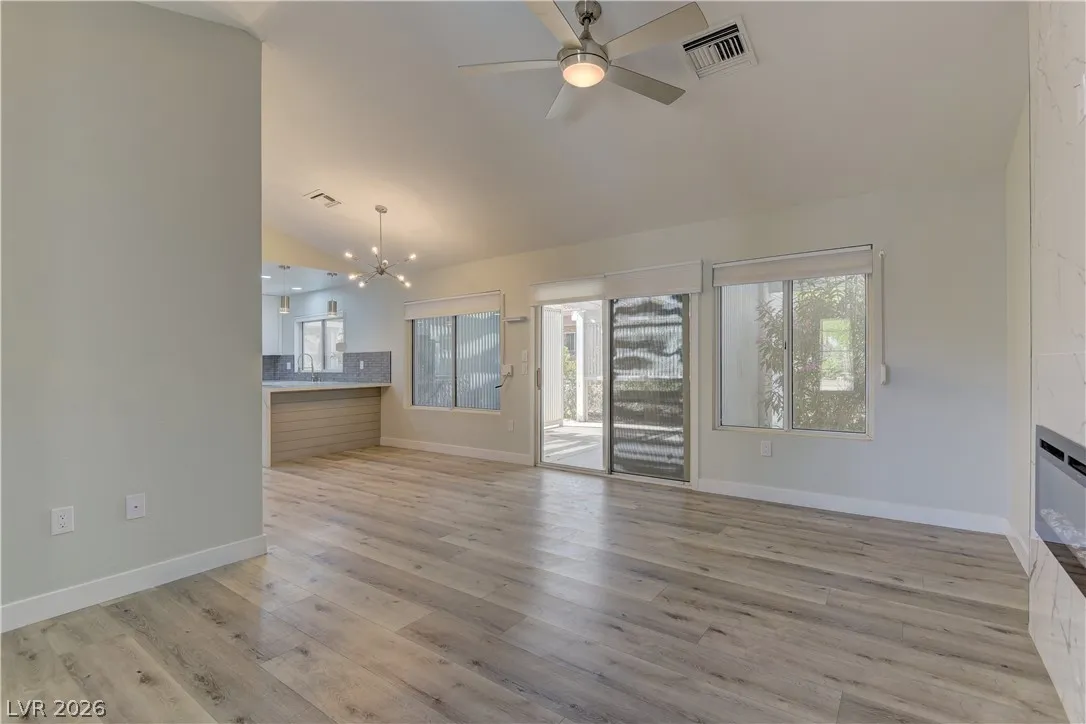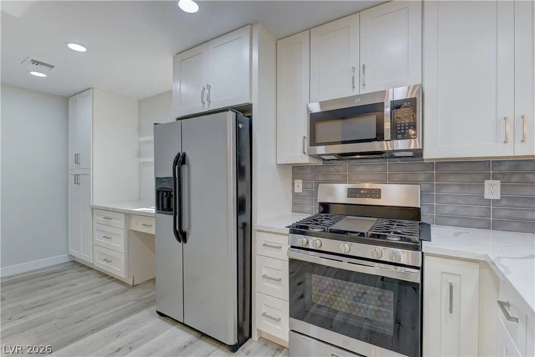 Sanora Model Home in Sun City Summerlin! ** 2 Bedroom, 2 Bath, 2 Car Garage ** Multi-tone interior paint and luxury plank vinyl flooring throughout ** Beautiful kitchen with new stainless steel appliances, full-height cabinetry, and quartz countertops ** Both bathrooms beautifully updated with new cabinetry, plumbing fixtures, tile, countertops and more ** Built-in desk off the kitchen ** Spacious covered patio perfect for relaxing or entertaining ** A must see!