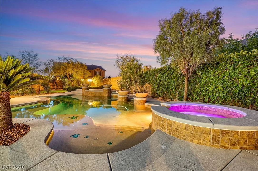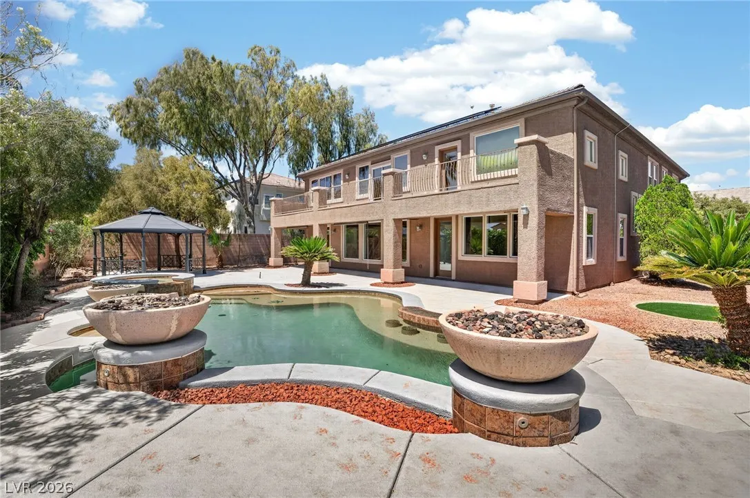 Welcome to 379 Autumn Hue, a stunning two-story home in Las Vegas offering the perfect blend of space, style, and resort-style living. Situated on a large lot, this property features a beautifully designed backyard with a sparkling pool, spa, and gazebo—ideal for entertaining or relaxing under the Vegas skyline. Inside, you’ll find soaring ceilings, an open-concept layout, and abundant natural light throughout. The fully remodeled interior boasts modern flooring, a grand staircase, and a spacious living area that flows seamlessly into a chef’s kitchen complete with quartz countertops, oversized island, custom cabinetry, and stainless steel appliances. Upstairs, enjoy generously sized bedrooms and a private balcony overlooking the backyard oasis. The home also offers a 3-car garage and ample outdoor space. Located in a Beautiful neighborhood with easy access to shopping, dining, and the Strip, this home truly checks every box.