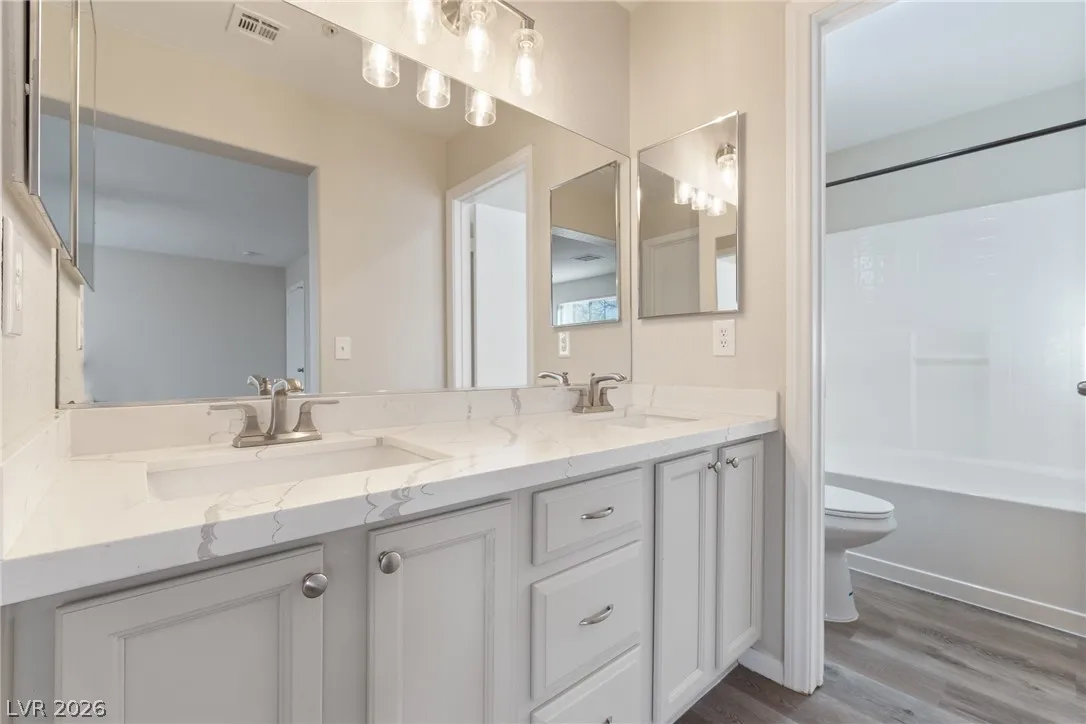 Welcome to the Modern 3 Bedroom, 2.5 Bathroom Home in North Las Vegas! This home boasts a sleek design with marble countertops, stainless steel appliances, and raised kitchen cabinets. Enjoy the convenience of a kitchen island for meal prep and entertaining. The large 2 car garage provides ample storage space. Residents can take advantage of the community amenities including a pool, clubhouse, parks, and walking trails. The gated community offers added security and privacy. With solar panels installed, residents can enjoy reduced power bills. Pet owners will appreciate the designated dog potty areas. Don’t miss out on this stylish and energy-efficient home in a desirable North Las Vegas location. Tenant portal fee and solar included in rent!