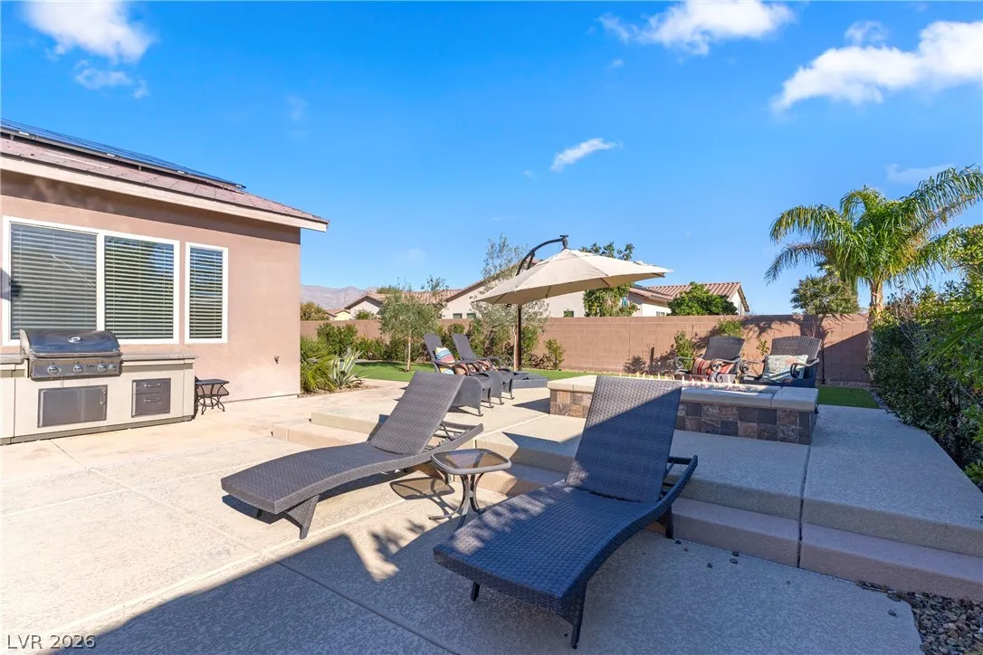 backyard is truly an oasis featuring a beautiful pool/spa w/fire features, shed, outdoor bbq, raised patio area w/seating,