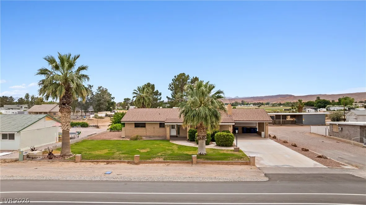 Premier Investment Compound: 2.40-Acre Multi-Home Estate Rarely do you find a property in the heart of Logandale that offers this level of versatility and scale. Situated on a sprawling 2.40-acre parcel, this unique estate features two full-sized residences plus a private apartment, providing endless possibilities for rental income, guest accommodations, or a massive retreat. Main home is a 1982 with 3,081 sq ft, guest home is a 1931 with 2,016 sq ft, with an additional 817 sq ft apartment. Detached 1829 sq ft carport with 782 sq ft workshop and a shed. Main home has 5 bedrooms and 2 3/4 baths and the other home has 3 bedrooms, 2 baths with an attached 1 bedroom apartment with full kitchen. Mainhome has a living room with built-in shelves and a fireplace, and a spacious family room in the basement. Plenty of room for animals, equipment, or future expansion in a prime location.
