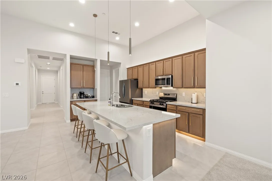 Brand-new, never-lived-in furnished home in the heart of Henderson! This stunning residence showcases soaring 10’ and 12’ ceilings, creating an open, airy ambiance filled with natural light. 2 Jr. Suites with private full bathrooms. An extra-large sliding glass door enhances seamless indoor-outdoor living, perfect for entertaining or relaxing in style. Thoughtfully designed with modern finishes, clean lines, and a fresh, pristine feel throughout, this home offers both comfort and sophistication. The fully furnished interior is move-in ready with tasteful pieces that complement the home’s elegant design. Enjoy the added luxury of a professional house cleaner included monthly, providing a truly effortless living experience. Ideally located near parks, shopping, dining, golfing, Sunset Station Resort and Casino, Cowabunga Bay Water Park, and freeway access, this is a rare opportunity to lease a turnkey, luxury-style home that feels brand new in every way!