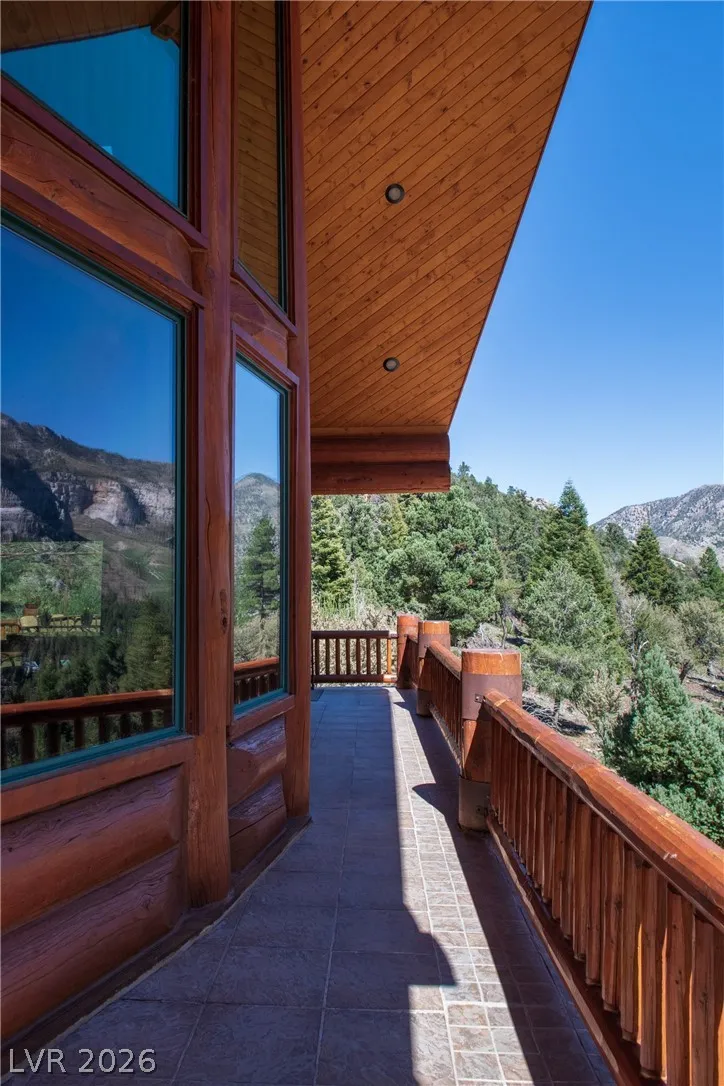 A private mountain estate set at approximately 7,500 feet in Mount Charleston, where craftsmanship and setting converge. Spanning approximately 7,000 sq ft, this 5-bedroom, 5.5-bath residence is constructed of hand-hewn logs, natural stone, and custom ironwork, creating a home of quiet scale and permanence. Expansive windows frame unobstructed Spring Mountain views, while over 1,500 sq ft of wrap-around decks extend the living experience outdoors. Thoughtfully designed with a chef’s kitchen, private theatre, gym, office, wine cellar, and three fireplaces. Radiant heat throughout, including floors, decks, and driveway. Oversized 4-car garage. Backing to U.S. Forest Service land for enduring privacy. Offered furnished. Approximately 45 minutes to the Las Vegas Strip.