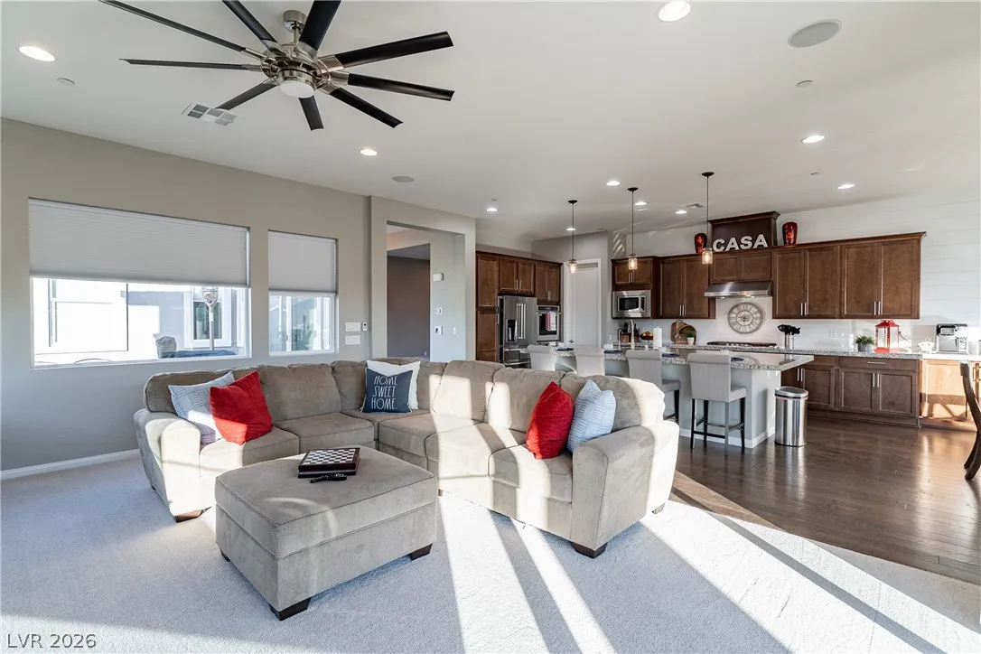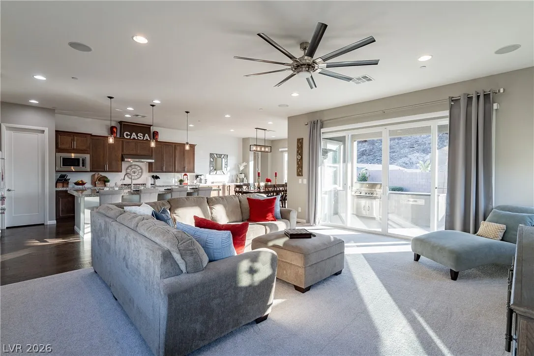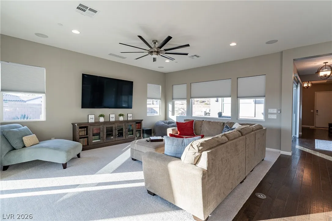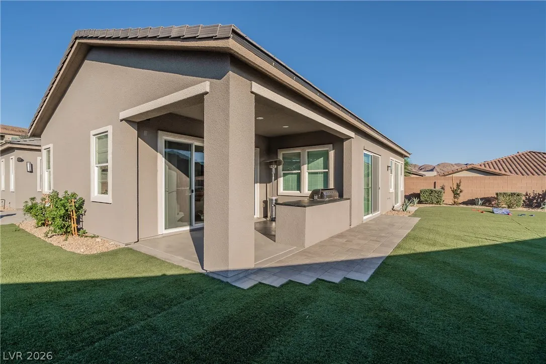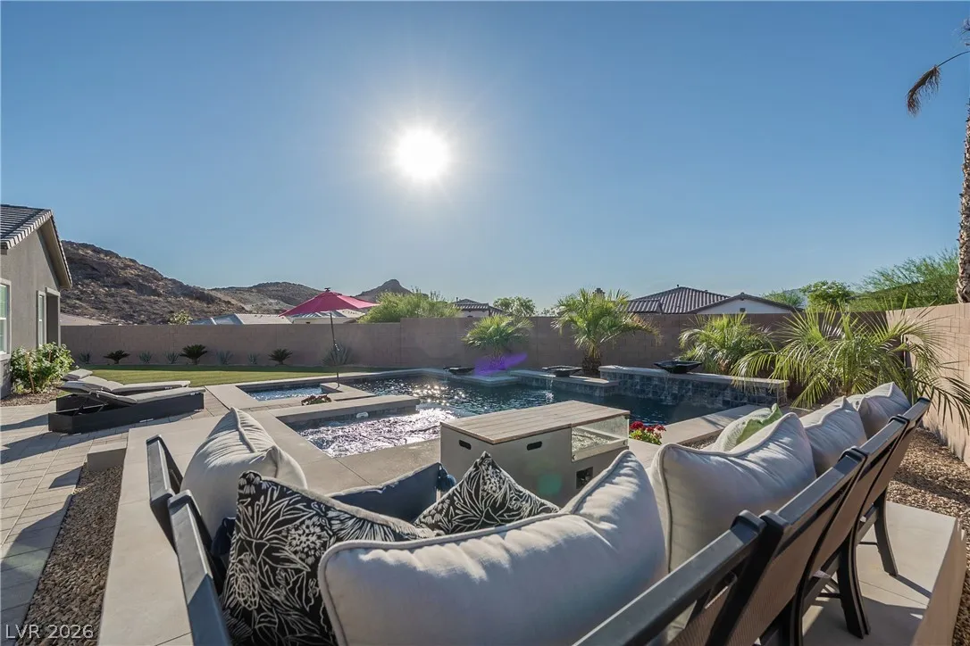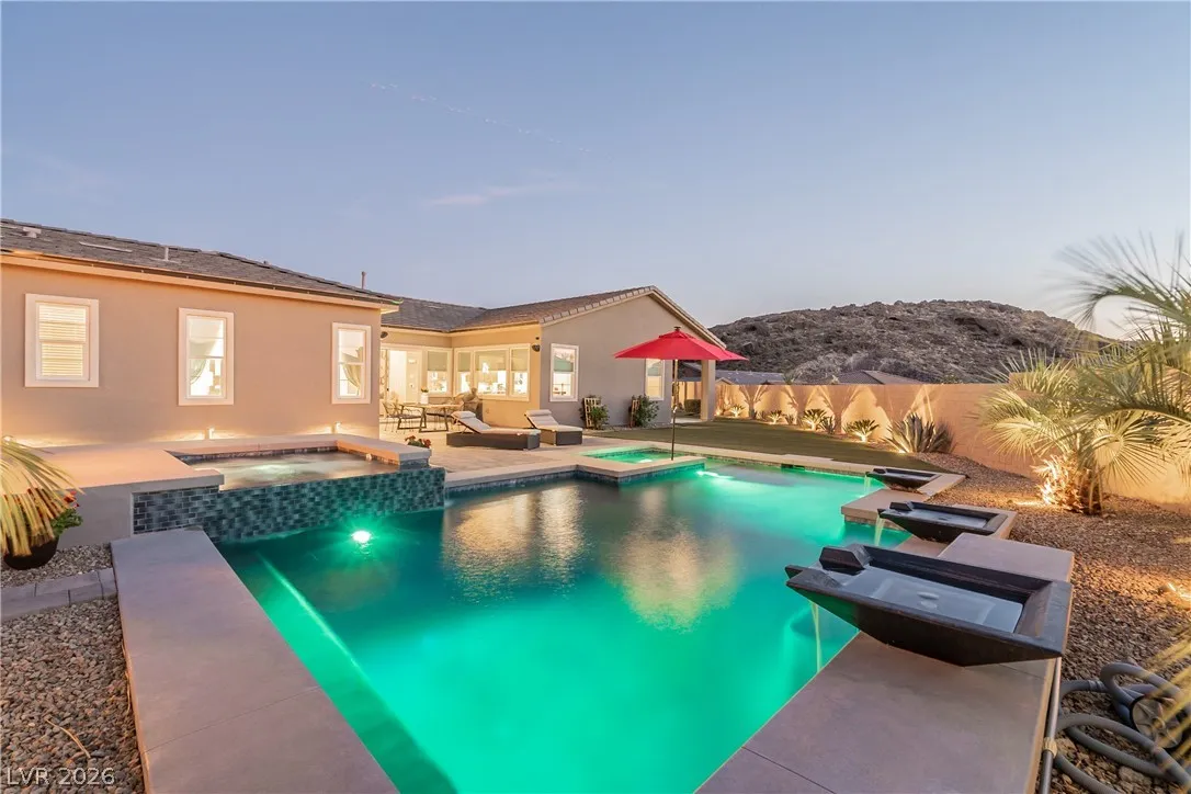 Luxury Lake Las Vegas Home! Stunning 4-bedroom, 3.5-bath property on a rare 1/3-acre cul-de-sac lot with an oversized driveway that fits up to 6 large trucks—truly uncommon for the area. Enjoy a resort-style backyard with a sparkling pool, raised spa, two spacious yards, and dual patios with a built-in BBQ island—perfect for entertaining. The 3-car garage features epoxy floors, a workbench, overhead storage, and space for a stand-up freezer. Inside offers a spacious kitchen with upgraded stainless-steel appliances, hardwood floors, a den with custom built-ins, and a beautiful primary suite. Includes a tankless water heater and whole-home softener. Enjoy Lake Las Vegas living with The Village lakeside dining, shopping, entertainment, two private golf clubs, the Sports Club, plus recreation and scenic outdoor activities.