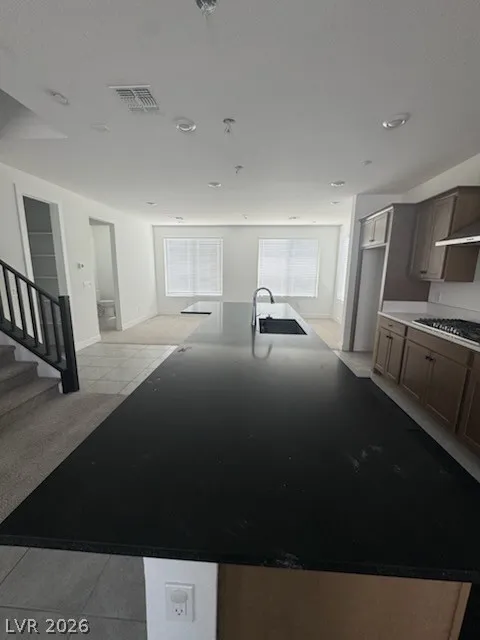 Step inside to discover a bright, open-concept layout anchored by a chef-inspired kitchen featuring a large center island, sleek countertops, rich cabinetry, stainless steel appliances, and elegant pendant lighting. The kitchen flows seamlessly into the main living area, creating an inviting space ideal for hosting or relaxing.