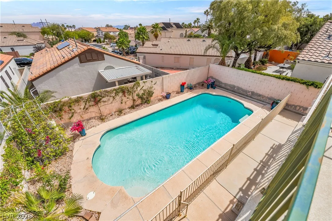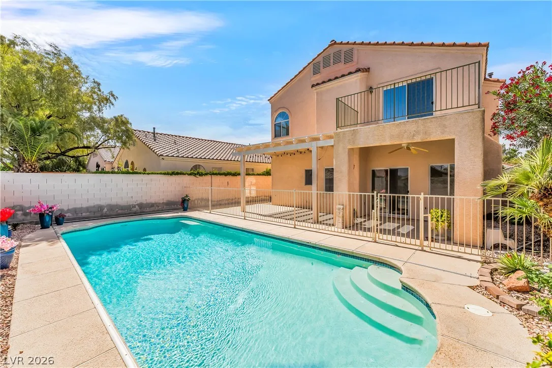 Super rare opportunity in highly sought-after Green Valley Ranch priced under $700K! “Ask about beat the builder financing” This stunning 2-story home offers breathtaking, unobstructed city and Las Vegas Strip views . Thoughtfully upgraded with thousands in enhancements, this home features an open-concept floor plan filled with natural light and soaring ceilings at the entry and living room. The spacious layout includes a separate formal living and dining area, plus a generous family room that flows seamlessly into the kitchen. The kitchen is beautifully designed with sparkling granite countertops, stainless steel appliances, a center island, and a walk-in pantry for ample storage. The Master suite feels like a penthouse retreat, complete with a private balcony Step outside to a covered patio and sparkling pool. (cant build this big daddy pool today water regs!) Ideally located near parks, shopping, dining. A CALIFORNIA EXODUS FAVORITE DONT DELAY CLICK TODAY!