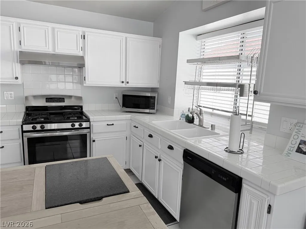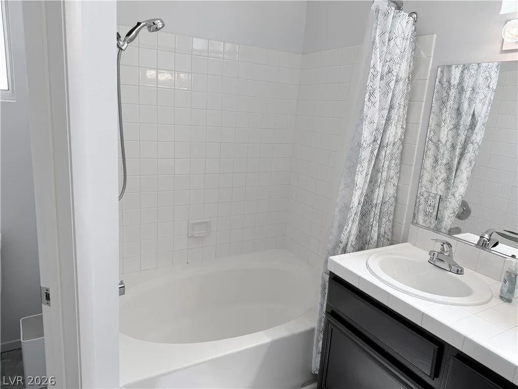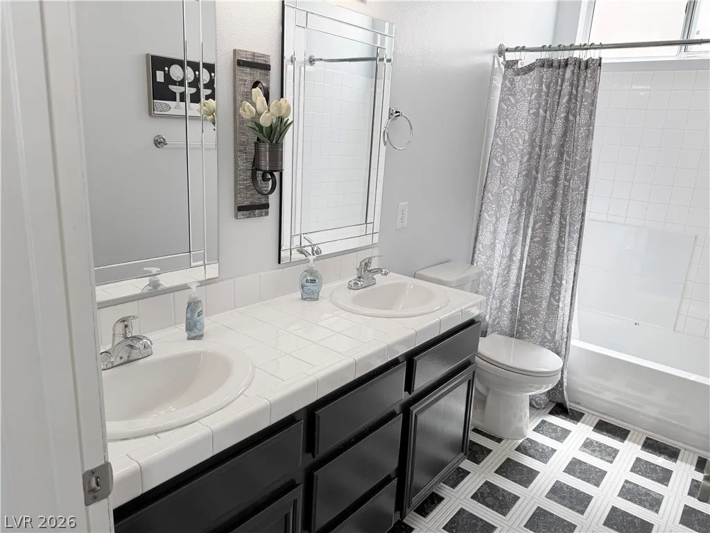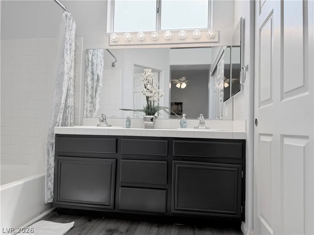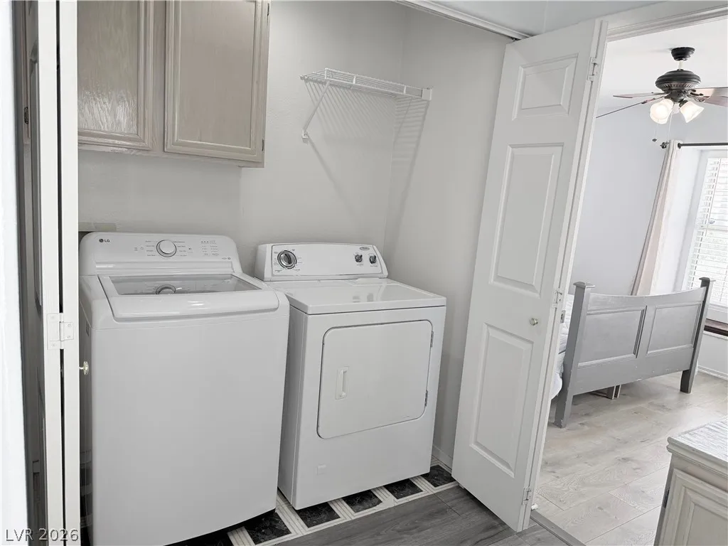 The home offers generously sized bedrooms, with the primary suite featuring direct access to the backyard oasis complete with a pool and spa. Both bathrooms include double sinks and tub/shower combinations. Solid surface flooring runs throughout the home for a clean, modern look.