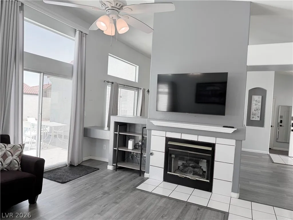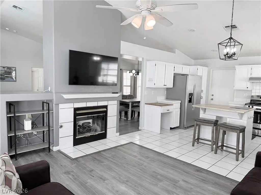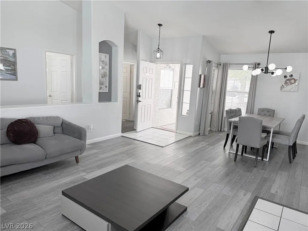 Fantastic single-story pool home located on a cul-de-sac with no HOA. This tastefully furnished property features soaring vaulted ceilings and an open floor plan, creating a bright and inviting atmosphere. Enjoy a two-sided gas fireplace, two spacious living areas, and a separate dining space—perfect for relaxing or entertaining.