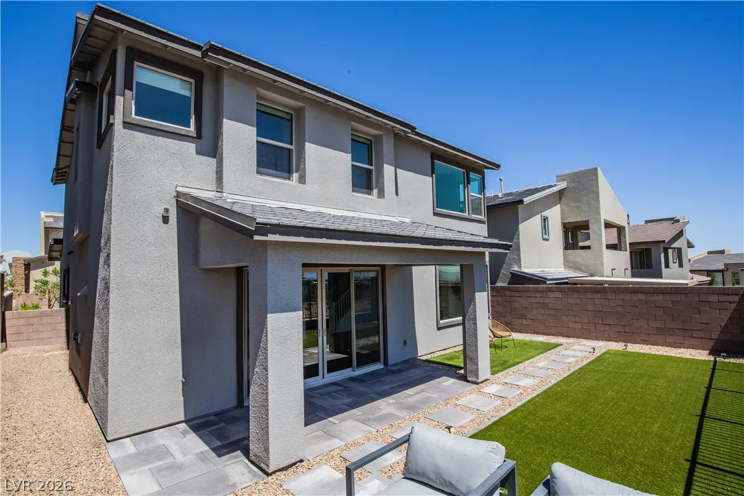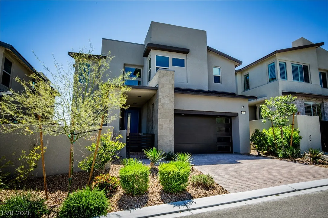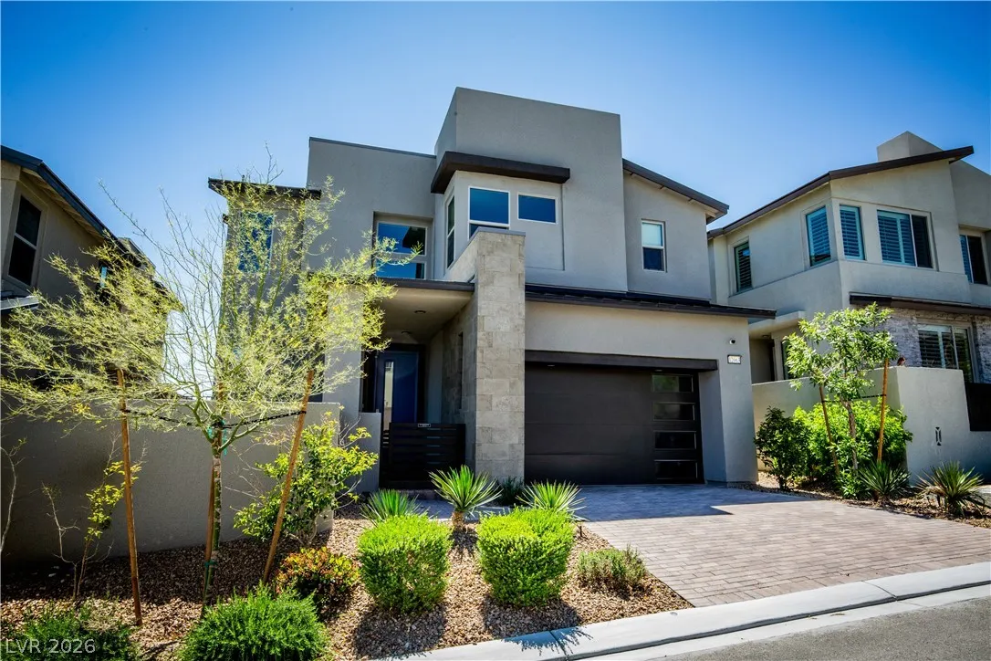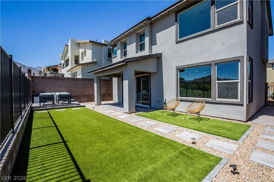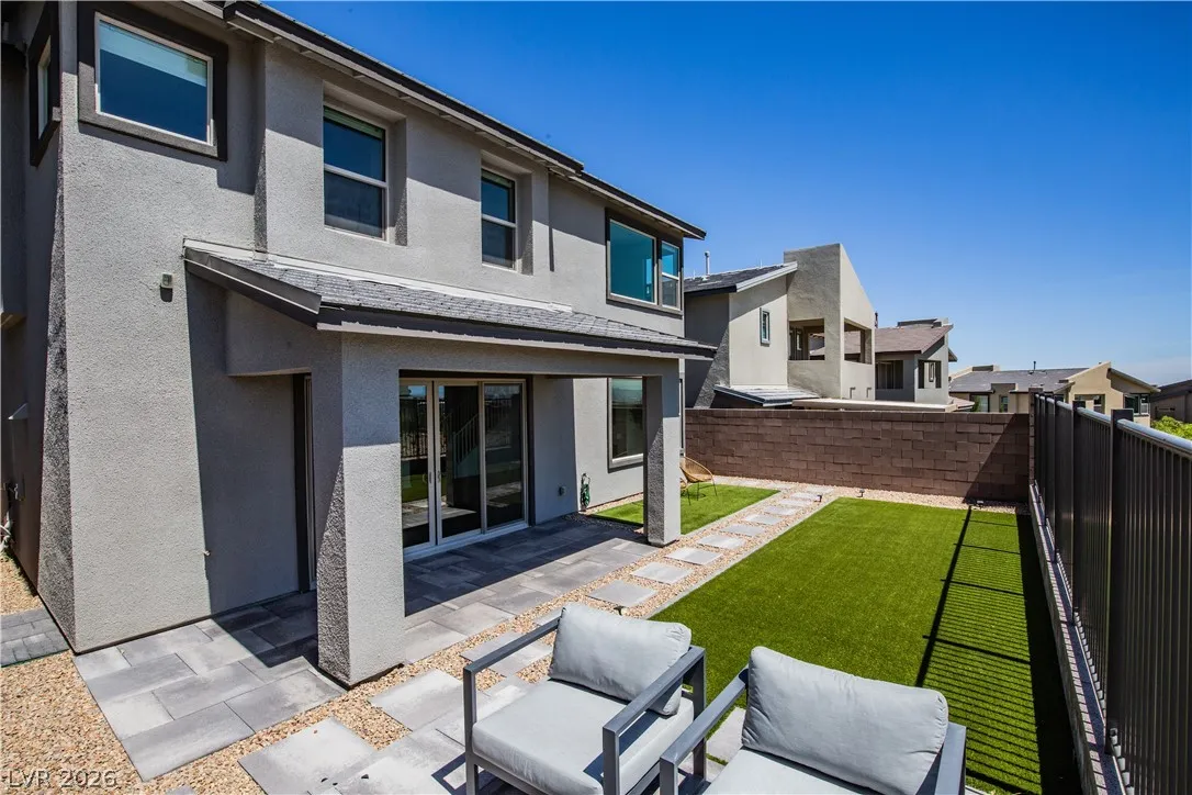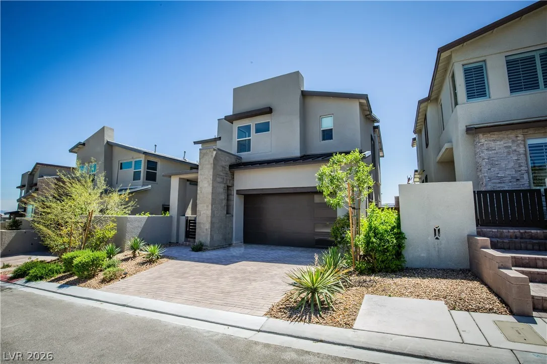 Perched on a desirable view lot, this home offers elevated living in the Arroyo’s Edge community in the sought-after Redpoint at Summerlin. The open-concept floor plan is filled with natural light and showcases sophisticated luxury with elevated finishes, including a sleek fireplace and picturesque windows. The kitchen is a culinary delight, featuring premium stainless-steel appliances, quartz countertops, and a stunning waterfall island, perfect for entertaining. Step outside through the extended glass sliding door to the backyard with a covered patio and elevated views capturing sweeping mountain and city vistas. The luxurious primary suite offers a serene retreat with breathtaking, glittering views above the city. Amenities include Arroyo Park, hiking and biking trails, picnic areas, and shaded seating. Park adds sports fields, pickleball courts, a playground, a splash pad, and fitness stations. Upcoming Urban Core, retail, dining, and more nearby, this home blends style, comfort.