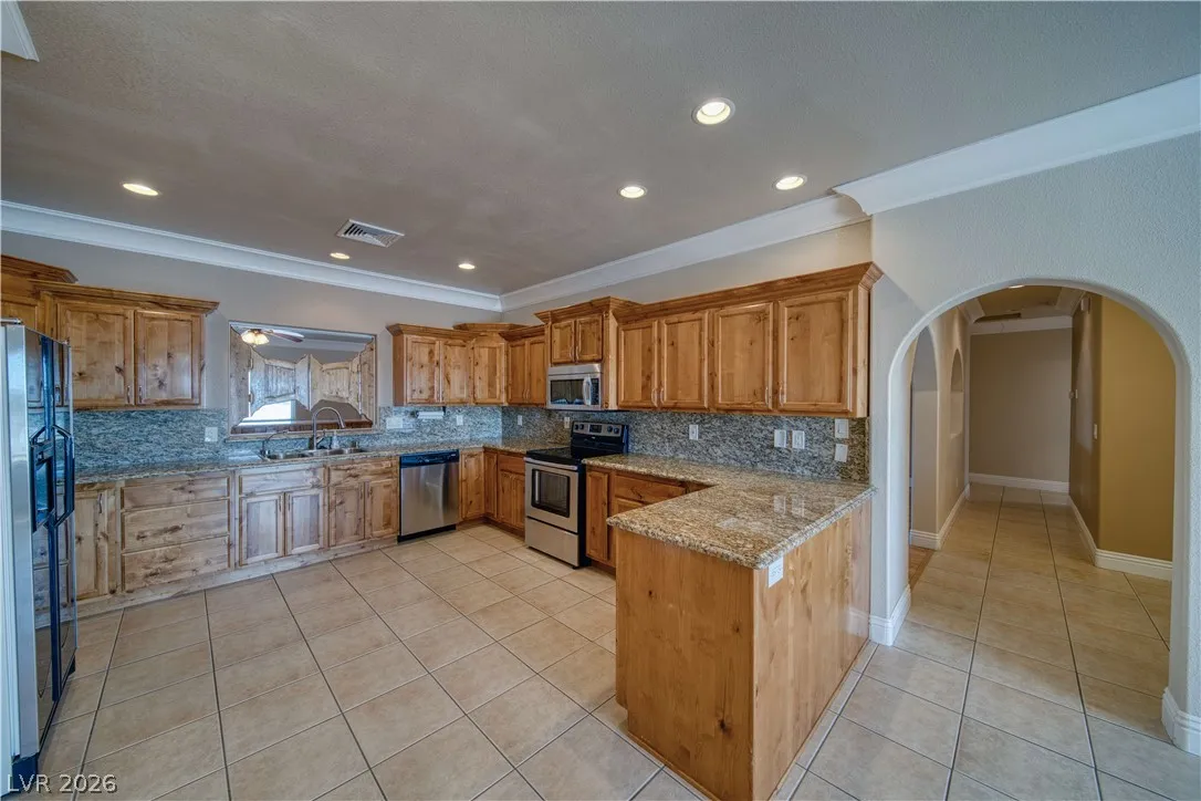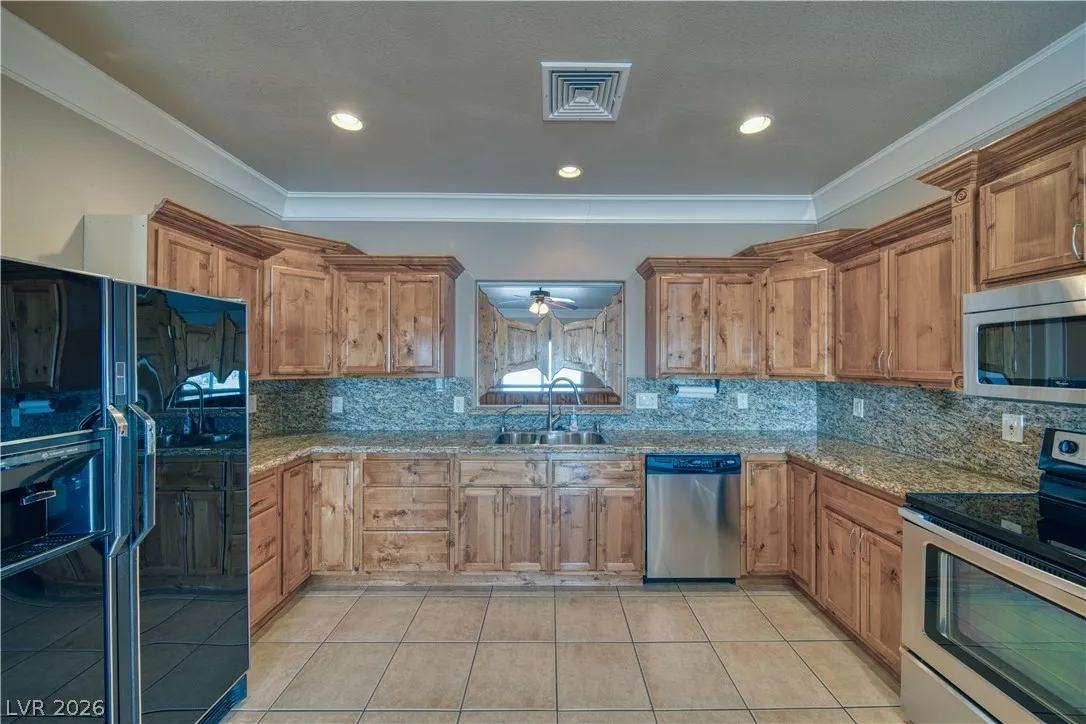 Beautiful Custom 3-Bedroom, 3-Bath 2624sqft home with oversized 3-car garage and fully fenced backyard. Enjoy the chef’s dream custom kitchen with high-end finishes and a large walk-in pantry. The extra room with a full wet bar is ideal for entertaining or relaxing. The primary suite is a true retreat with a huge walk-in shower, jetted soaking tub, and a spacious layout. Additional highlights include a large laundry room and a fully fenced backyard with a 6-foot chain-link fence for privacy and pets. This home offers comfort, function, and style throughout a must-see for anyone looking for space and quality craftsmanship. The spacious 3-car garage offers an extra-long bay—perfect for large vehicles, boats, or extra storage. Southside of Pahrump, easy commute to Las Vegas and Seller is willing to contribute to Buyers CC. Beautiful mountain views!