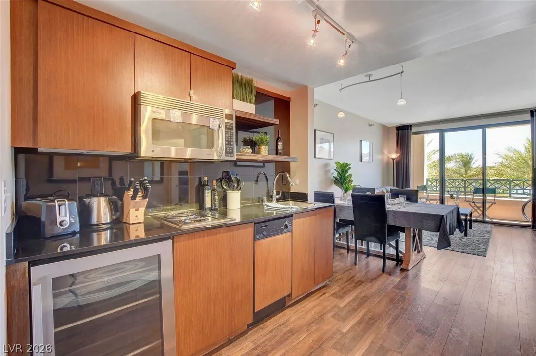 Beautifully maintained 1-bedroom, 1-bath condo located in the heart of Lake Las Vegas’ Montelago Village. This upper-level residence features an open-concept floor plan with a well-appointed kitchen, spacious living area, and private balcony showcasing unobstructed lake and pool views. The generously sized primary suite offers comfort. Residents enjoy resort-style amenities including a pool and spa, fitness center, concierge services, secure entry, and covered parking. Just steps from lakeside dining, boutique shopping, and live entertainment, this property offers a true walkable lifestyle. Ideal for full-time living, a lock-and-leave second home, or investment opportunity. Experience low-maintenance, resort-style living in one of Henderson’s most desirable waterfront communities.