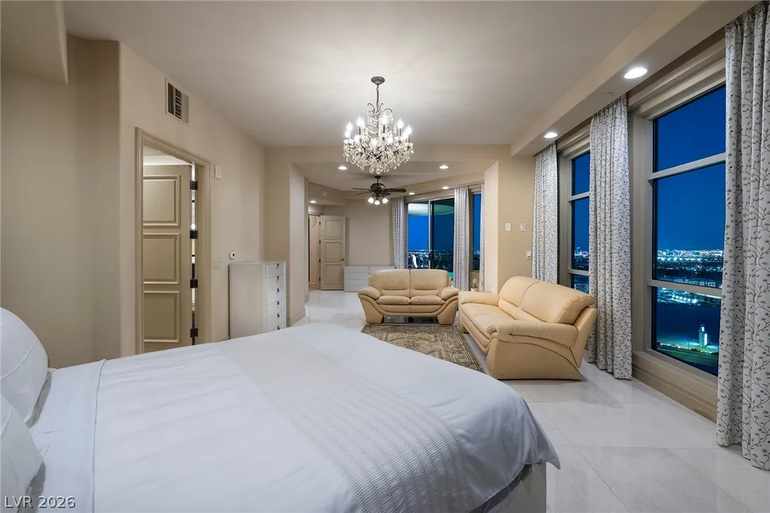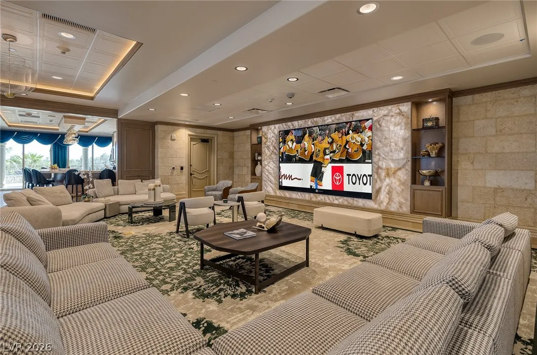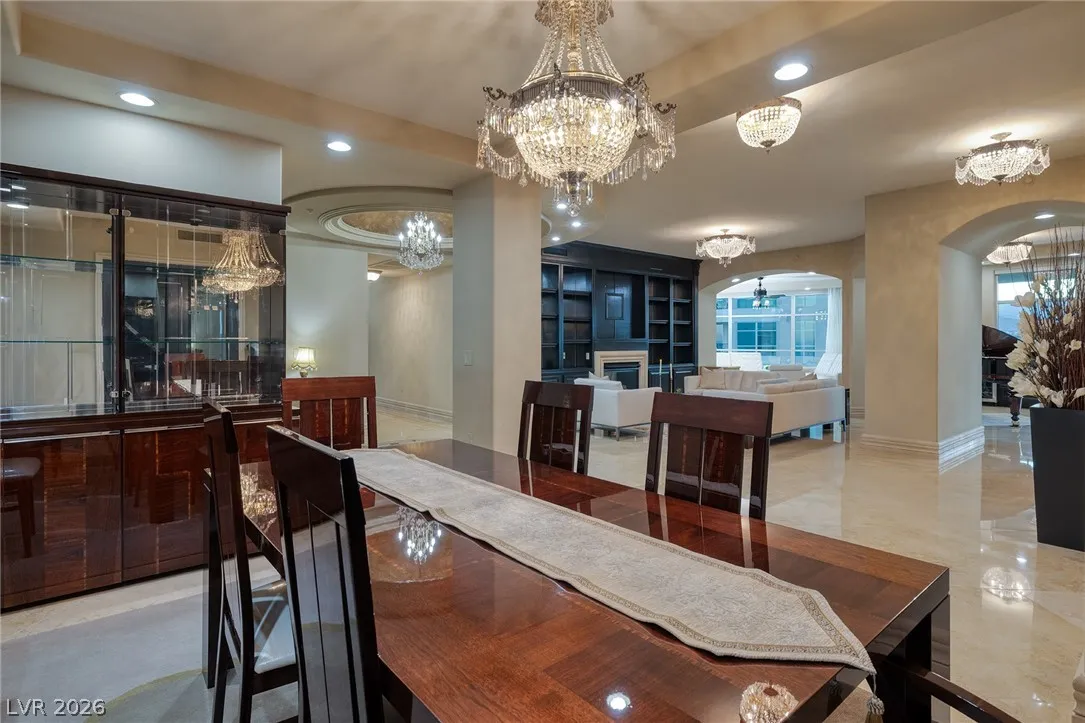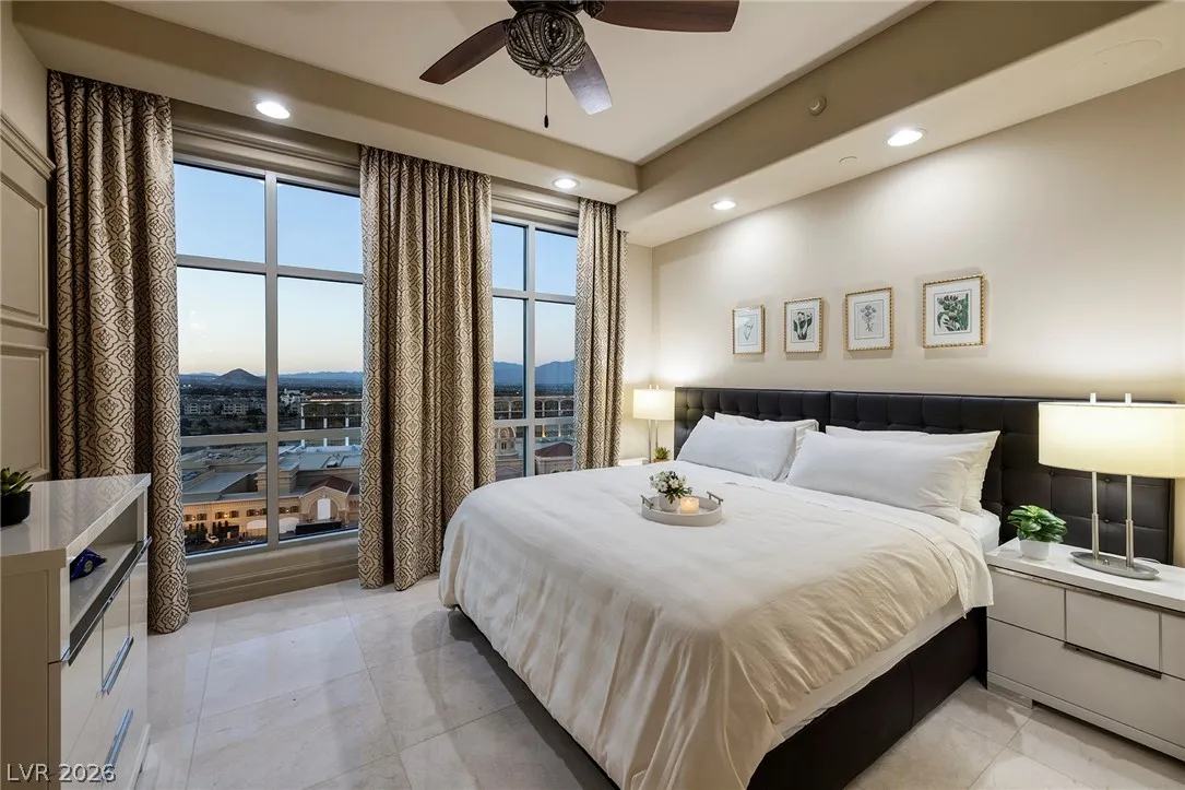 The Summerlin Sky Penthouse @ One Queensridge Place. 4792SF, 4 Bed+Office, 6 Bath,4 Car Garage. Private Elevator Opens to the most Refined & Elevated Corner Condo. Viking Kitchen,Wine Cellar, Bar, Balconies w/Sweeping Strip,City & Mountain Views. Strip View Primary w/ 2 Separate Spa Baths; Living, Family & Dining Rooms. Auto Shades. Custom Built-In Cabinetry TO. Fireplace. Custom Lighting. Amenities:Theater, 2 Pools- 1 In/1 Out, Spas, BBQs, Massage Rooms, Barista, Valet, Security, Gym, Wine Cellar, Private Wine Tasting Rm, Kitchen, Conference Center, Business Center, Detached Casitas, Dog Park. Adjacent to Tivoli Village and Boca Park Providing Immediate Walkability to Dining, Shopping, and Entertainment. Still only a 20-Minute drive to the Las Vegas Strip and Harry Reid International Airport Making Life at One Queensridge Place the Utmost in Ideal Locales, Plus NV is a State WITHOUT Individual, Corporate, Estate & Inheritance Income Taxes offering significant savings for Residents.