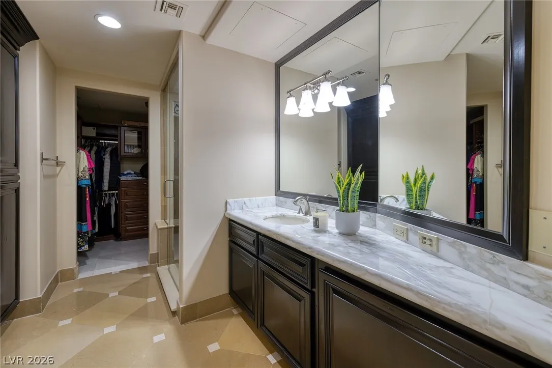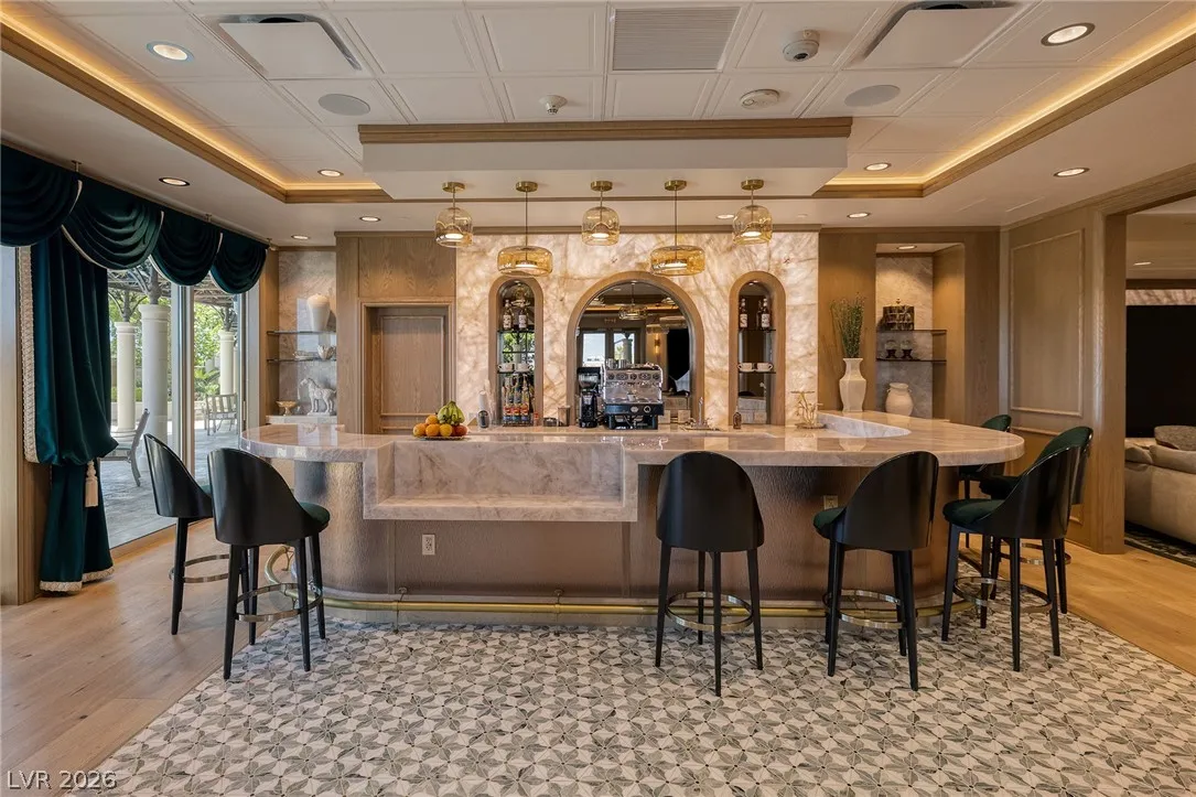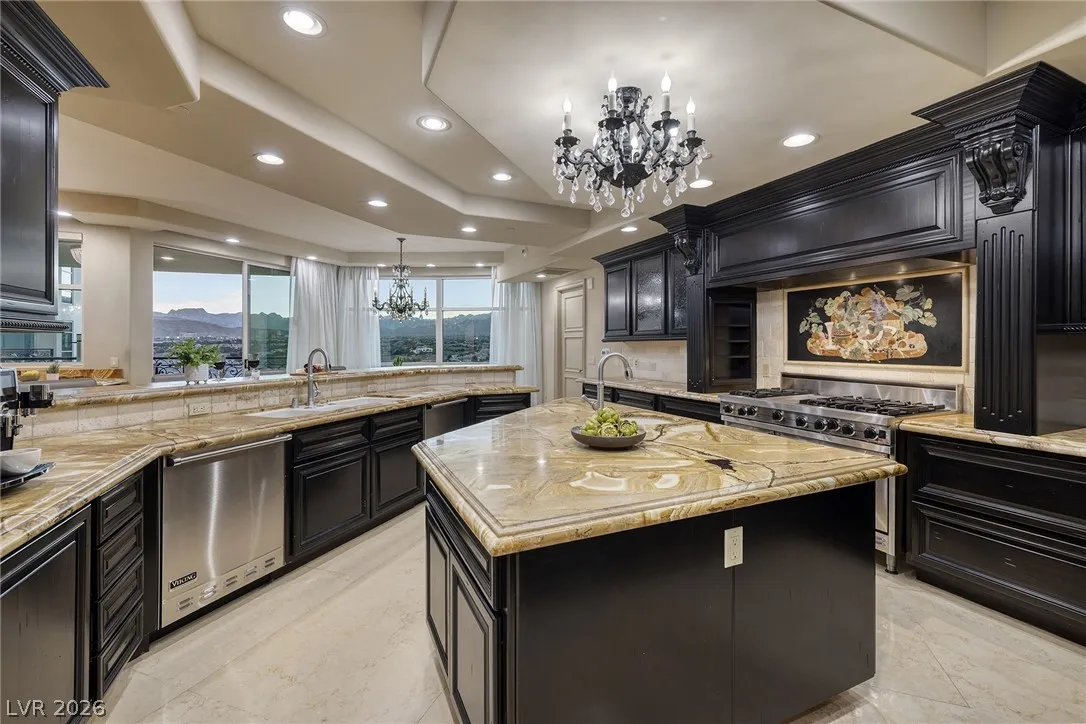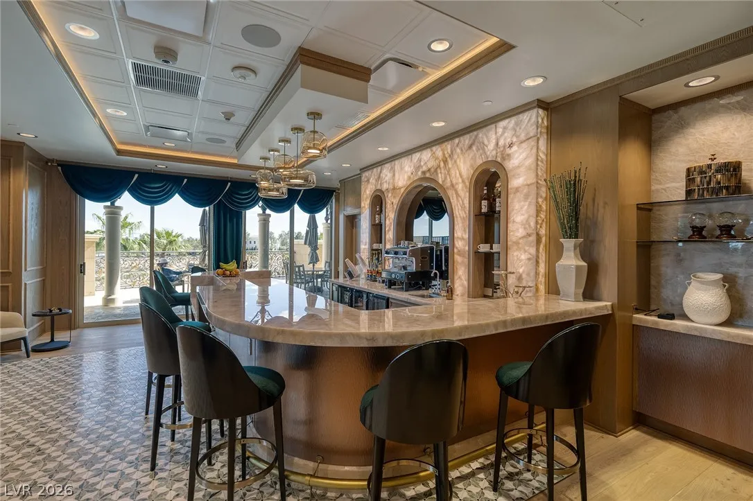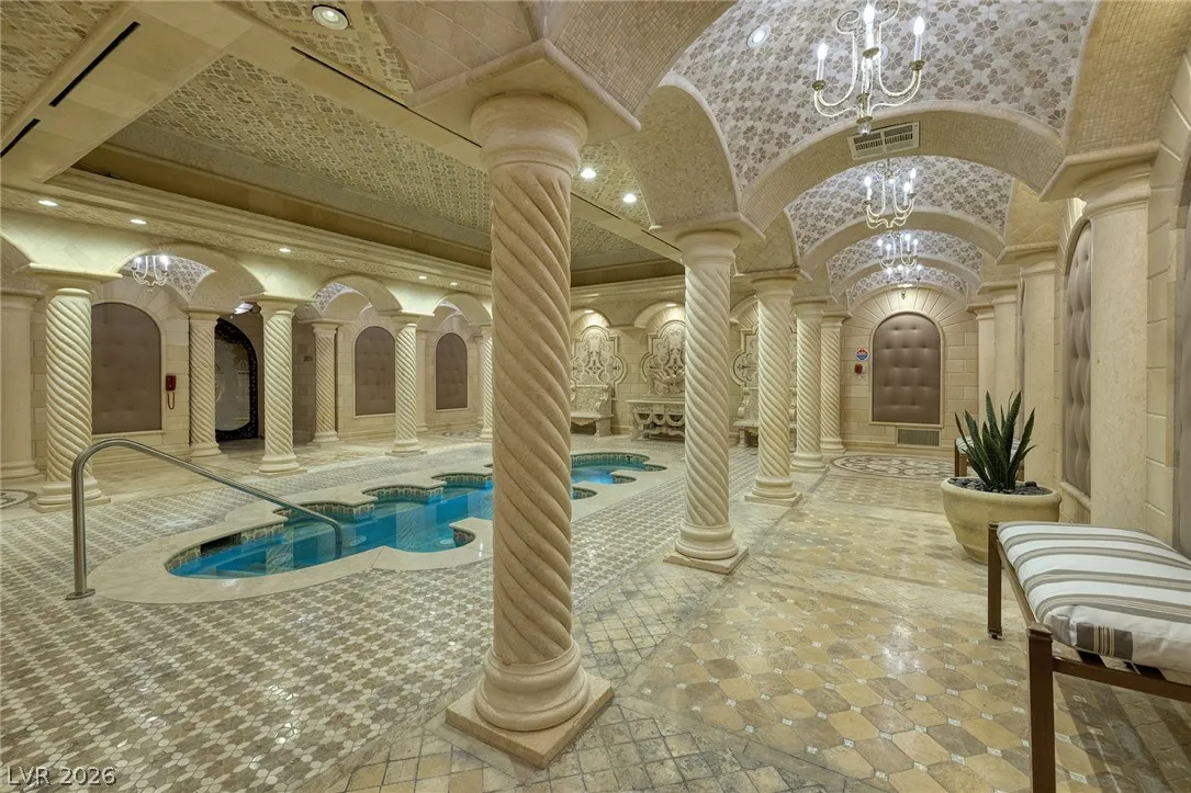 The Summerlin Sky Penthouse @ One Queensridge Place. 4792SF, 4 Bed+Office, 6 Bath,4 Car Garage. Private Elevator Opens to the most Refined & Elevated Corner Condo. Viking Kitchen,Wine Cellar, Bar, Balconies w/Sweeping Strip,City & Mountain Views. Strip View Primary w/ 2 Separate Spa Baths; Living, Family & Dining Rooms. Auto Shades. Custom Built-In Cabinetry TO. Fireplace. Custom Lighting. Amenities:Theater, 2 Pools- 1 In/1 Out, Spas, BBQs, Massage Rooms, Barista, Valet, Security, Gym, Wine Cellar, Private Wine Tasting Rm, Kitchen, Conference Center, Business Center, Detached Casitas, Dog Park. Adjacent to Tivoli Village and Boca Park Providing Immediate Walkability to Dining, Shopping, and Entertainment. Still only a 20-Minute drive to the Las Vegas Strip and Harry Reid International Airport Making Life at One Queensridge Place the Utmost in Ideal Locales, Plus NV is a State WITHOUT Individual, Corporate, Estate & Inheritance Income Taxes offering significant savings for Residents.