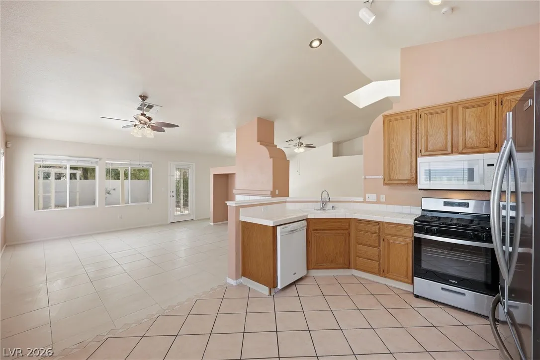 No HOA! Located in the desirable 89123 zip code, this 1,930 sq. ft. single-story home boasts dramatic archways and high ceilings. You’ve got that epoxy-coated two-car garage leading right into the kitchen, where a cozy nook awaits. The entire exterior is freshly painted, including the expansive covered patio out back. Inside, you’ll find all tile flooring—no carpet! The home features a spacious living room, a family room, three bedrooms, and two baths. The oversized primary suite even includes a retreat area, which could have been a fourth bedroom option. A dedicated laundry room completes this inviting home!