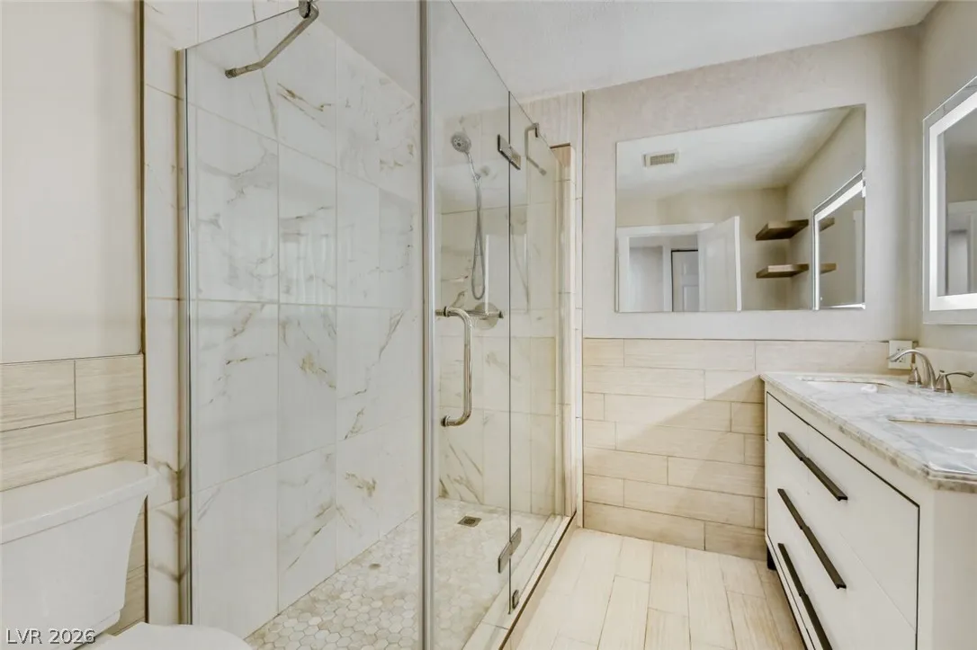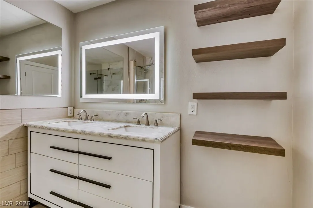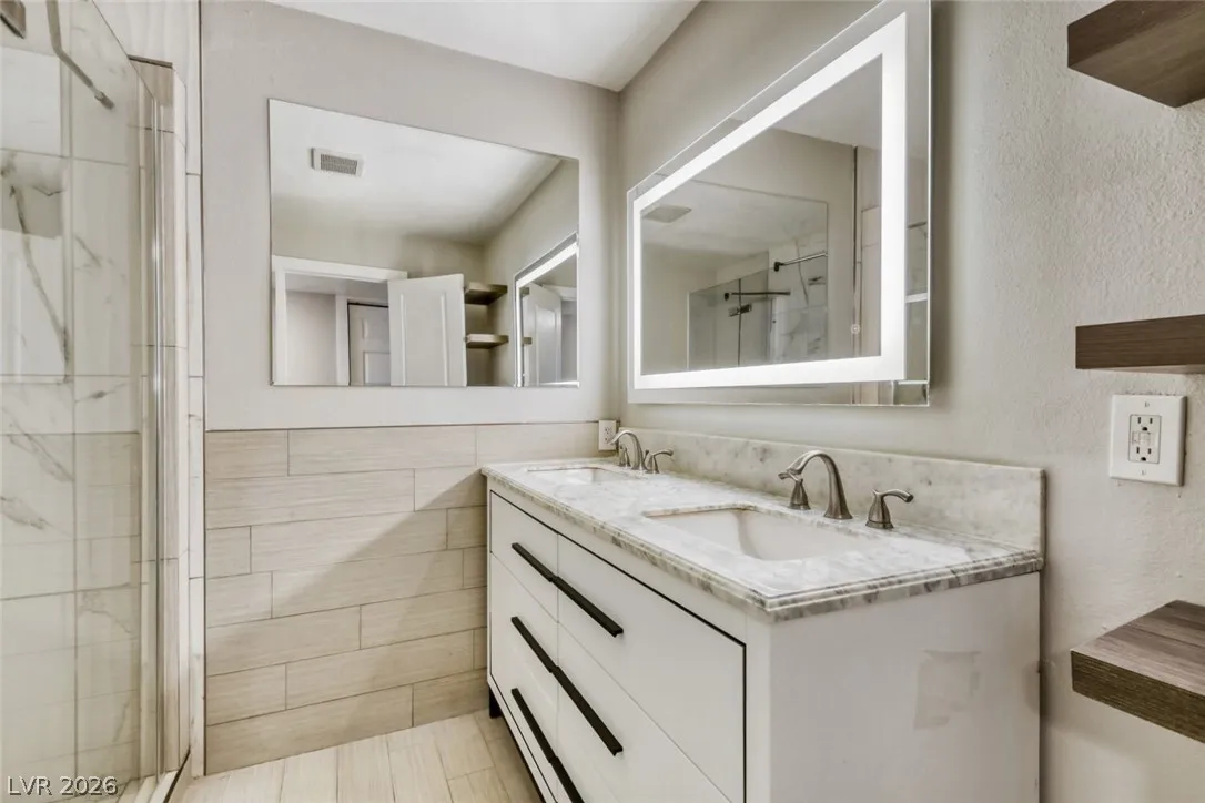 The upgraded bathroom features a frameless glass shower, a modern LED mirror with defrost and dimming, and a double vanity with marble countertops and wood accented cabinetry. A brand new HVAC system installed less than a month ago adds peace of mind. Residents also enjoy access to a community pool, perfect for relaxing and unwinding. The location is unbeatable, with easy freeway access, making commuting a breeze. Experience the perfect blend of comfort and convenience in this Las Vegas gem. Trash, Sewer and Tenant Portal Fee are included in rent!