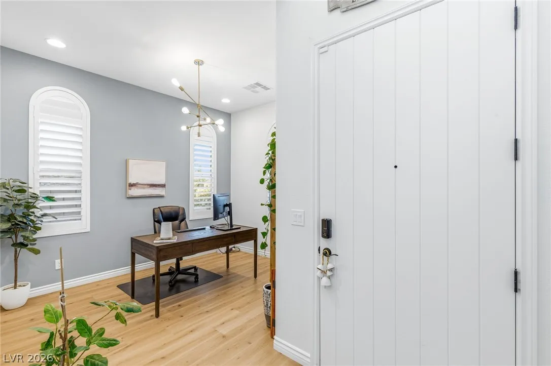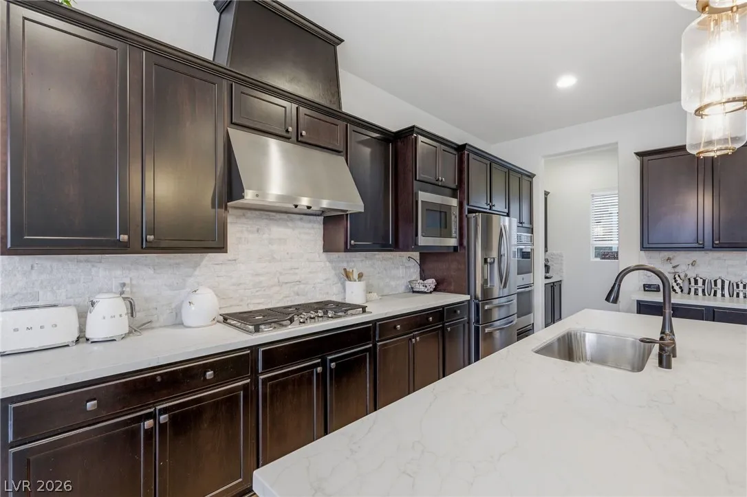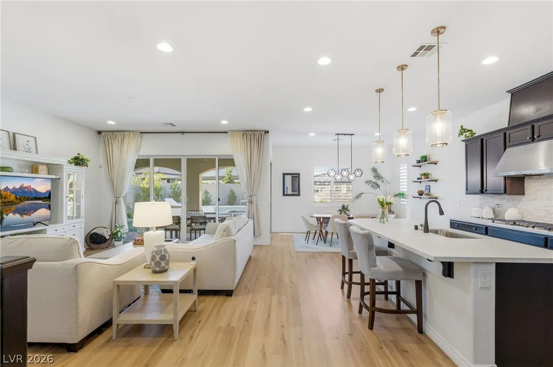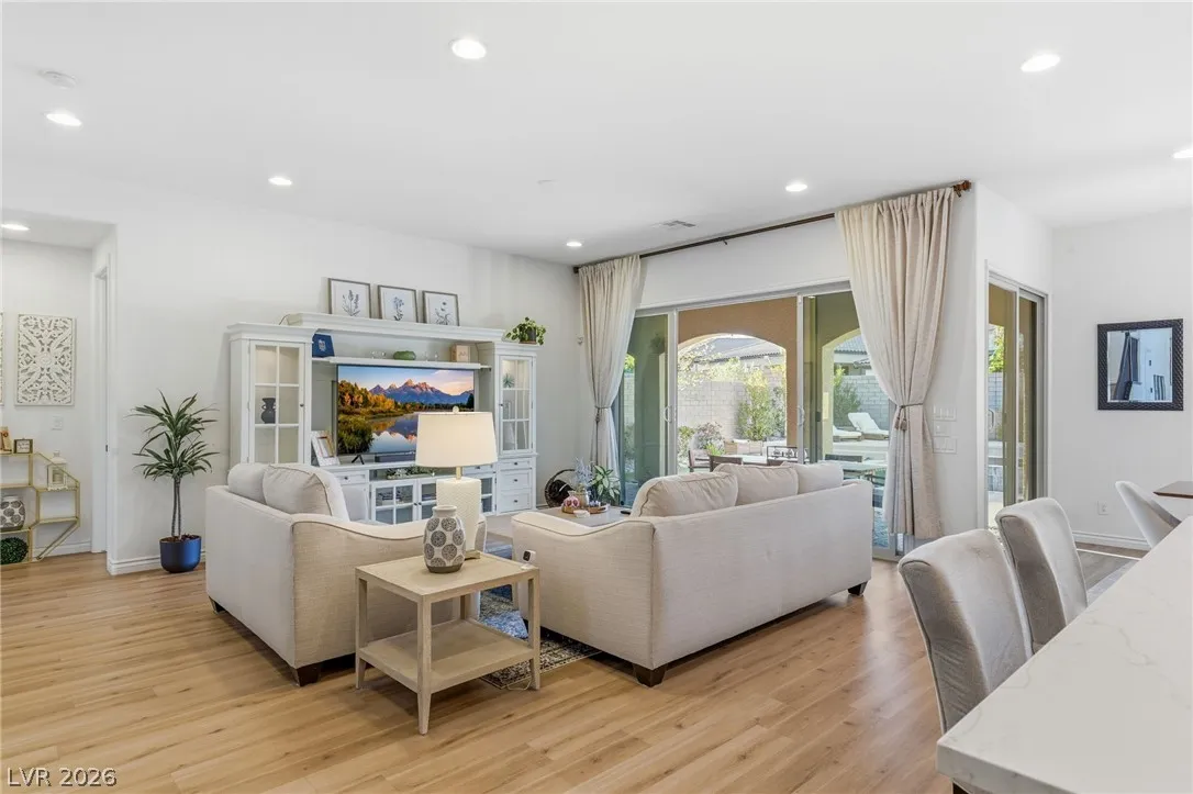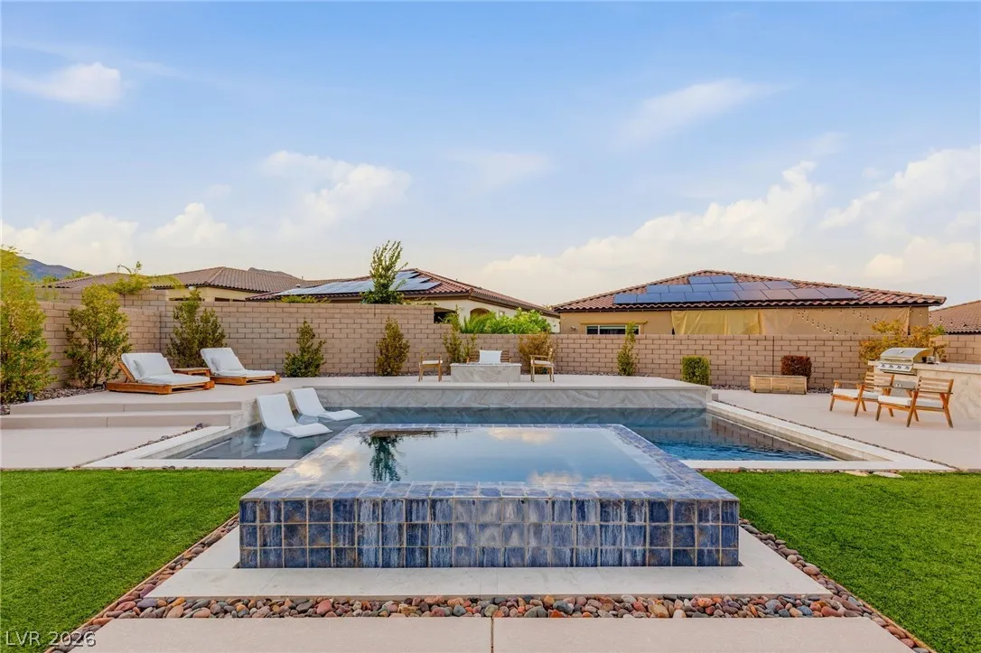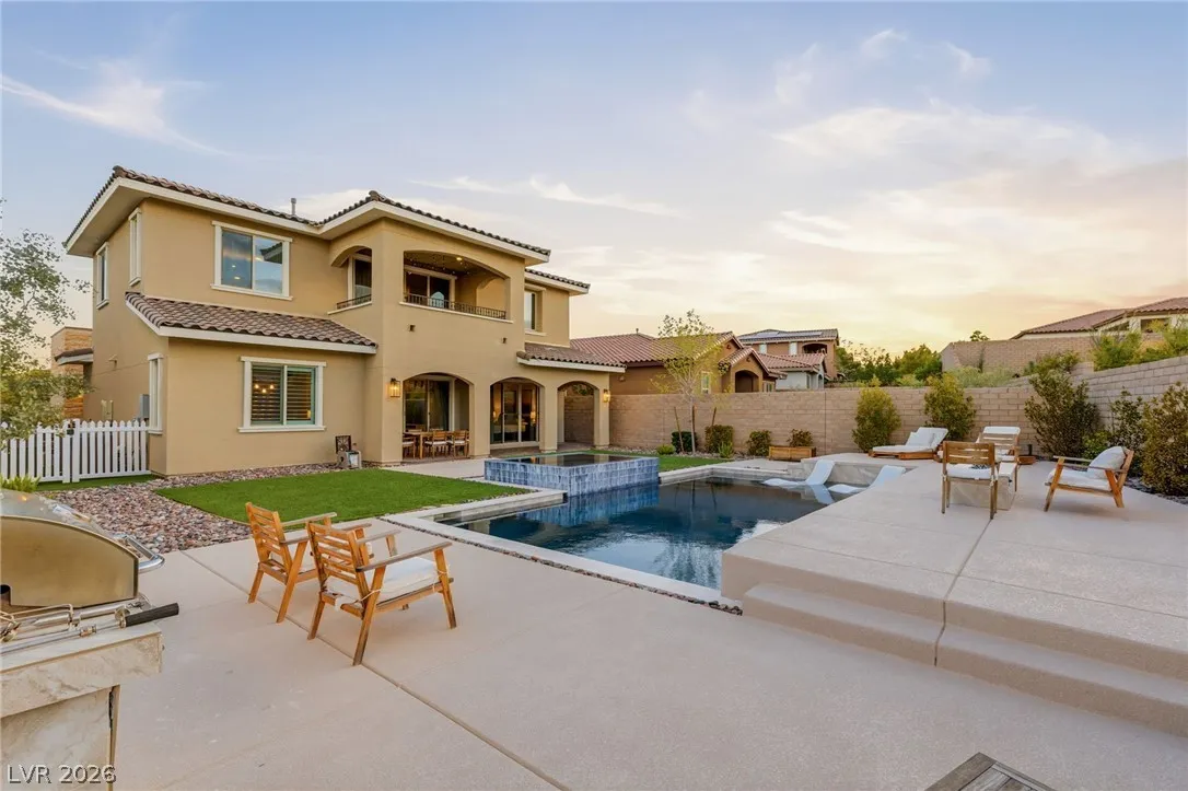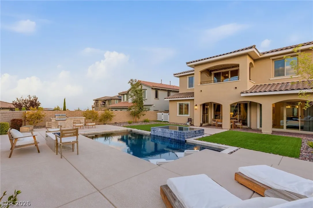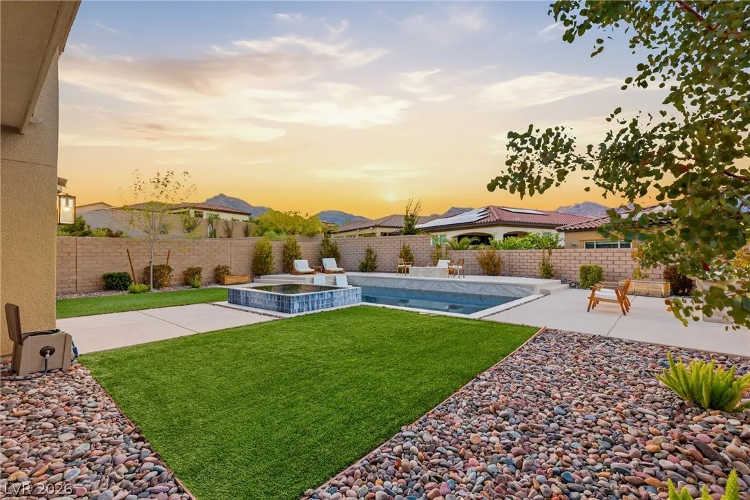 The heart of the home features open, airy living spaces and a well-appointed kitchen ideal for entertaining. Outside, the oversized lot delivers a true retreat with a newly installed sparkling pool and spa, a private courtyard, and a generous covered patio—perfect for relaxing or hosting gatherings. The side yard has been custom built for a proper dog run with drainage. Positioned just moments from Downtown Summerlin, Las Vegas Ballpark, Red Rock Casino Resort & Spa, premier golf courses, and major freeway access, this home combines upscale living with unbeatable convenience.
