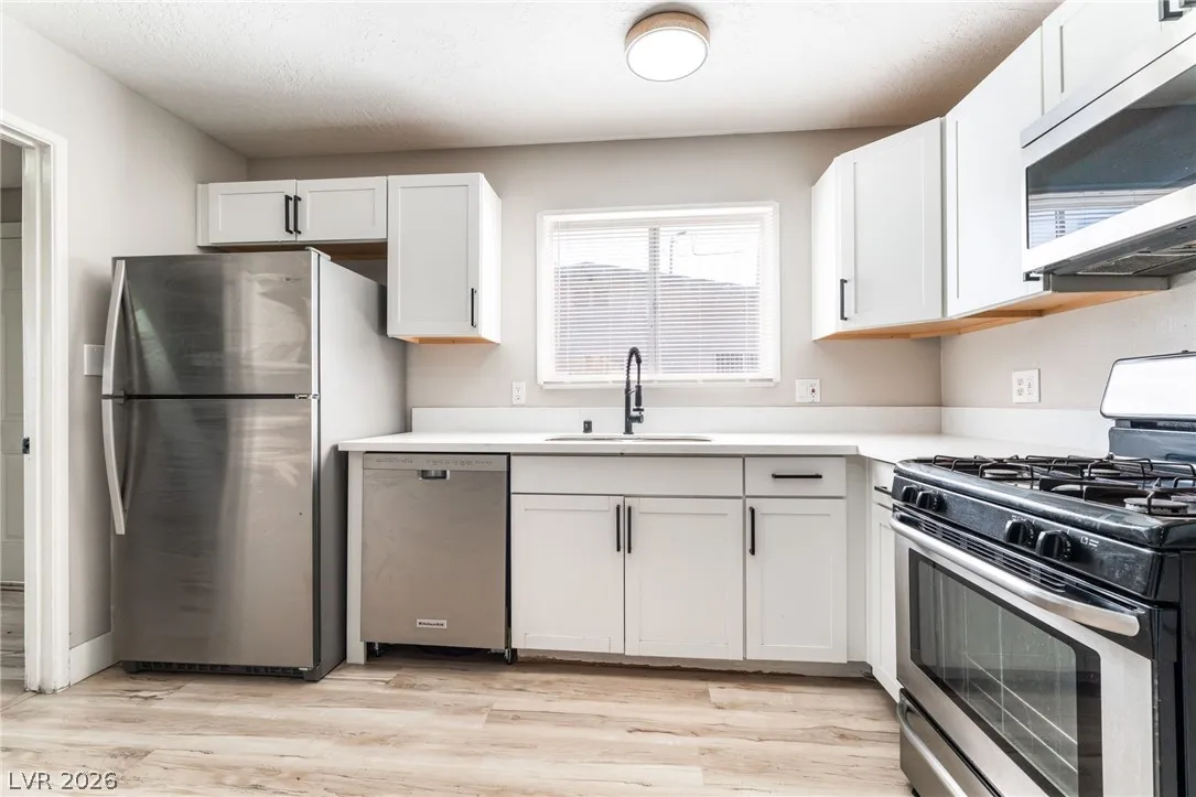 Pool home with RV parking on a large lot, now available for rent. Enjoy your own private backyard oasis with a sparkling pool and plenty of space for outdoor entertaining. The property offers ample parking, including gated RV parking, ideal for extra vehicles or recreational toys. This single-story home welcomes you with vaulted ceilings and a bright foyer enhanced by skylights. Luxury vinyl plank flooring runs through the main living areas, with carpet in the bedrooms for added comfort. The upgraded kitchen features newer cabinets, quartz countertops, and stainless steel appliances. The spacious living room includes a cozy wood-burning fireplace and opens to a large great room with a functional layout. The home offers 4 bedrooms and 2 remodeled bathrooms, plus a laundry room with washer and dryer included. Don’t miss this opportunity, schedule your showing today.