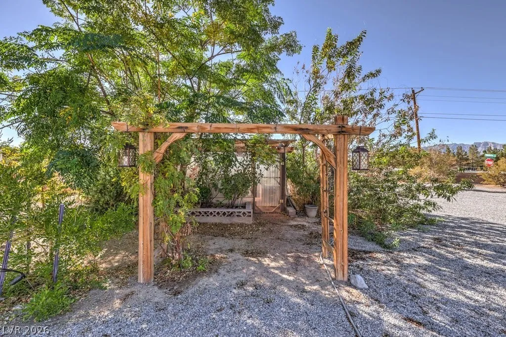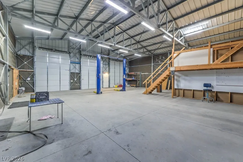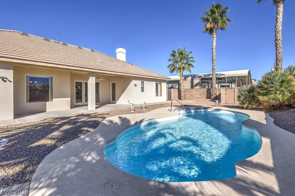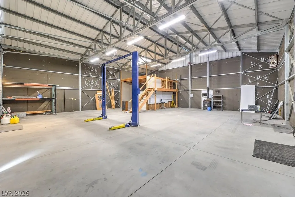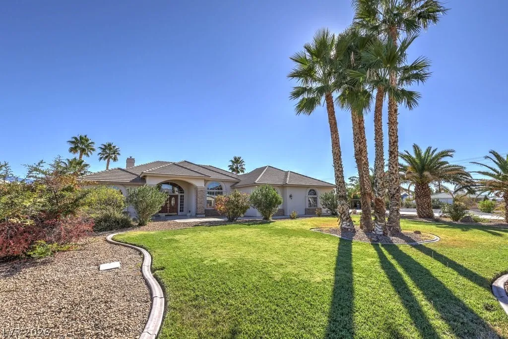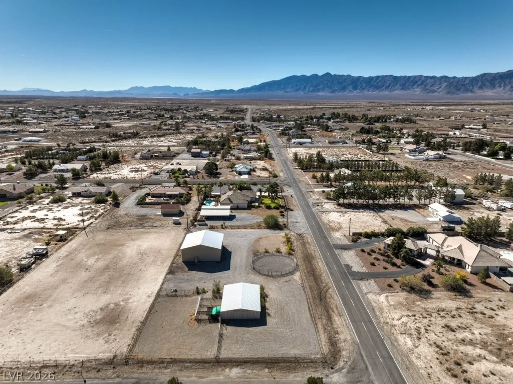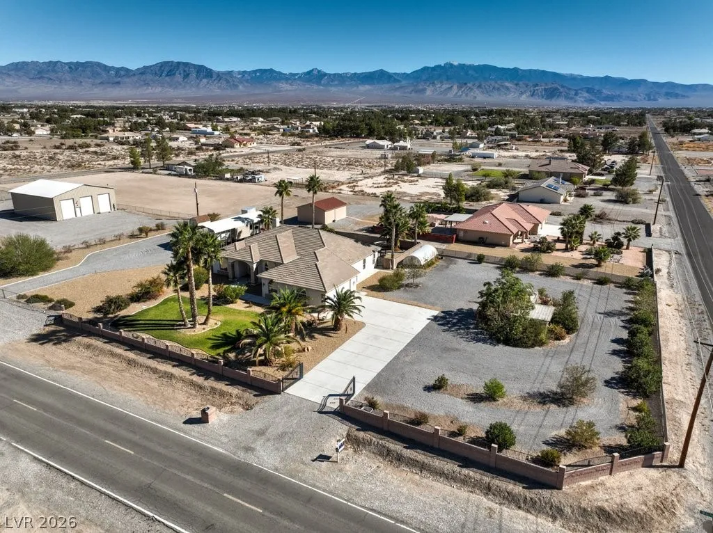 Dream property on 2.2 acres — perfect blend of comfort, functionality, & country luxury! Nearly 3,000 sq ft home features 4 bed + 4 bath. Kitchen is a chef’s dream w/granite countertops, stainless appliances, & ample cabinetry. Great room features vaulted ceilings, cozy fireplace, & wet bar. Formal dining room + chandelier-lit foyer set the tone for refined living. Primary suite offers pool access, walk-in closets, & 5-piece bath. Step outside to enjoy 6’-deep in-ground pool & beautifully landscaped grounds. Car enthusiasts and hobbyists will love the 876sqft attached garage, 1,800sqft detached RV carport + hookups, & massive 2,400sqft 3-bay shop complete w/car lift and 30/30/120 amp power. Horse lovers will appreciate the 1,296sqft barn featuring six 12×12 stalls, pen, arena, & separate gated access for easy trailer entry. With private well, septic system, multiple gated entry points, and garden area, this estate offers it all— one hour from Vegas + Harry Reid International Airport.